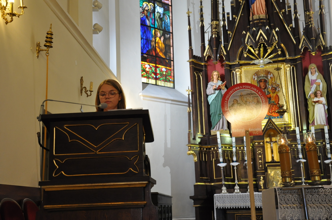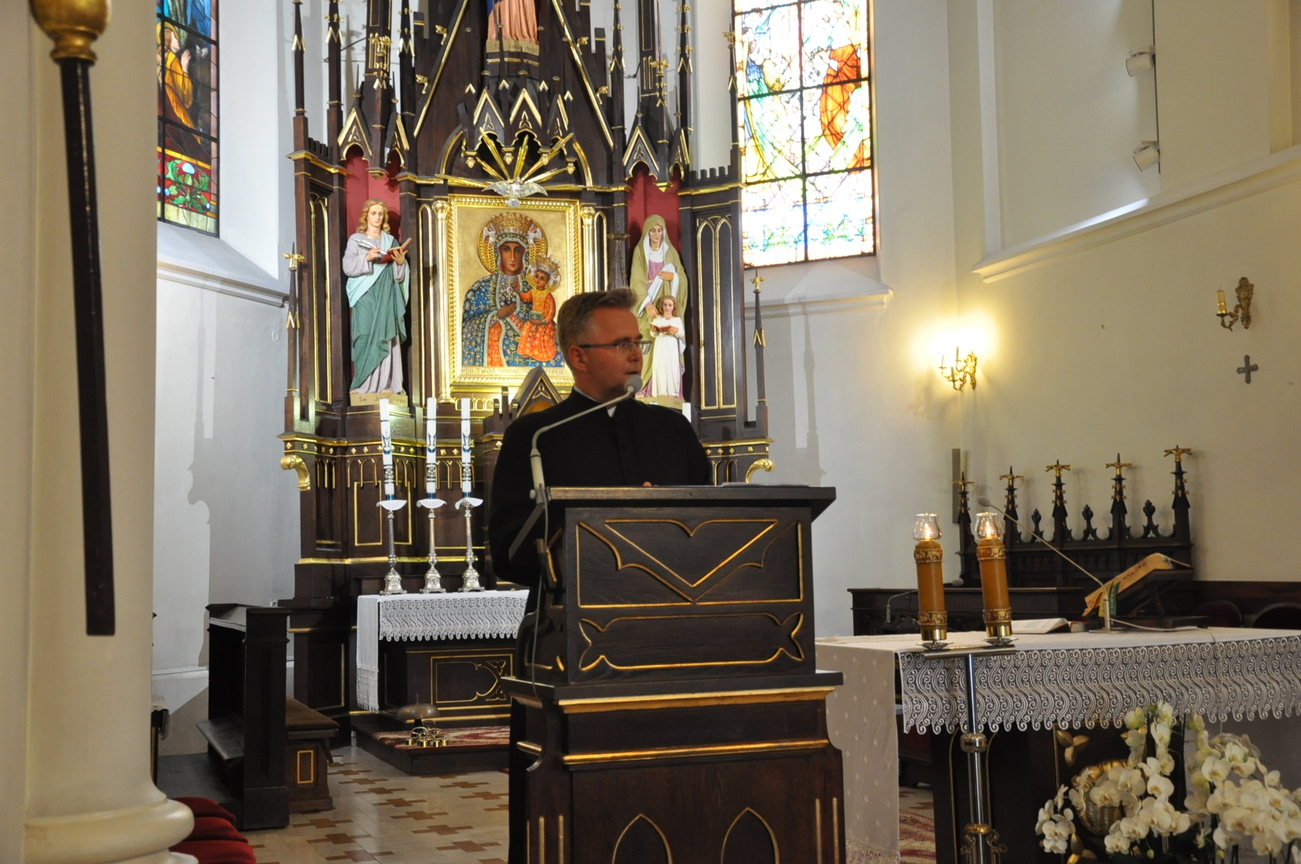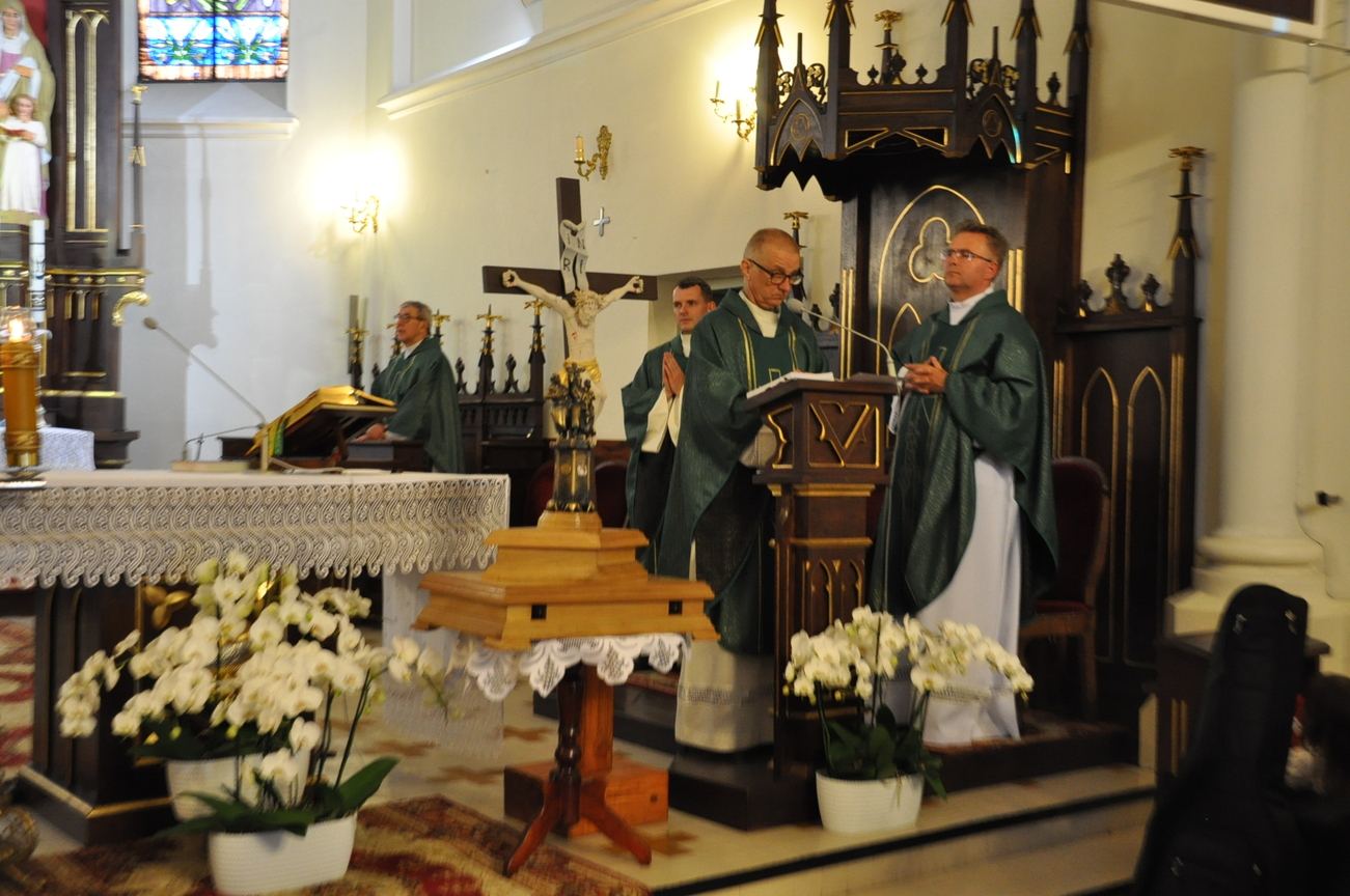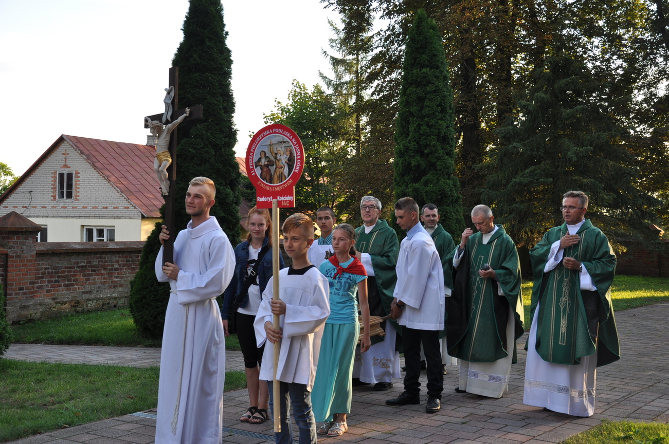 Dzień dzisiejszy naznaczony był wieloma symbolami. W uroczystym, procesyjnym wejściu został przyniesiony przed ołtarz znaczek tegorocznej pielgrzymki, oraz kopia Krzyża Pratulińskiego, którego poświęcenia dokonał ksiądz proboszcz Zbigniew Daniluk.