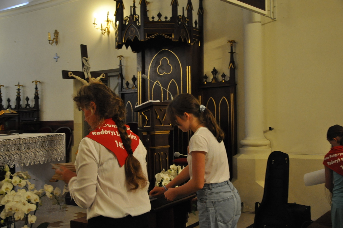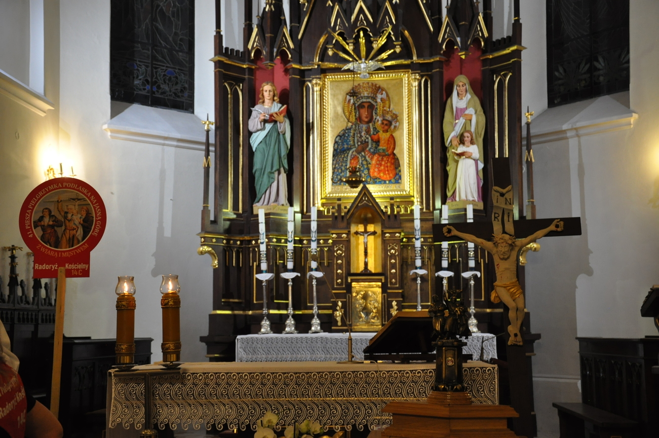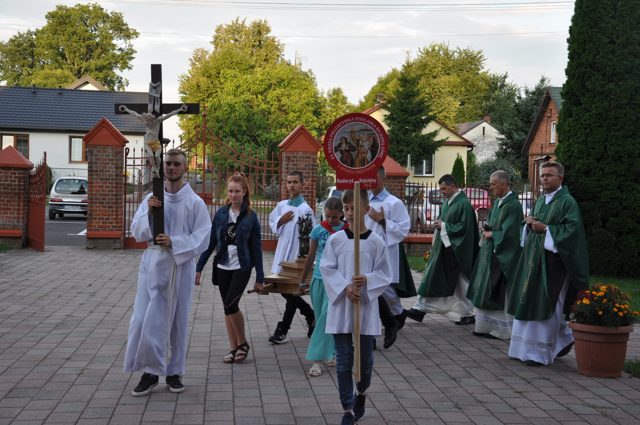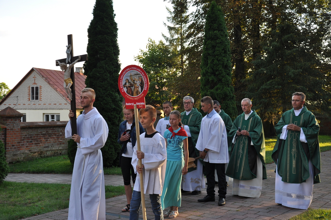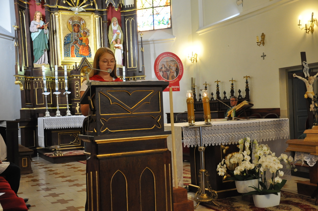 Dzień dzisiejszy naznaczony był wieloma symbolami. W uroczystym, procesyjnym wejściu został przyniesiony przed ołtarz znaczek tegorocznej pielgrzymki, oraz kopia Krzyża Pratulińskiego, którego poświęcenia dokonał ksiądz proboszcz Zbigniew Daniluk.