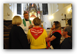 Wszyscy duchowi pątnicy otrzymali dzisiaj znaczki tegorocznej pielgrzymki, a ci którzy byli pierwszy raz otrzymali również chusty.