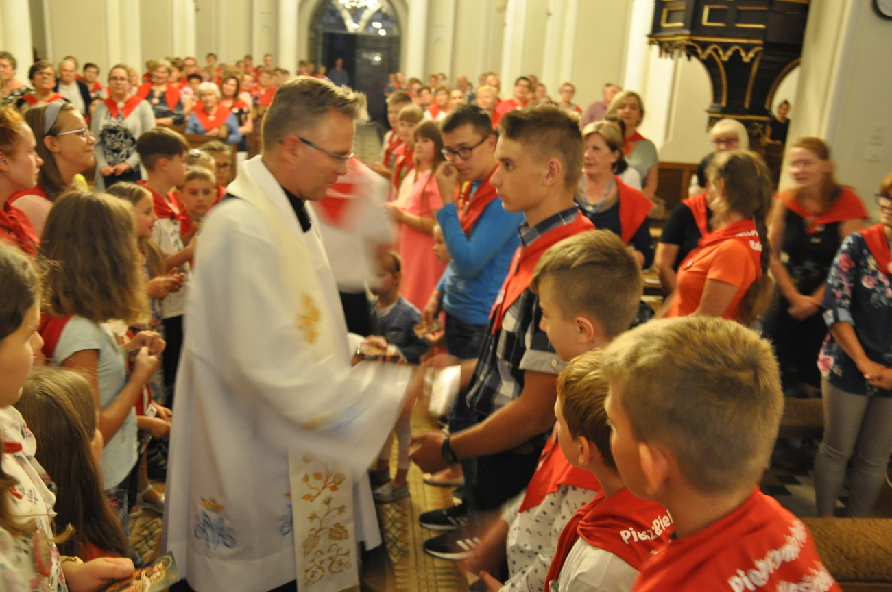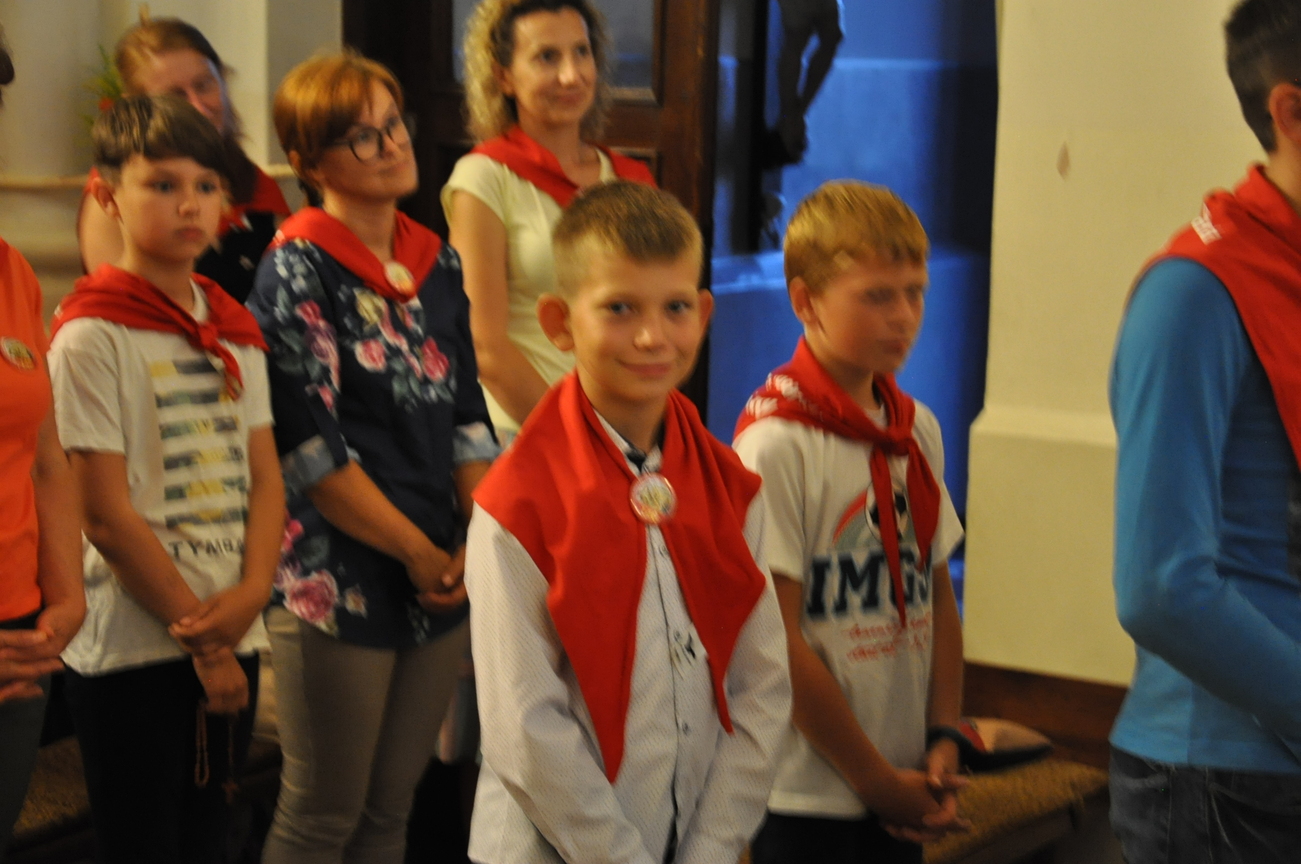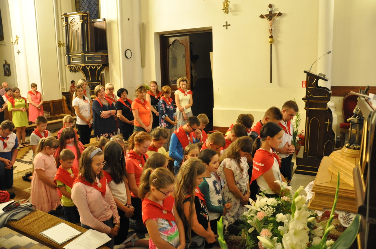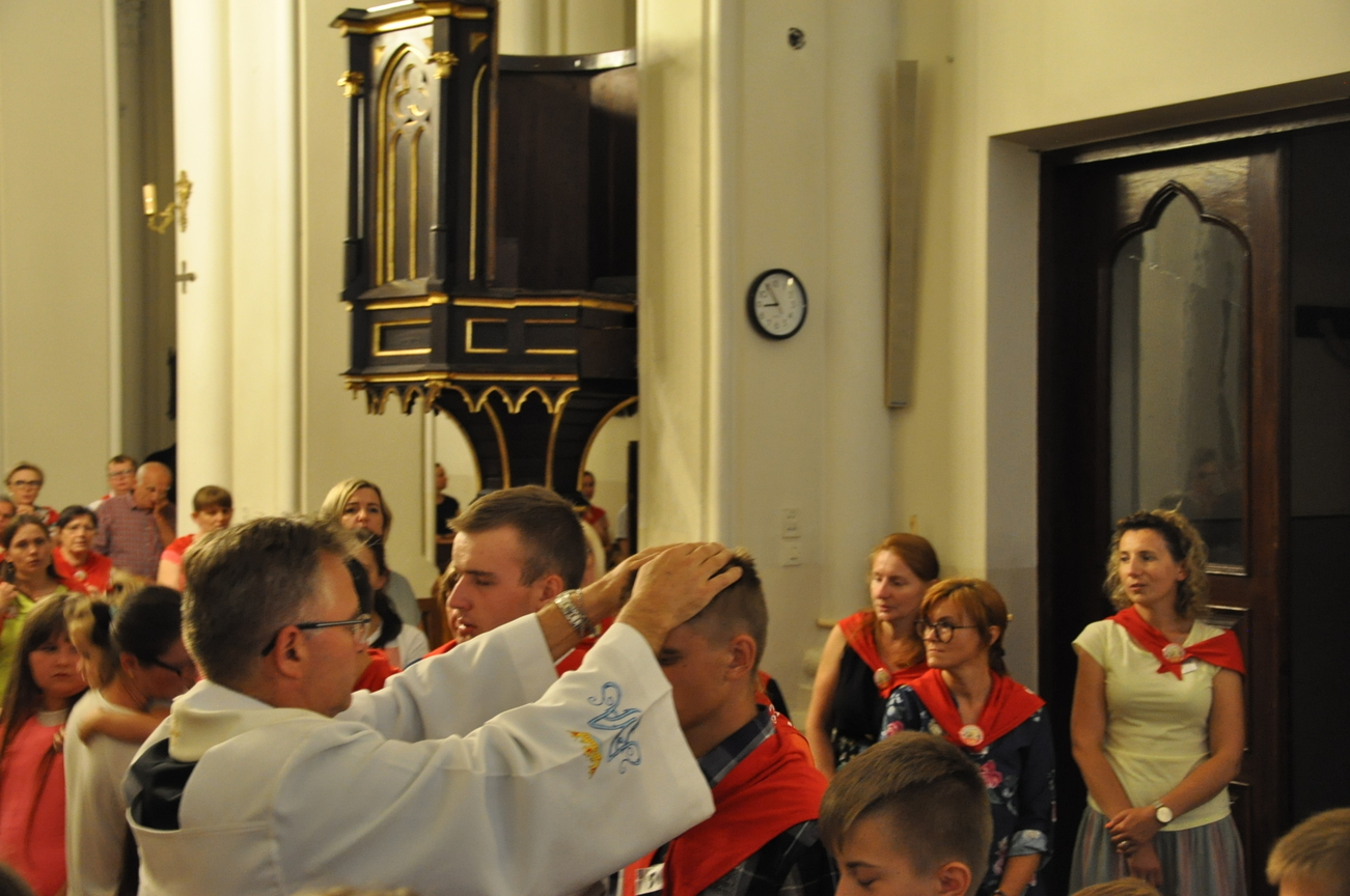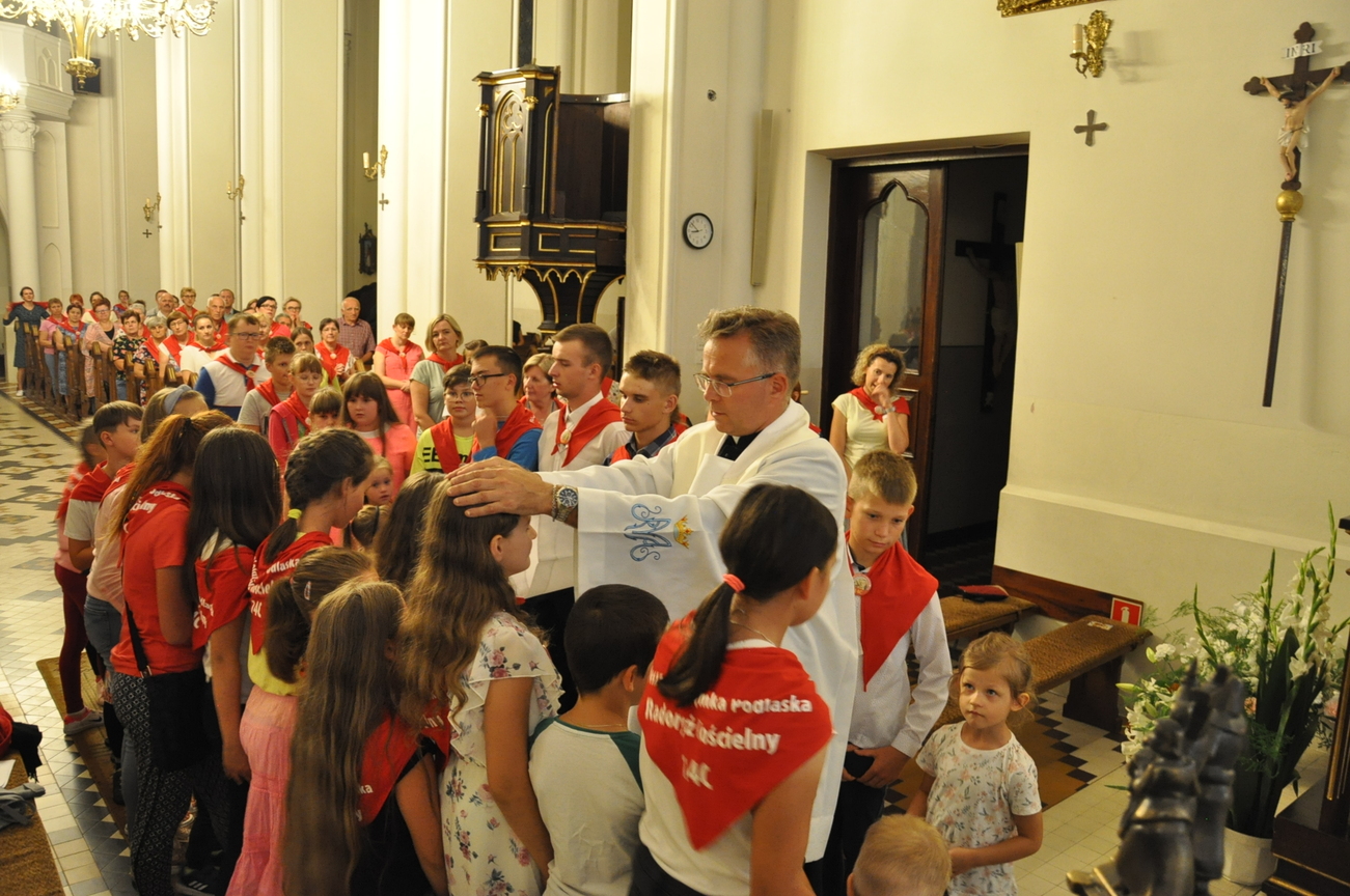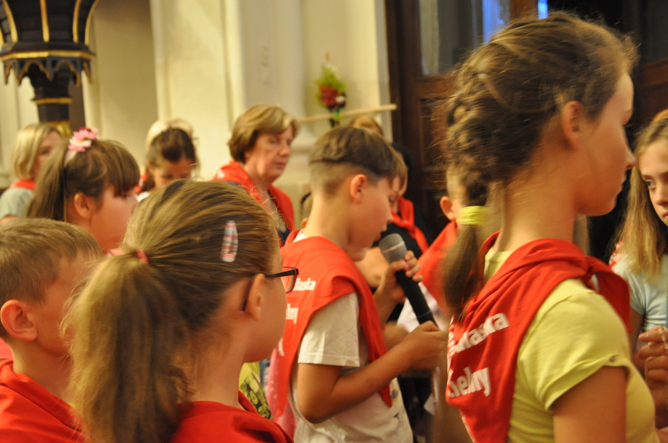 Anielskie głosy naszych najmłodszych pątników rozbrzmiewały w świątyni podczas rozważania radosnych tajemnic Różańca Świętego. Następnie ks. Sławomir udzielił dzieciom uroczystego błogosławieństwa z nałożeniem rąk.
