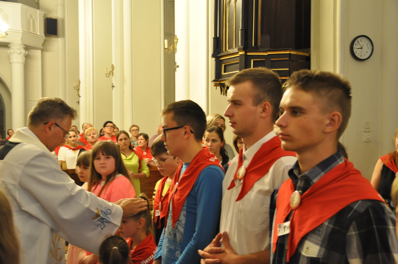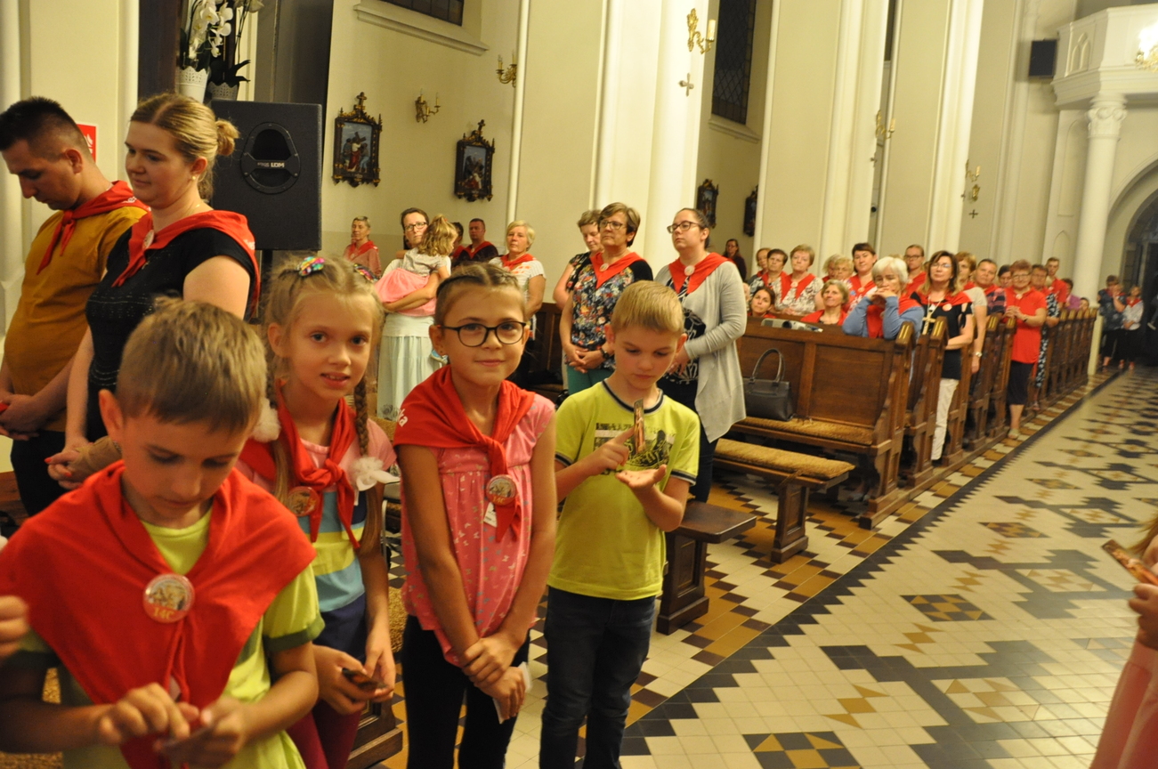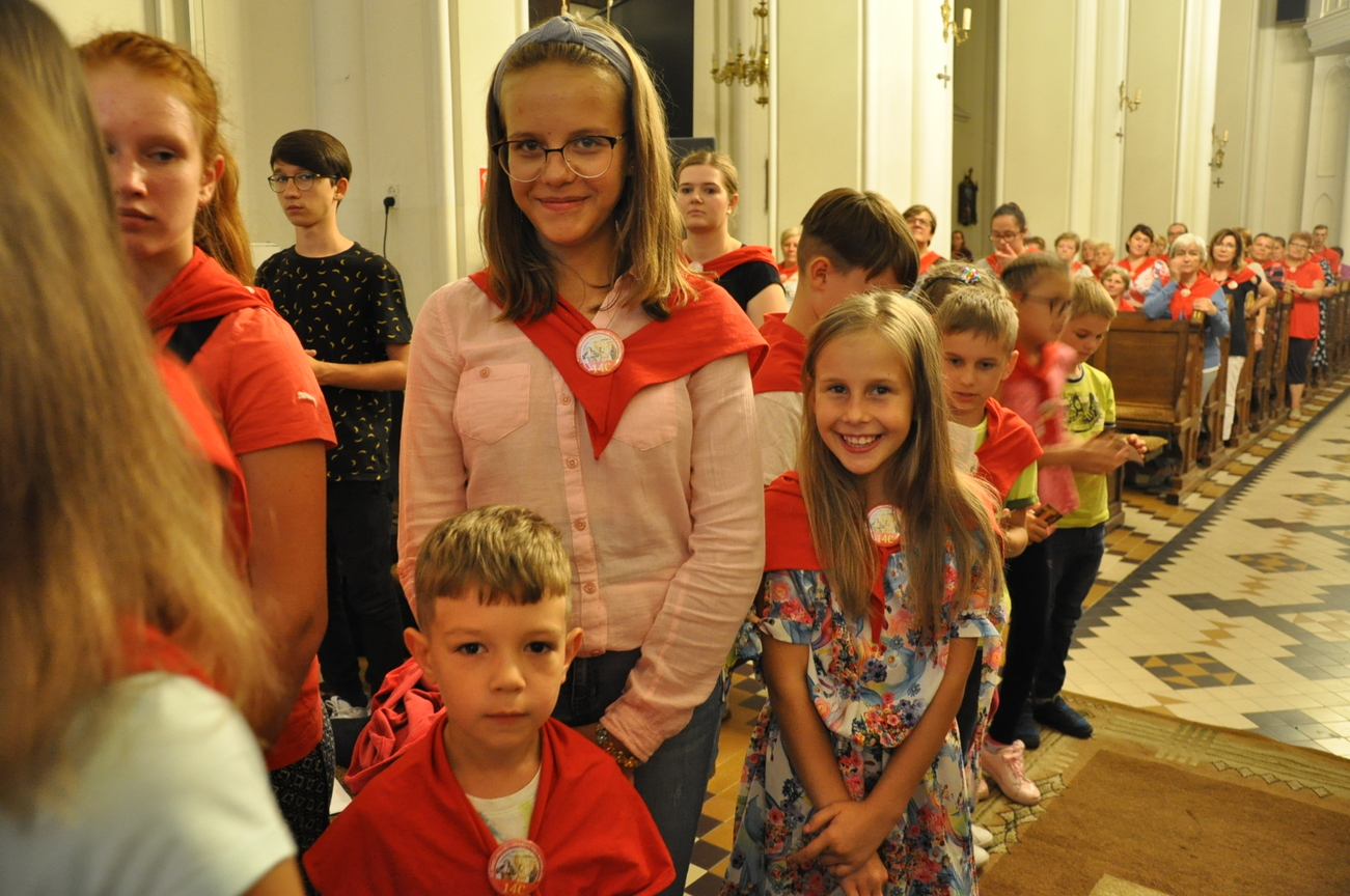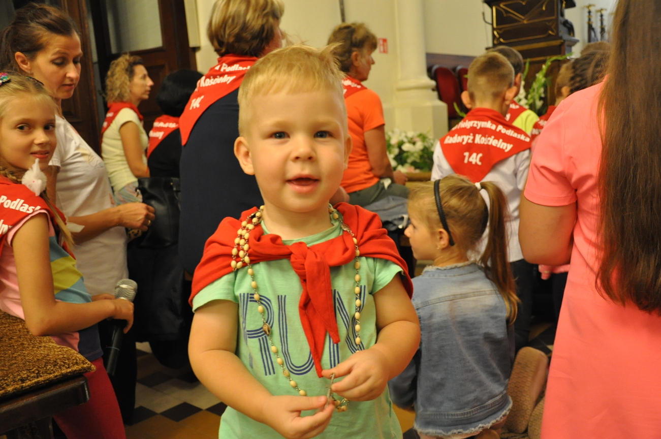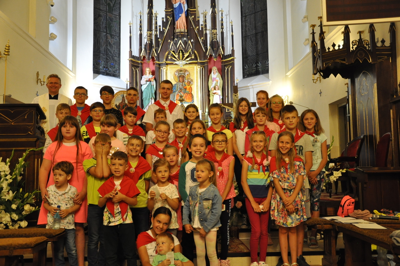 Anielskie głosy naszych najmłodszych pątników rozbrzmiewały w świątyni podczas rozważania radosnych tajemnic Różańca Świętego. Następnie ks. Sławomir udzielił dzieciom uroczystego błogosławieństwa z nałożeniem rąk.