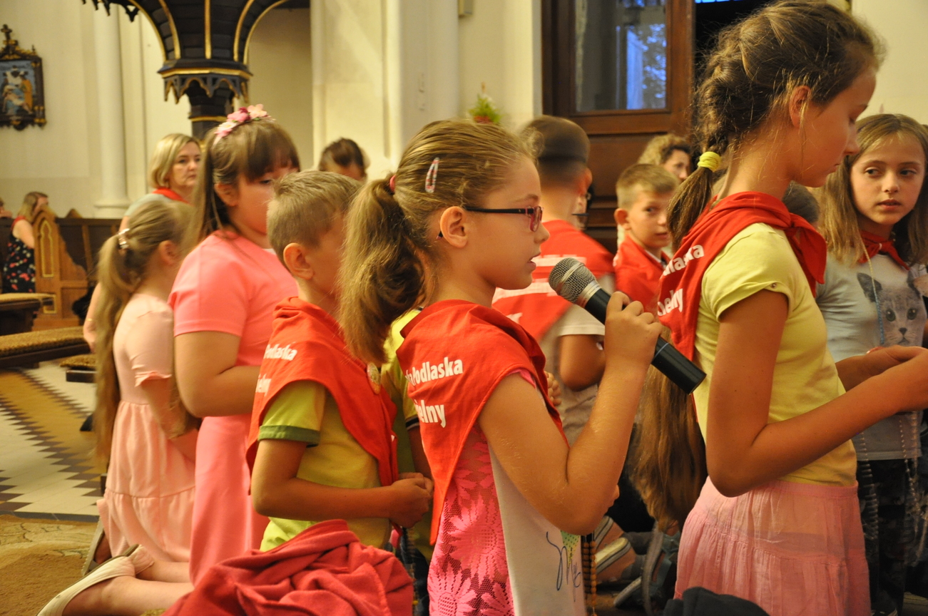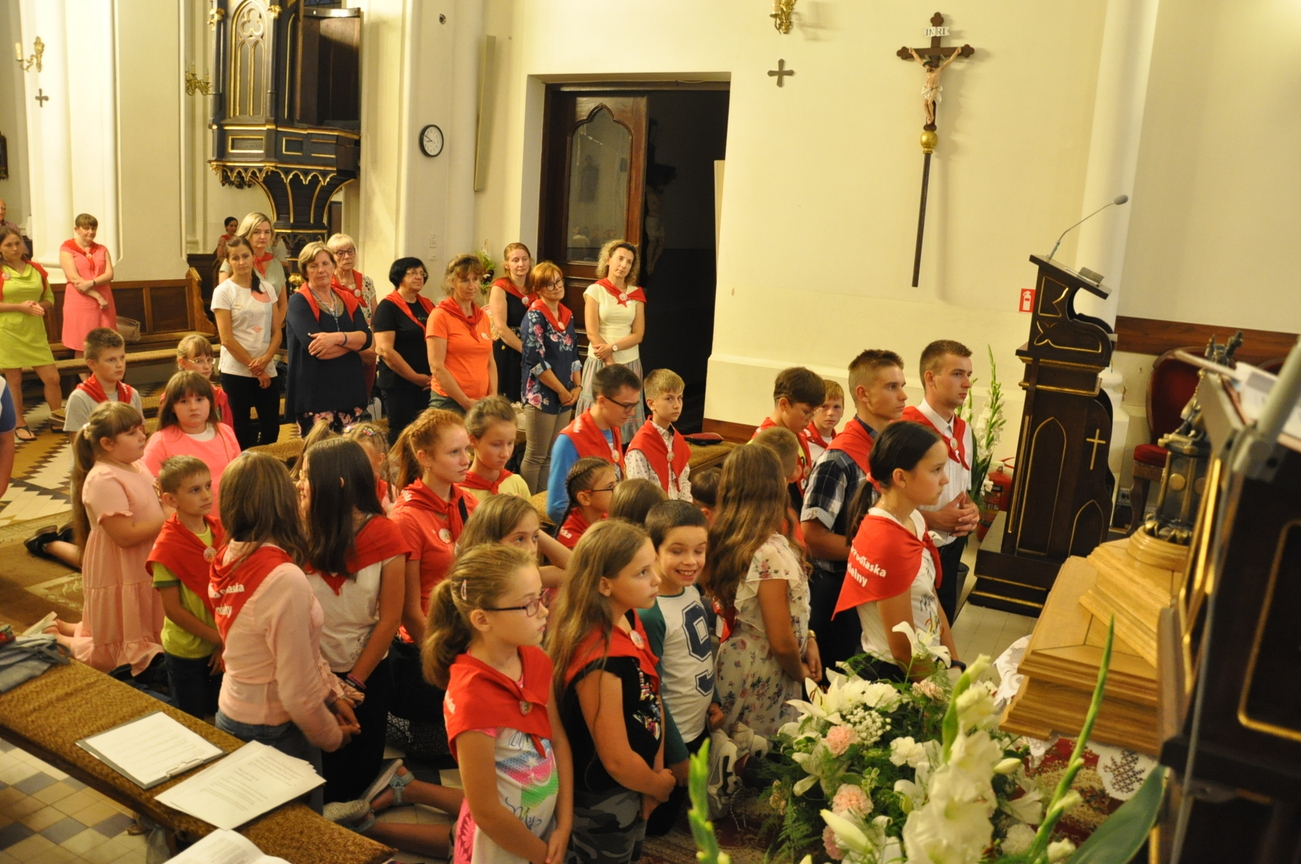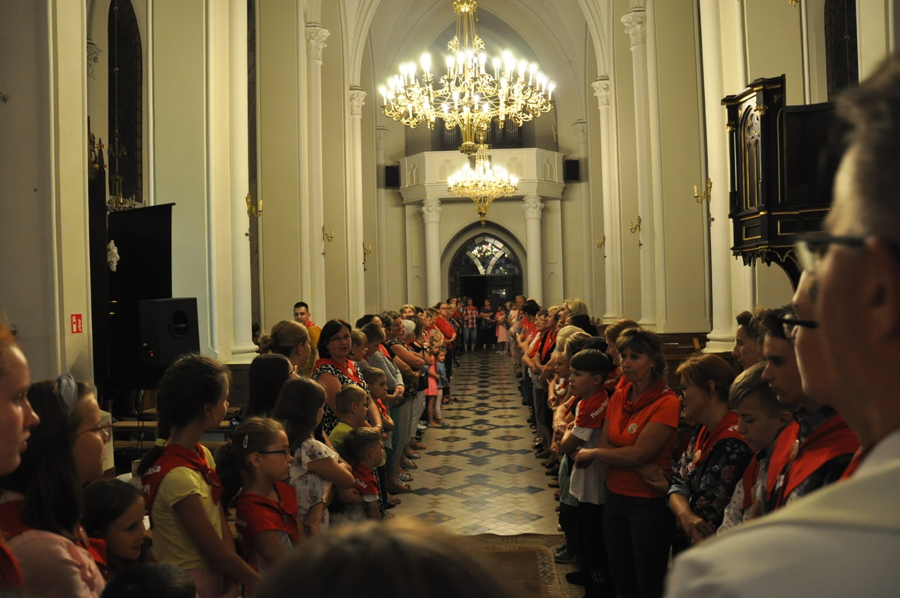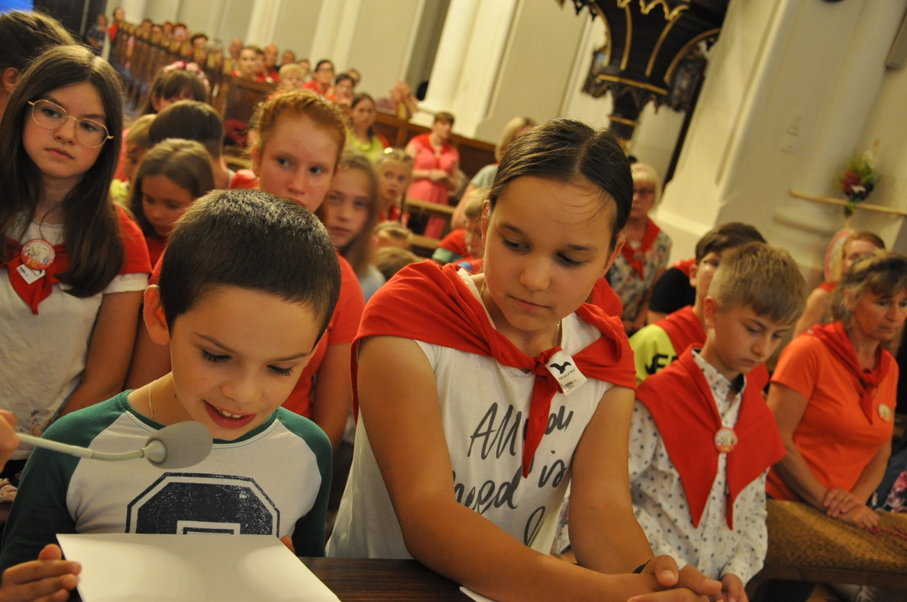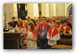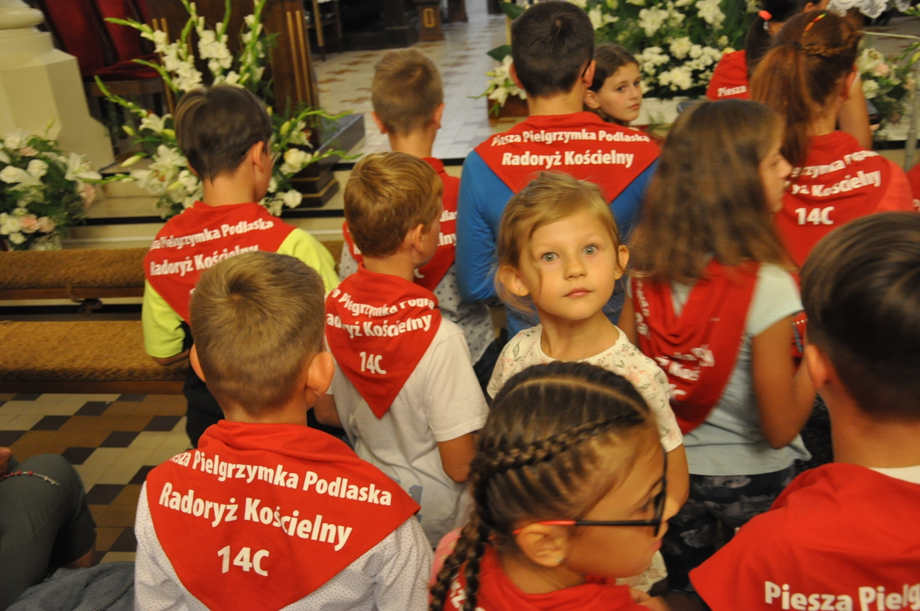 Anielskie głosy naszych najmłodszych pątników rozbrzmiewały w świątyni podczas rozważania radosnych tajemnic Różańca Świętego. Następnie ks. Sławomir udzielił dzieciom uroczystego błogosławieństwa z nałożeniem rąk.