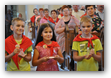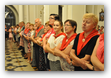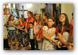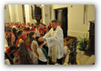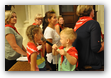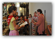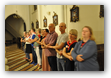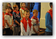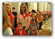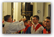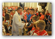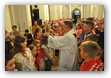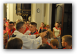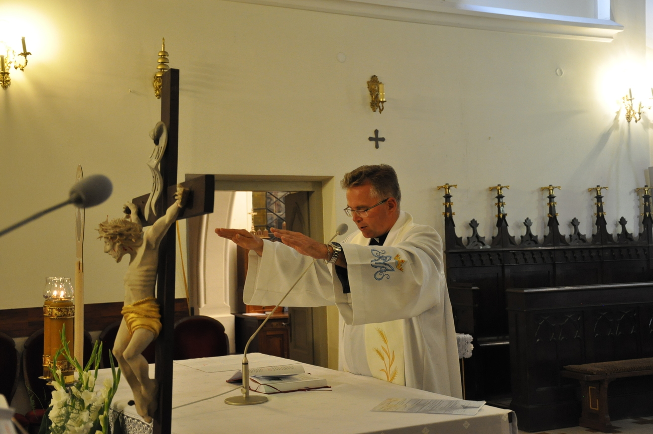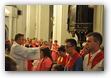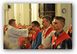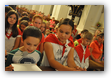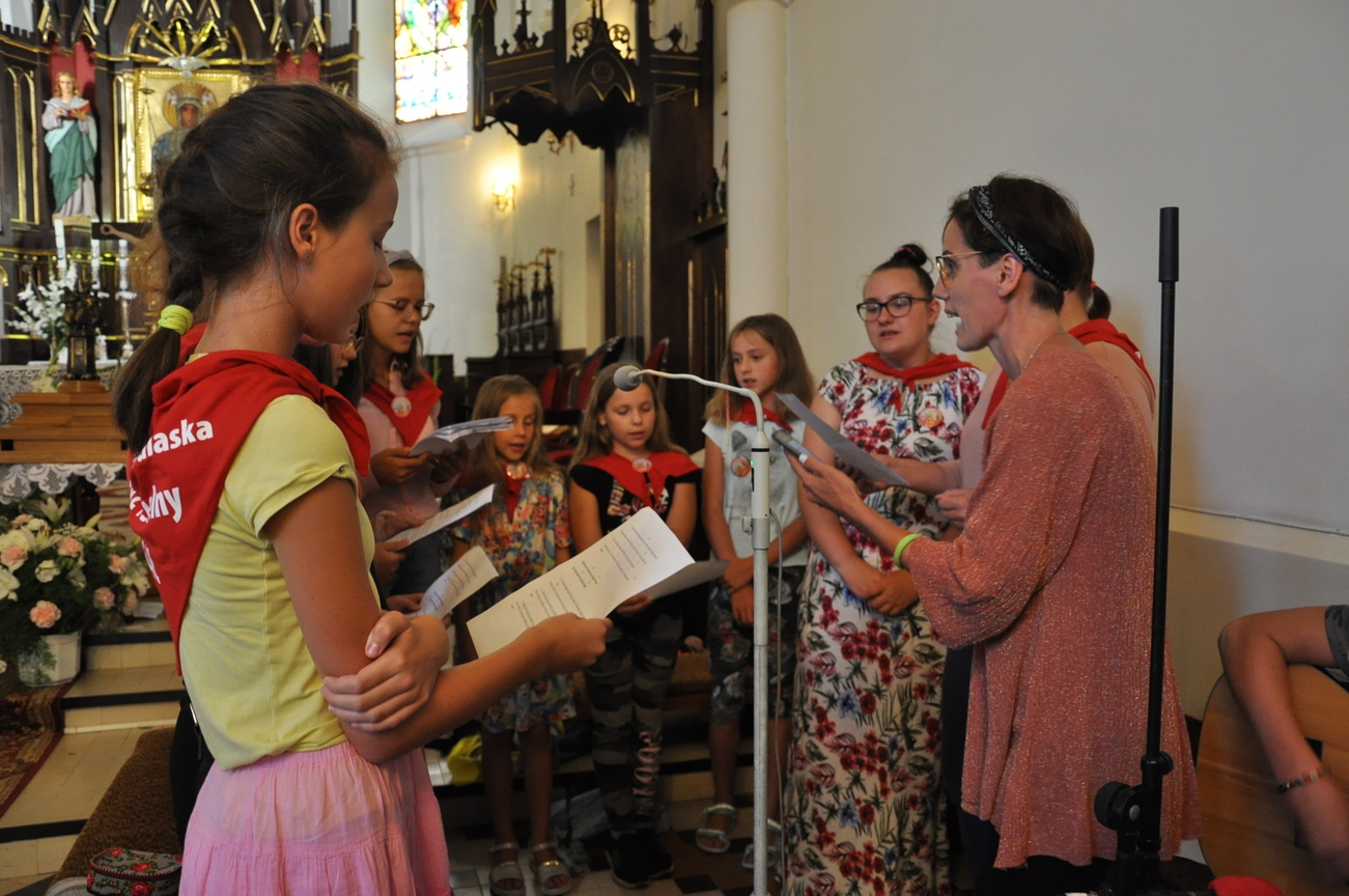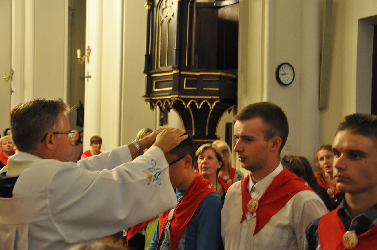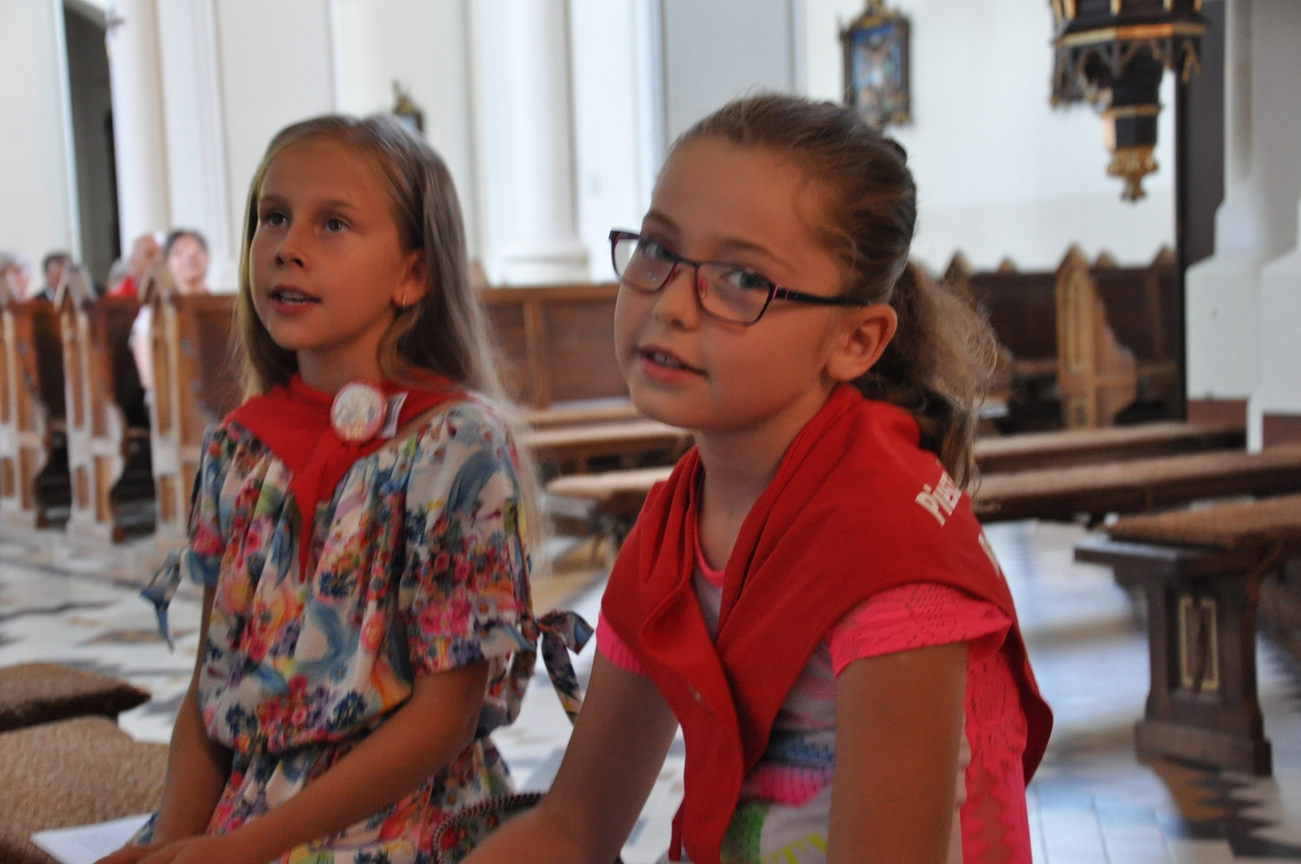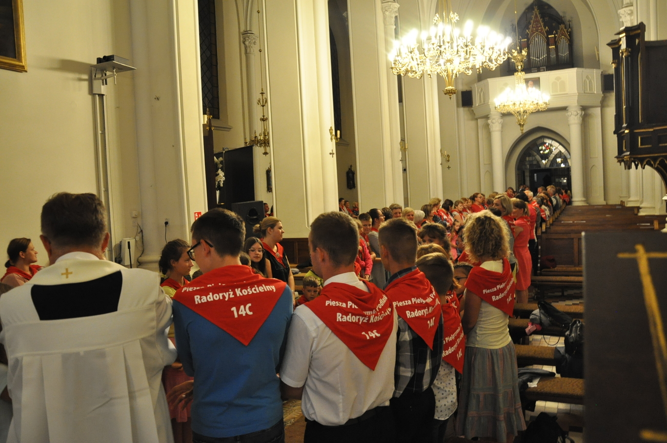 Anielskie głosy naszych najmłodszych pątników rozbrzmiewały w świątyni podczas rozważania radosnych tajemnic Różańca Świętego. Następnie ks. Sławomir udzielił dzieciom uroczystego błogosławieństwa z nałożeniem rąk.