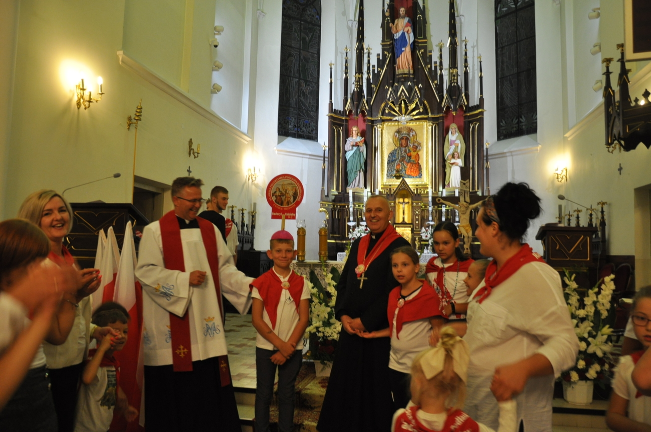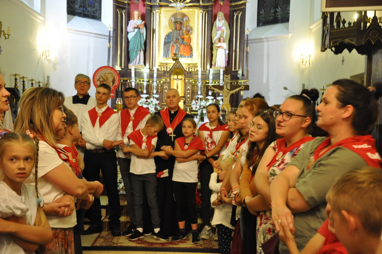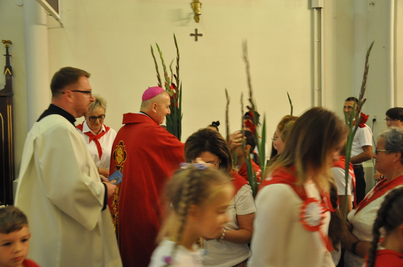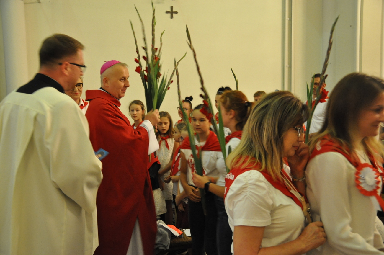 Ksiądz biskup przewodniczył Eucharystii, a w modlitwie przed apelem zawierzył Matce Bożej naszą parafię, naszą gminę, wszystkich razem i każdego z osobna. Na zakończenie udzielił nam pasterskiego błogosławieństwa.