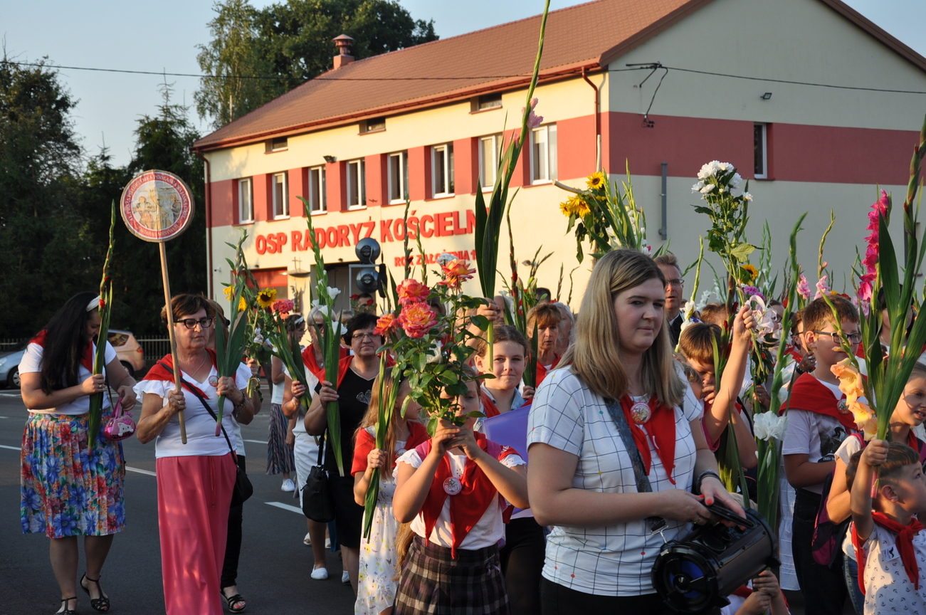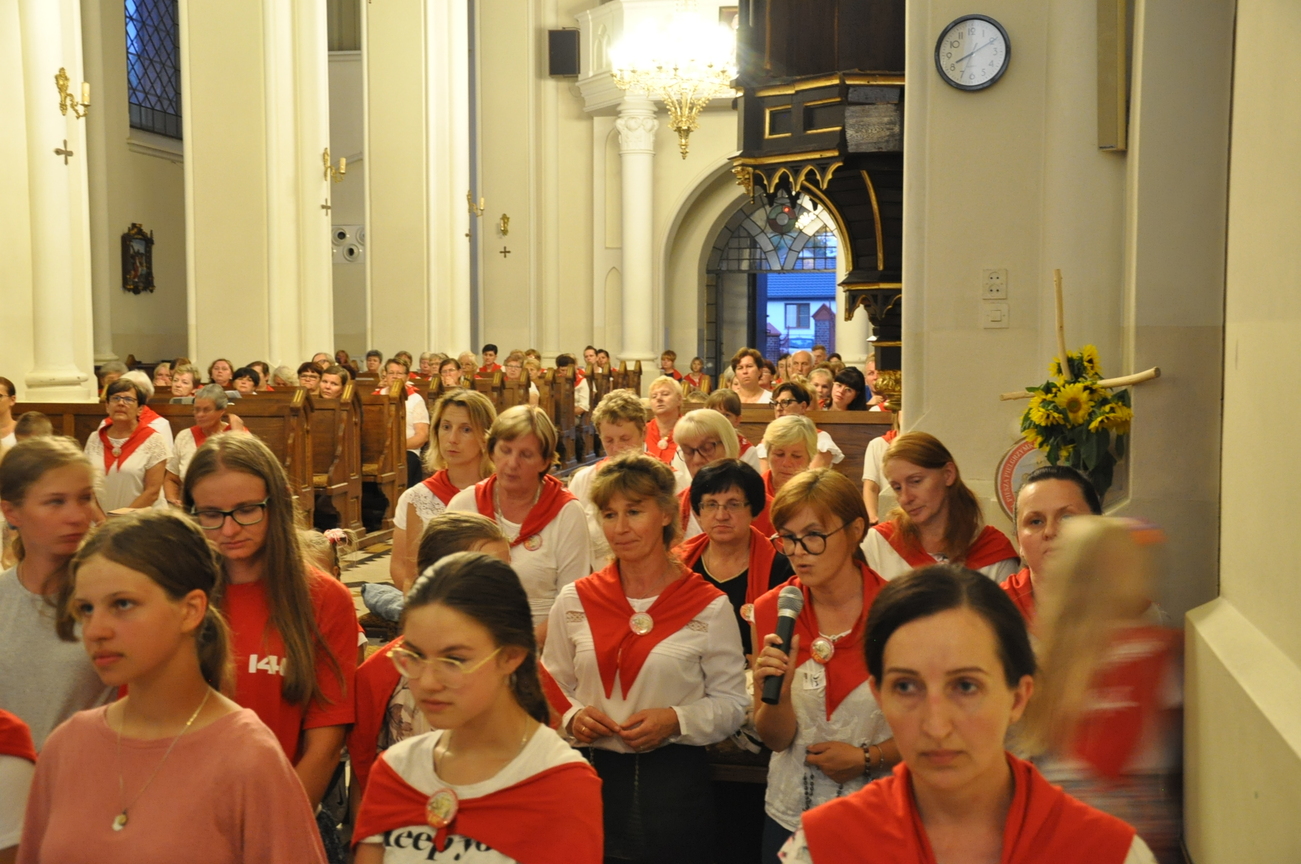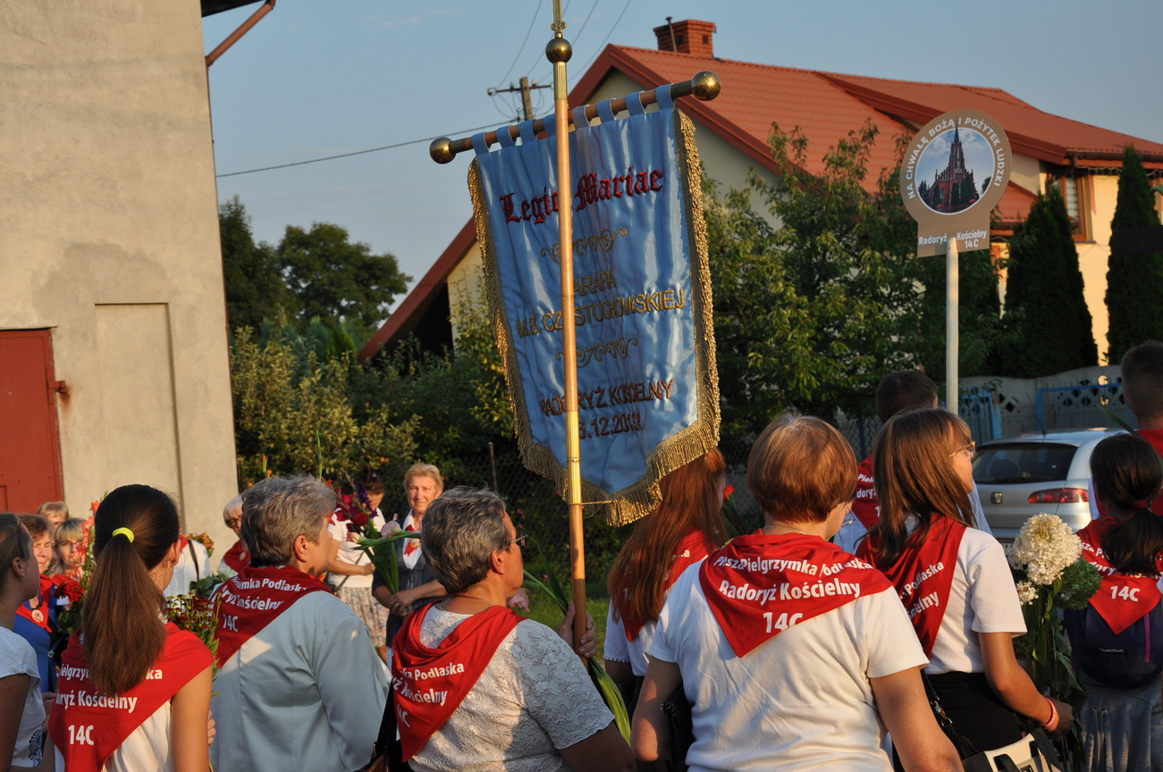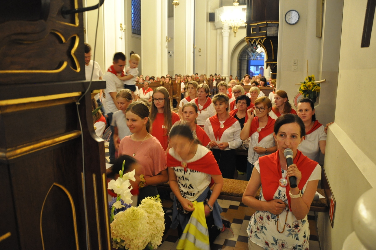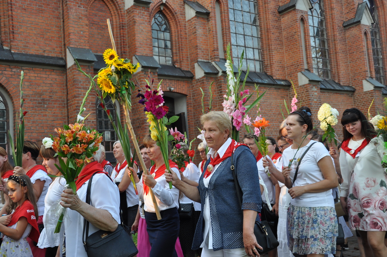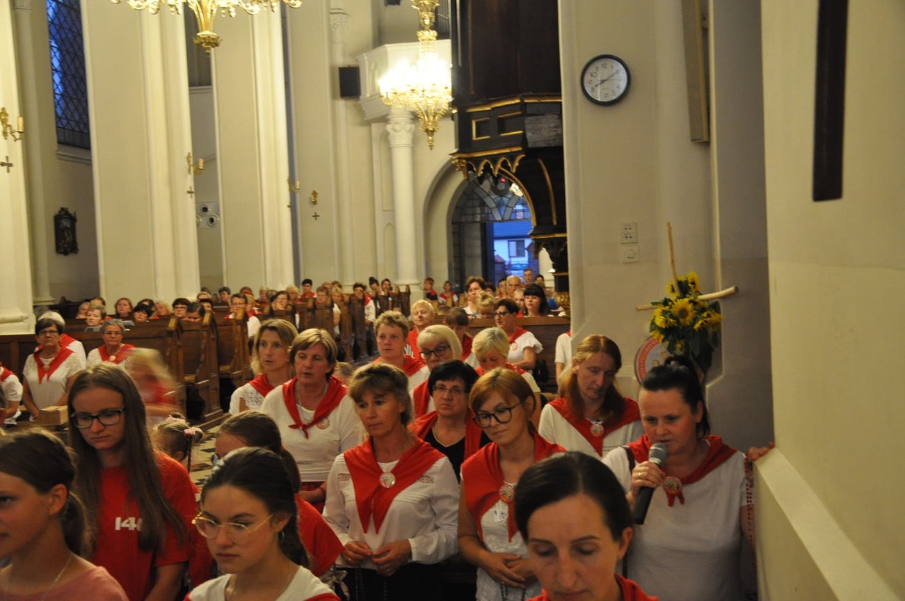 Dzisiaj ostatni etap naszej Duchowej Pielgrzymki. Zgromadziliśmy się przy Domu Strażaka z kwiatami aby procesyjnie wejść do kościoła niosąc kopię krzyża pratulińskiego, znaczek pielgrzymkowy, obraz i feretron z wizerunkiem Matki Bożej Częstochowskiej.