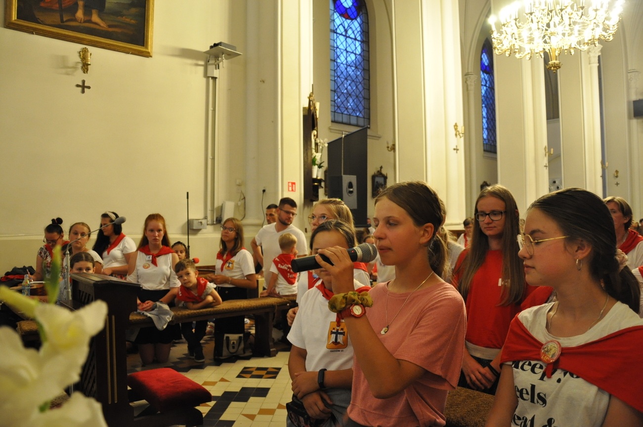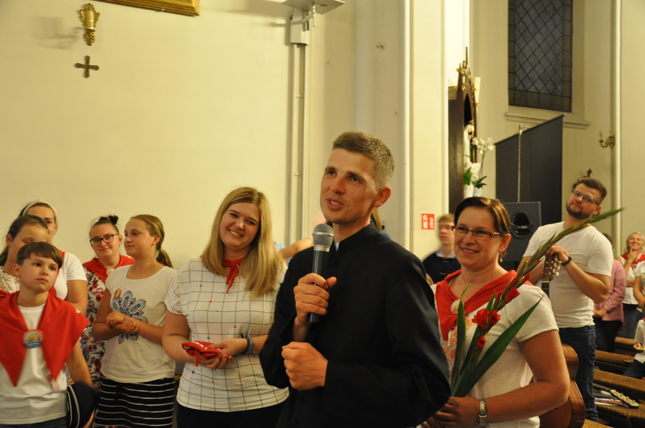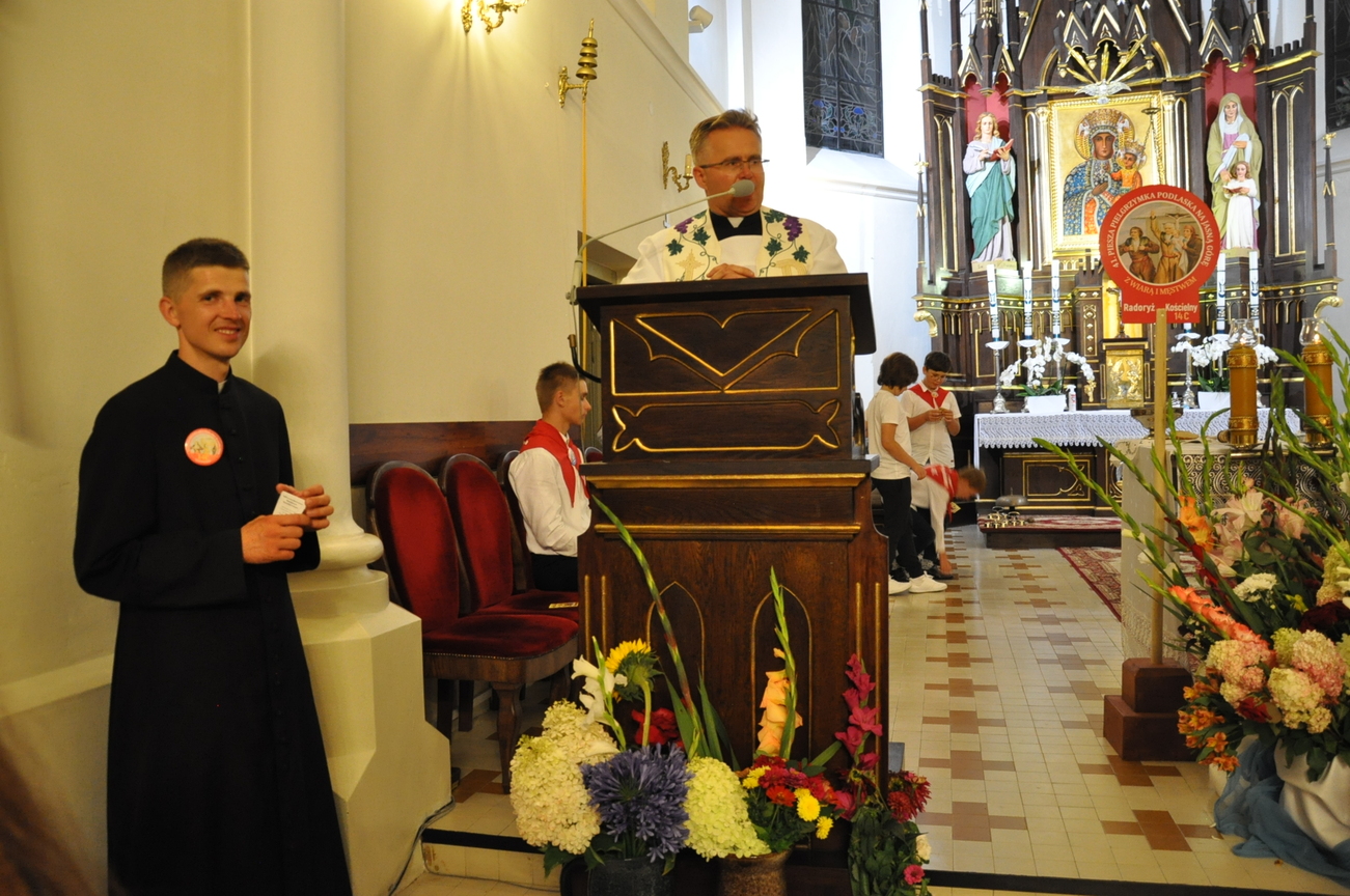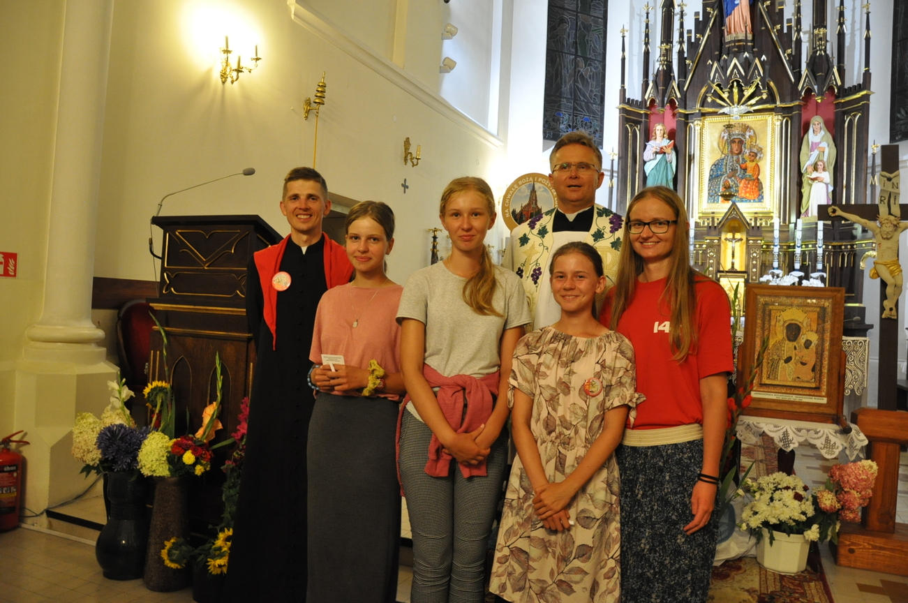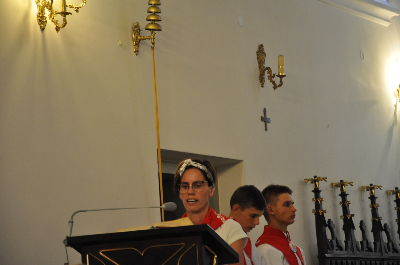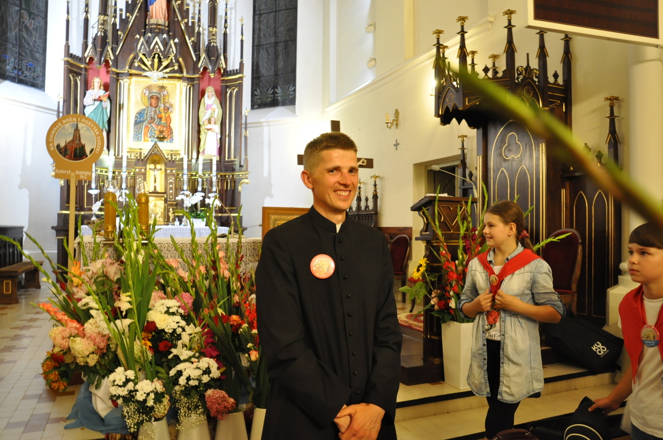 Oczywiście nie obyło się bez gości; kiedy nasze siostry z pielgrzymki pieszej kroczyły przez środek kościoła, niejedna łza spłynęła po naszych policzkach ze wzruszenia, aż niektórzy śpiewać nie mogli. Kolejny gość to ks. Adam, kierownik pielgrzymkowy grupy 14C.