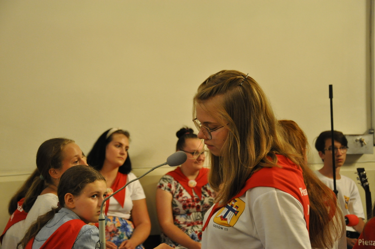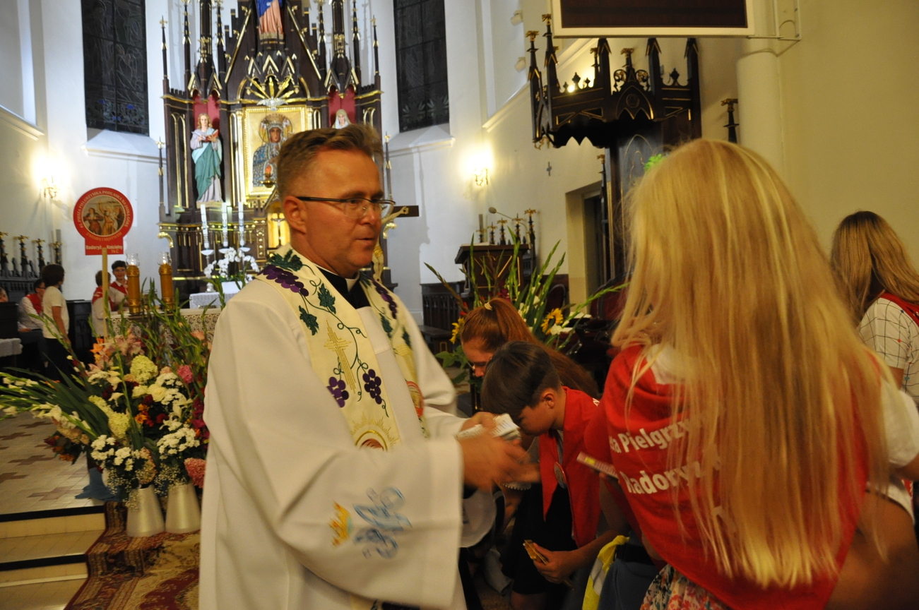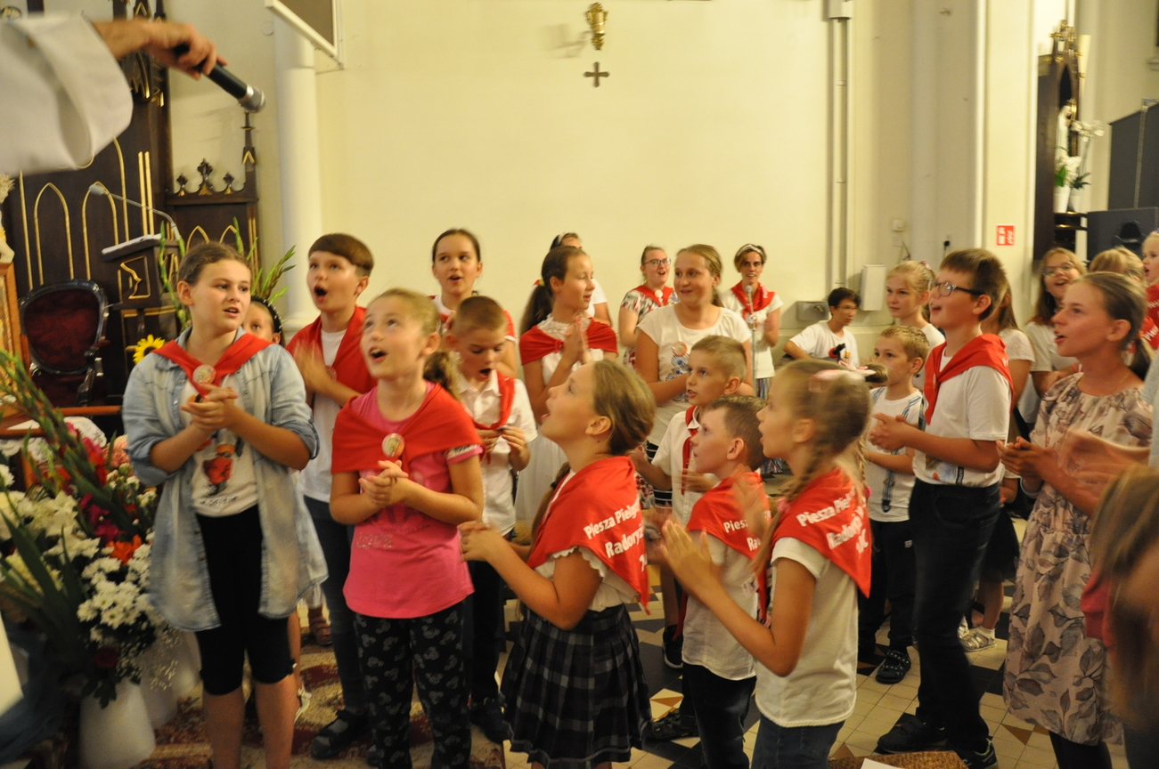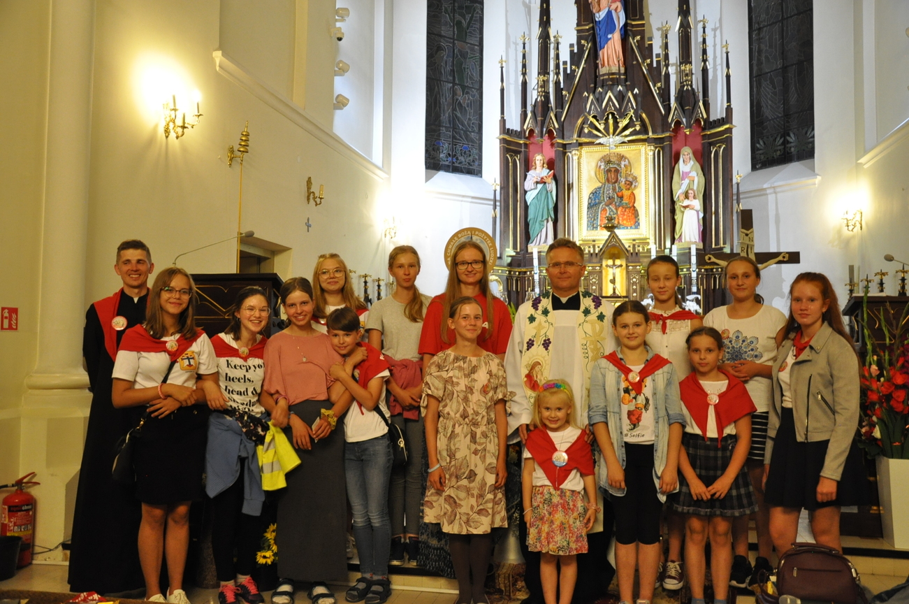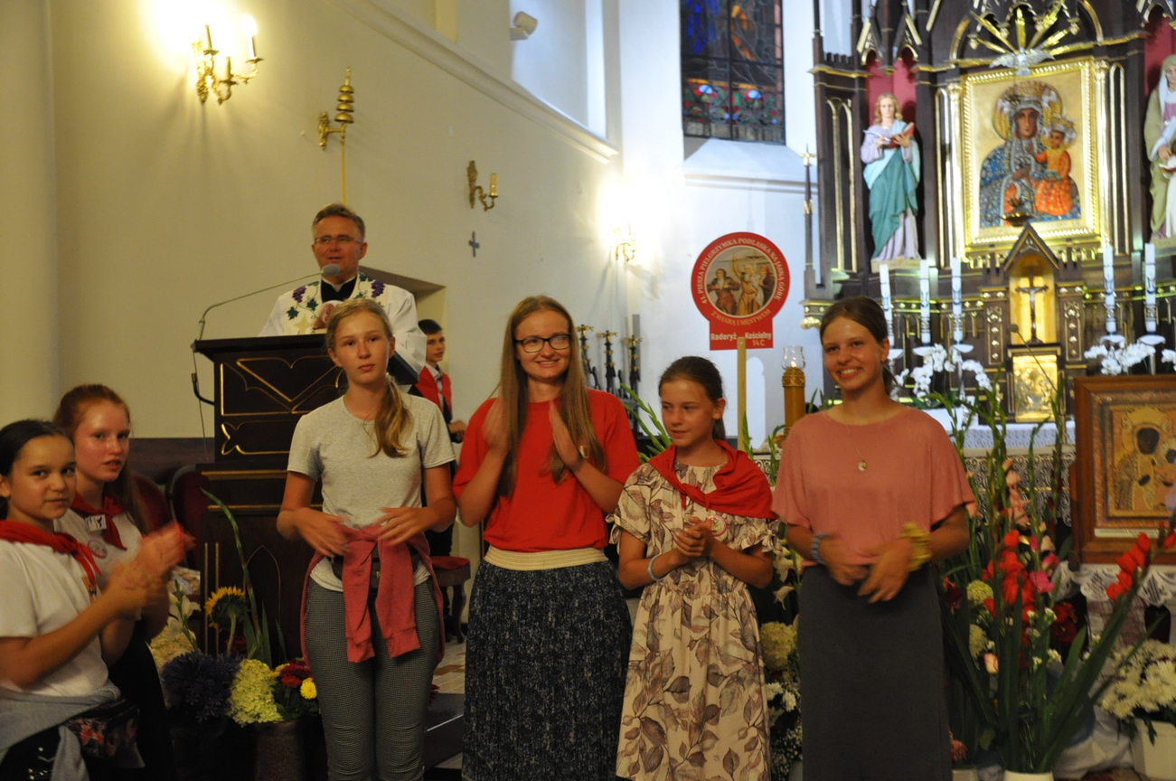 Oczywiście nie obyło się bez gości; kiedy nasze siostry z pielgrzymki pieszej kroczyły przez środek kościoła, niejedna łza spłynęła po naszych policzkach ze wzruszenia, aż niektórzy śpiewać nie mogli. Kolejny gość to ks. Adam, kierownik pielgrzymkowy grupy 14C.