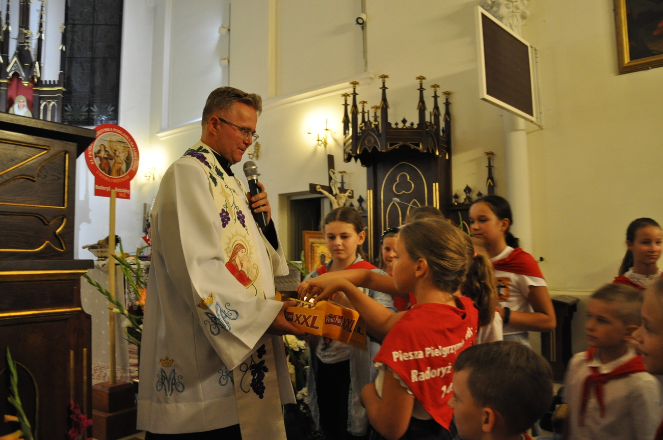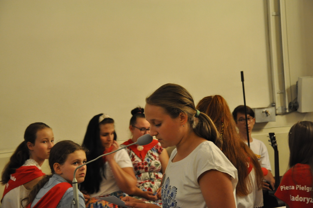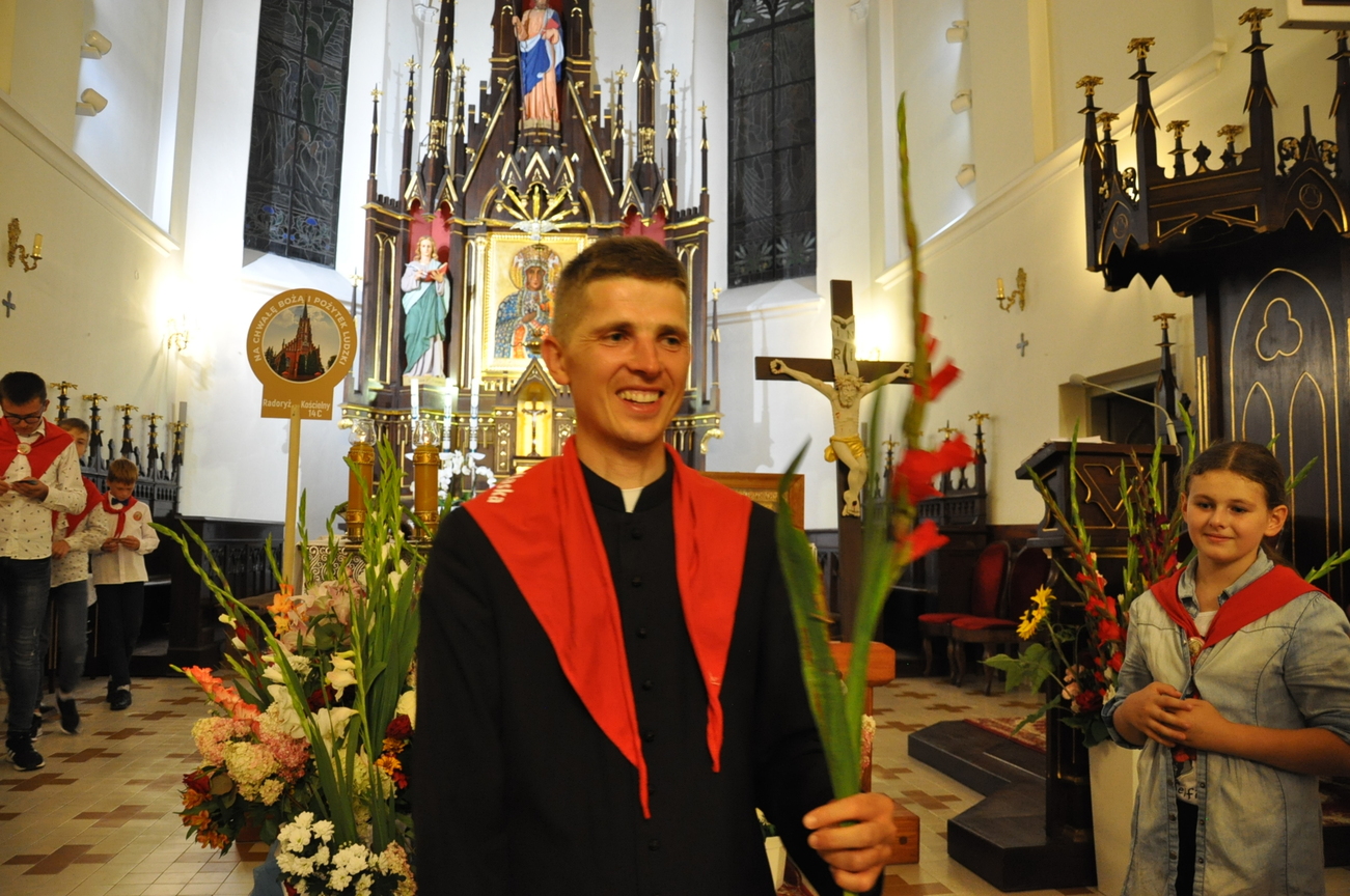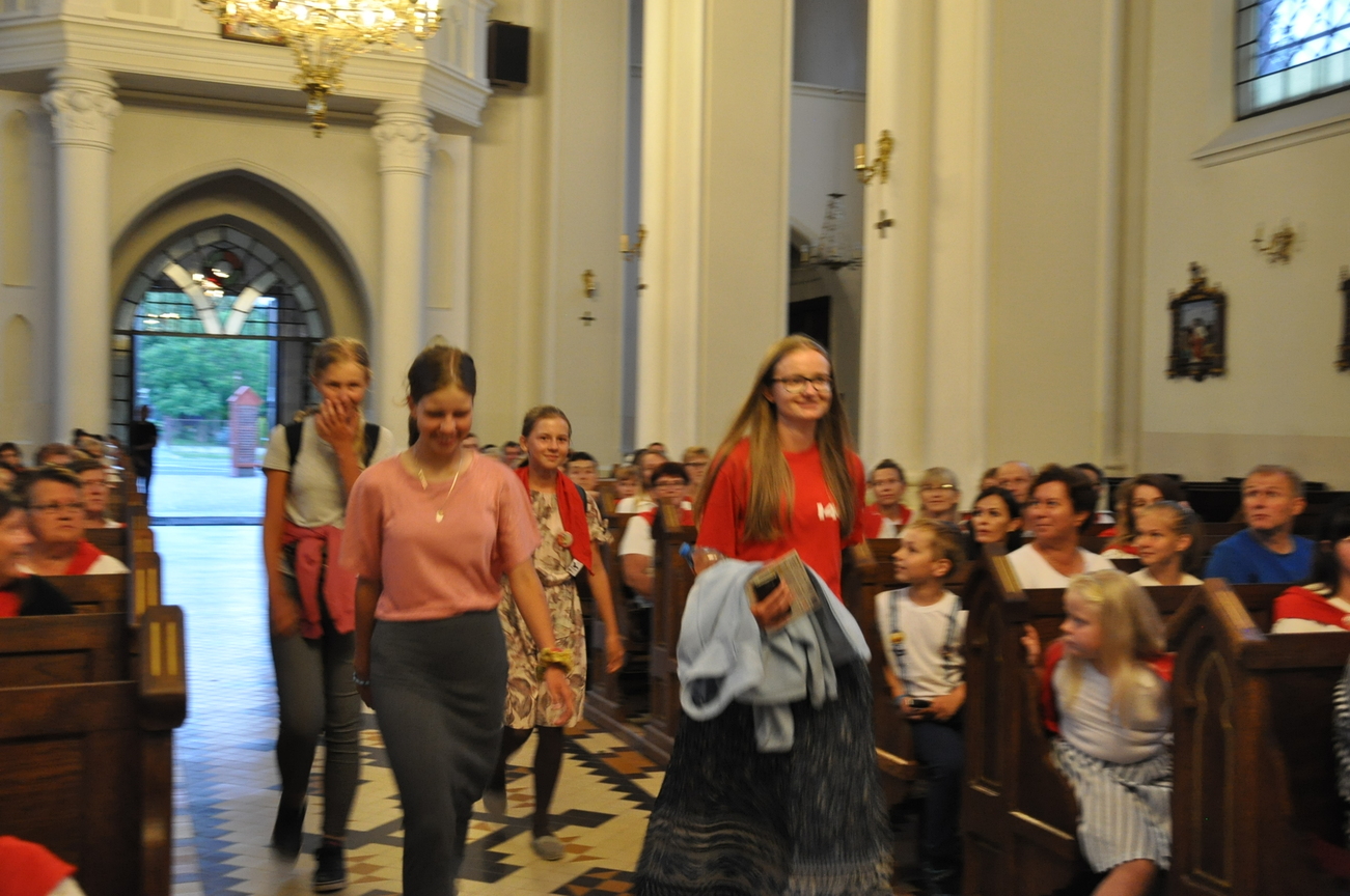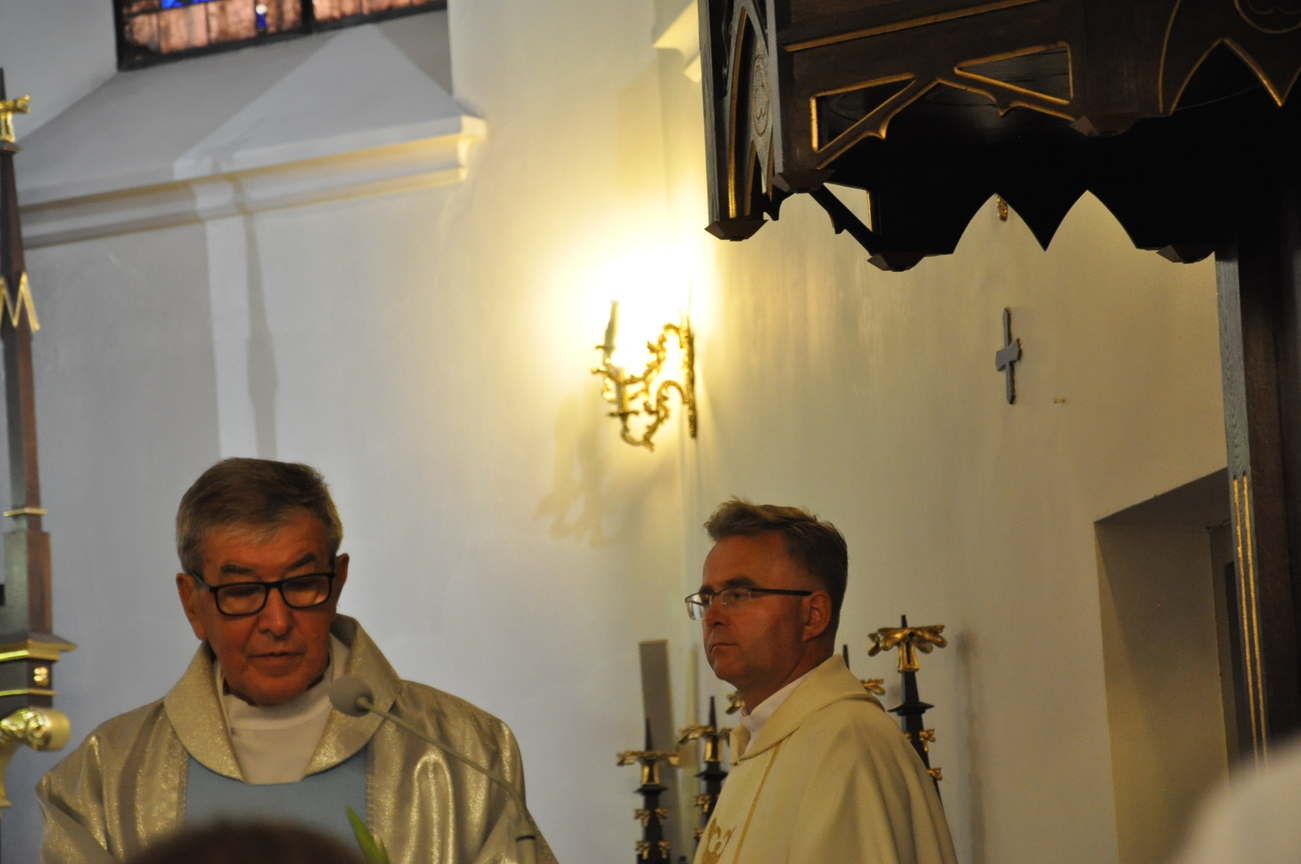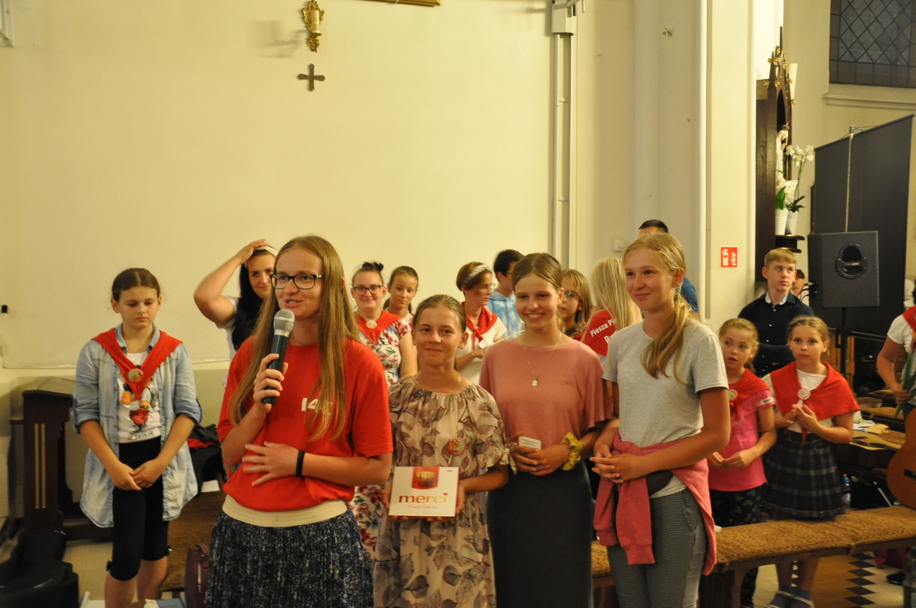 Oczywiście nie obyło się bez gości; kiedy nasze siostry z pielgrzymki pieszej kroczyły przez środek kościoła, niejedna łza spłynęła po naszych policzkach ze wzruszenia, aż niektórzy śpiewać nie mogli. Kolejny gość to ks. Adam, kierownik pielgrzymkowy grupy 14C.