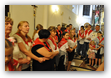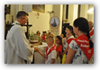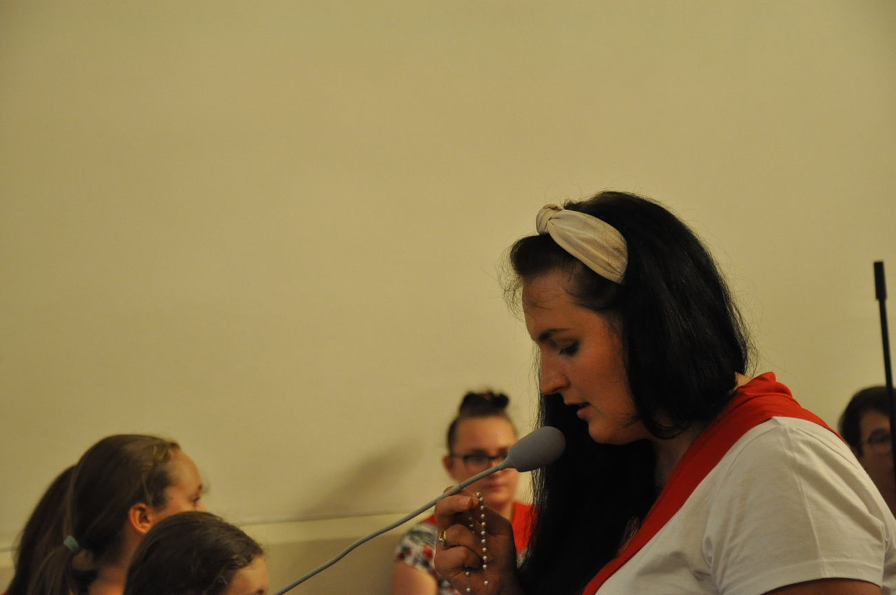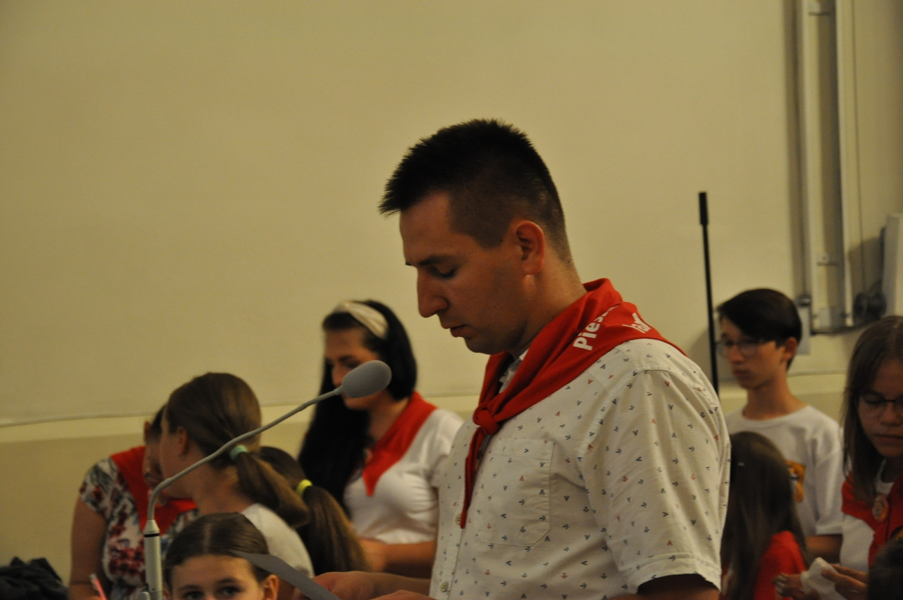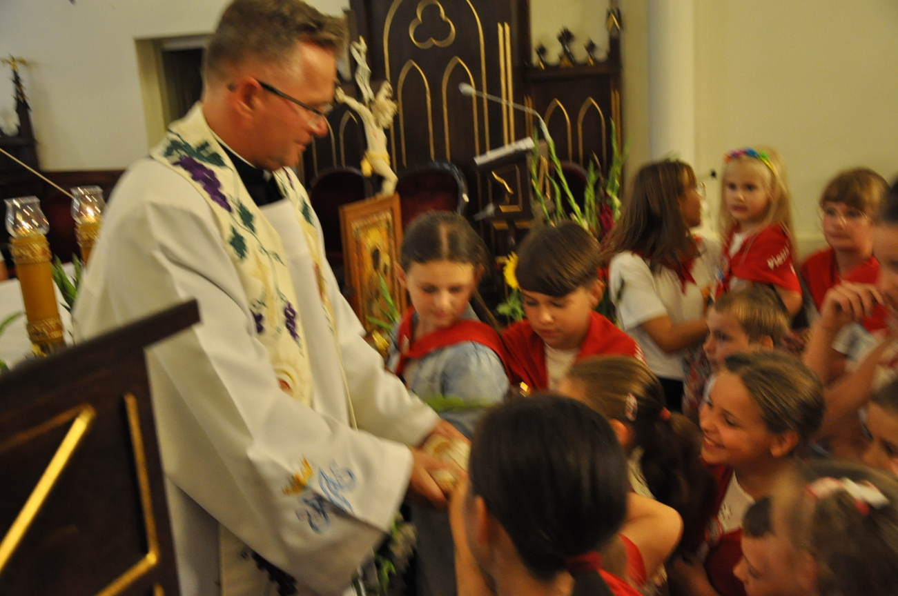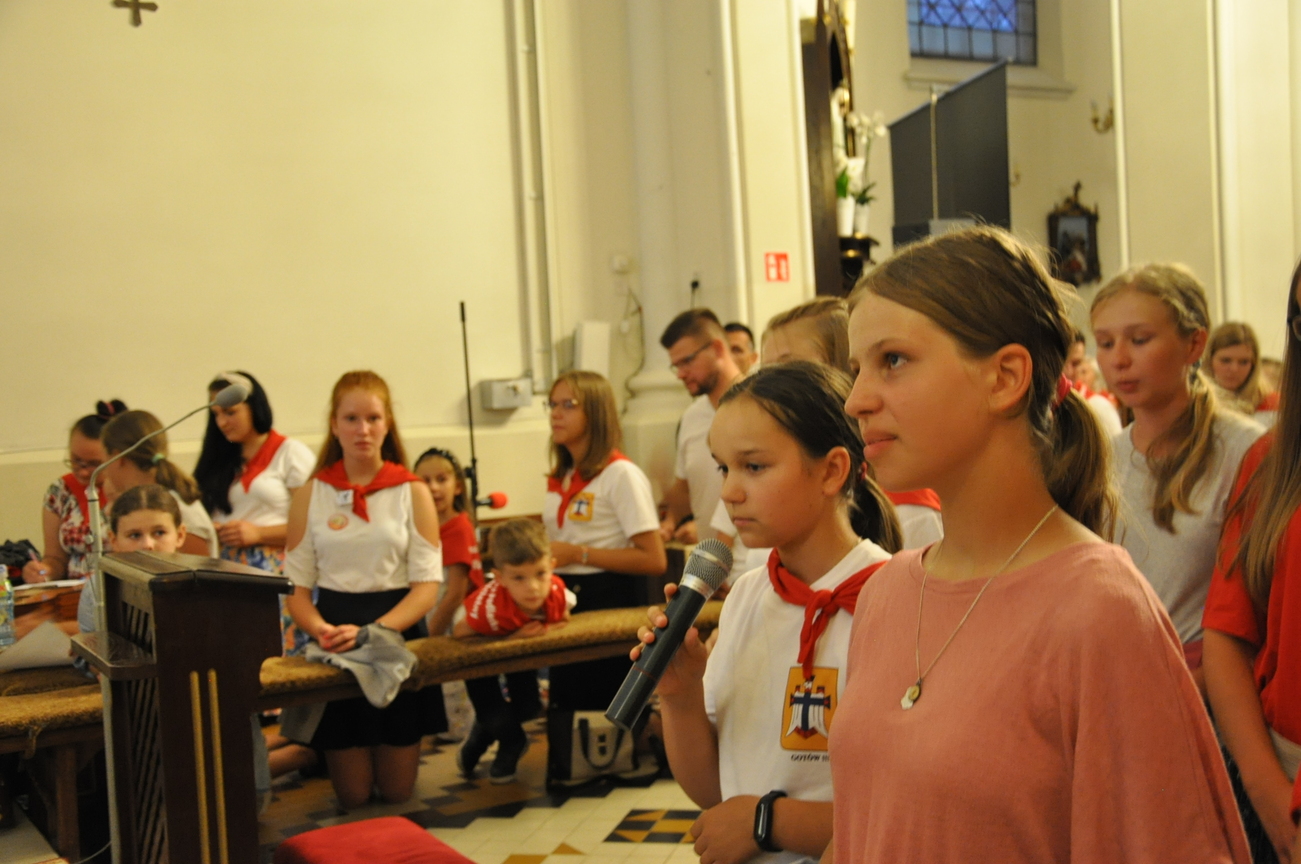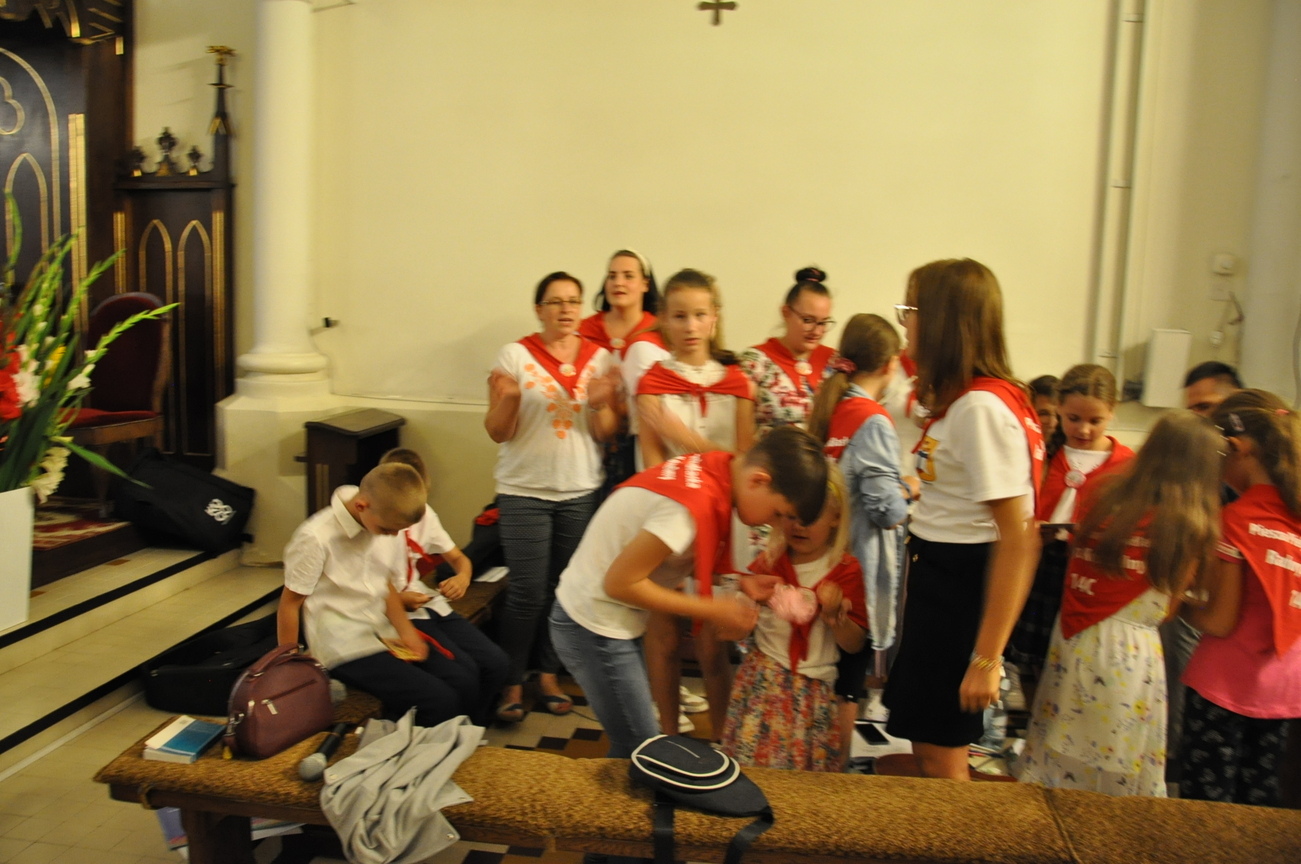 Oczywiście nie obyło się bez gości; kiedy nasze siostry z pielgrzymki pieszej kroczyły przez środek kościoła, niejedna łza spłynęła po naszych policzkach ze wzruszenia, aż niektórzy śpiewać nie mogli. Kolejny gość to ks. Adam, kierownik pielgrzymkowy grupy 14C.