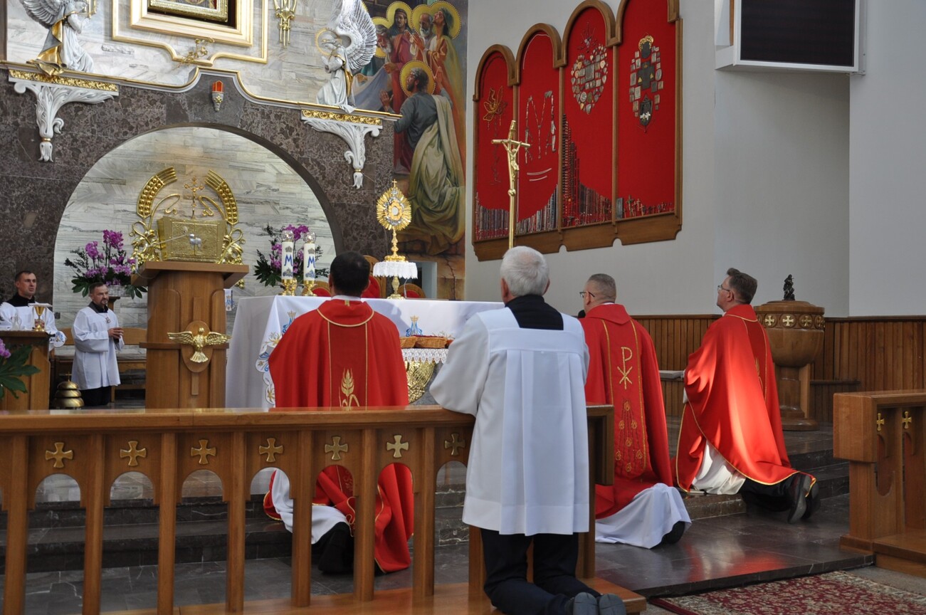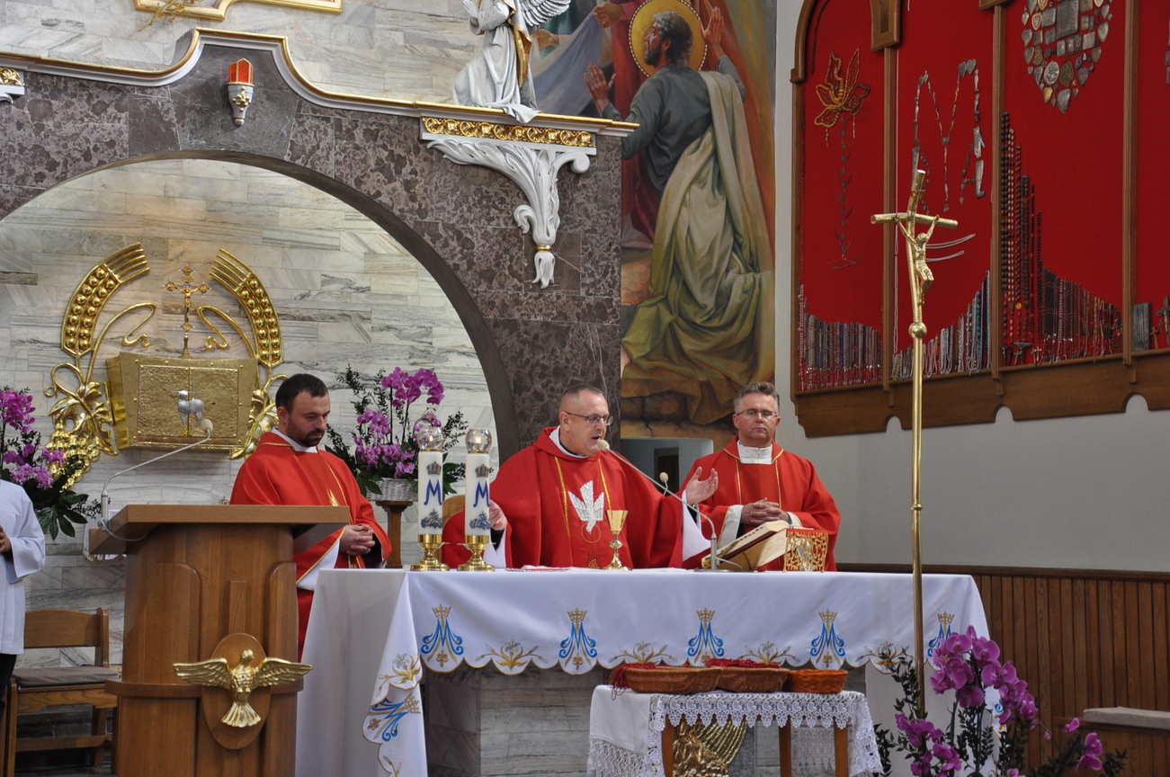 Około godz. 12.00 rozpoczęła się Msza św. pod przewodnictwem ks. Ireneusza Łukanowskiego (opiekuna wspólnot), w czasie której przyjęliśmy Szkaplerz Męki Pańskiej. Po niej była krótka adoracja Najświętszego Sakramentu, a następnie ks. Ireneusz udzielił nam szczególnego Błogosławieństwa.