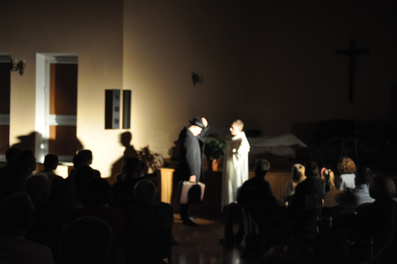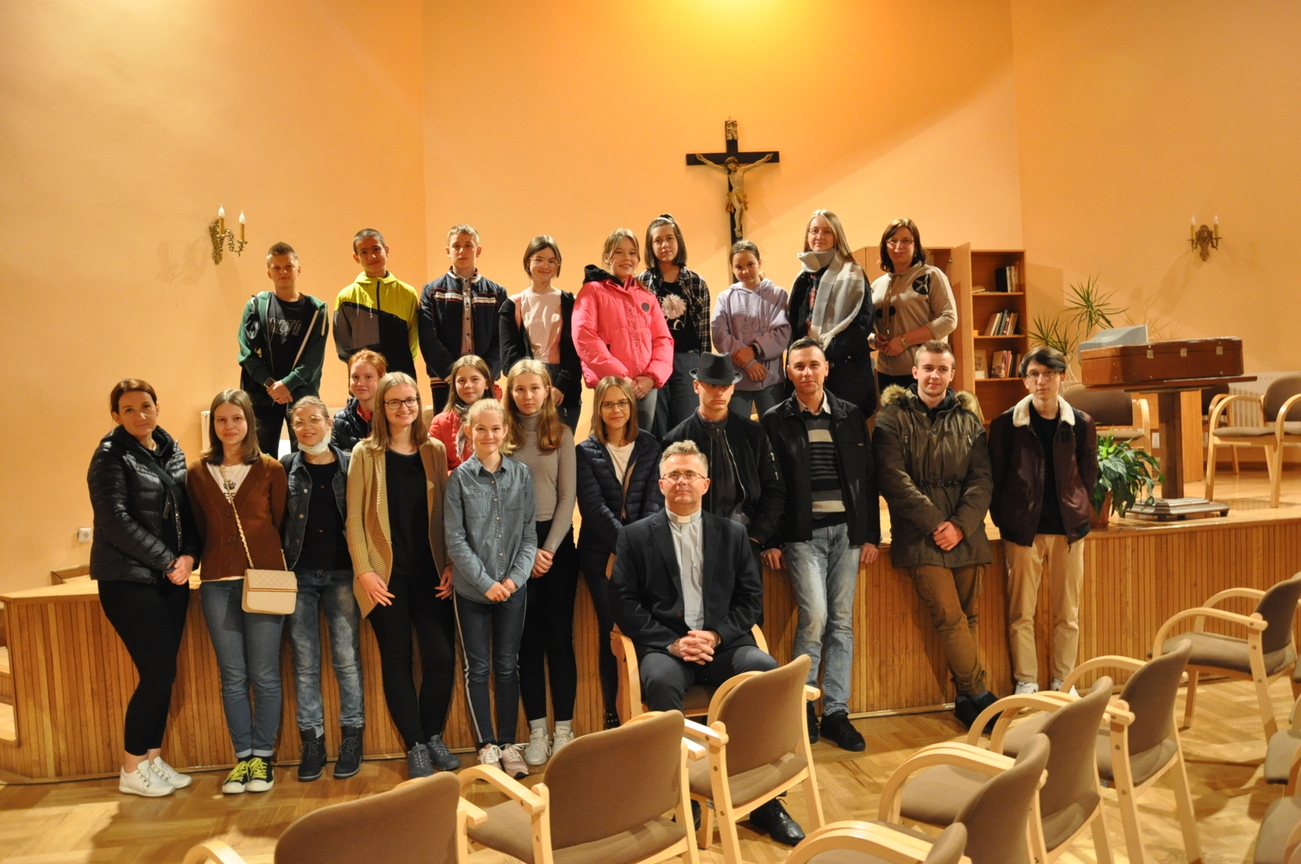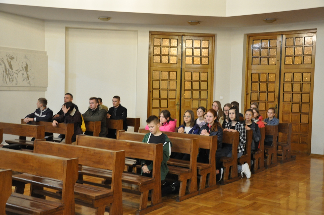 29.10.2021 młodzież razem z ks. Sławkiem wybrała się na sztukę seminaryjną. Ale… Od czego zaczyna się przygody? Od spotkania z Panem Bogiem na Eucharystii , tak też zrobiliśmy. Więc o 16.30 na mszy się spotkaliśmy, aby pomodlić się o udaną podróż. Na miejscu spotkaliśmy kleryka, reżysera, który przygotowywał sztukę o o. Józefie Marii Bocheńskim. W naszym Siedleckim Seminarium jest pewna tradycja, według której klerycy z trzeciego  roku wystawiają sztukę teatralną. Gdy sztuka się zaczęła wszyscy z zainteresowaniem i ciekawością wpatrywali się w bardzo dopracowane sceny odgrywane przez uzdolnionych teatralnie kleryków. Gdy przedstawienie się skończyło zapoznaliśmy się ze scenografią oraz zrobiliśmy sobie pamiątkowe zdjęcie grupowe z aktorami sztuki. Zostaliśmy także oprowadzeni po Seminarium i wstąpiliśmy do kaplicy, aby się pomodlić. W drodze powrotnej zahaczyliśmy o McDonalda na coś do jedzenia (oczywiście, bez mięsa). Wszyscy zadowoleni wróciliśmy do naszych domów