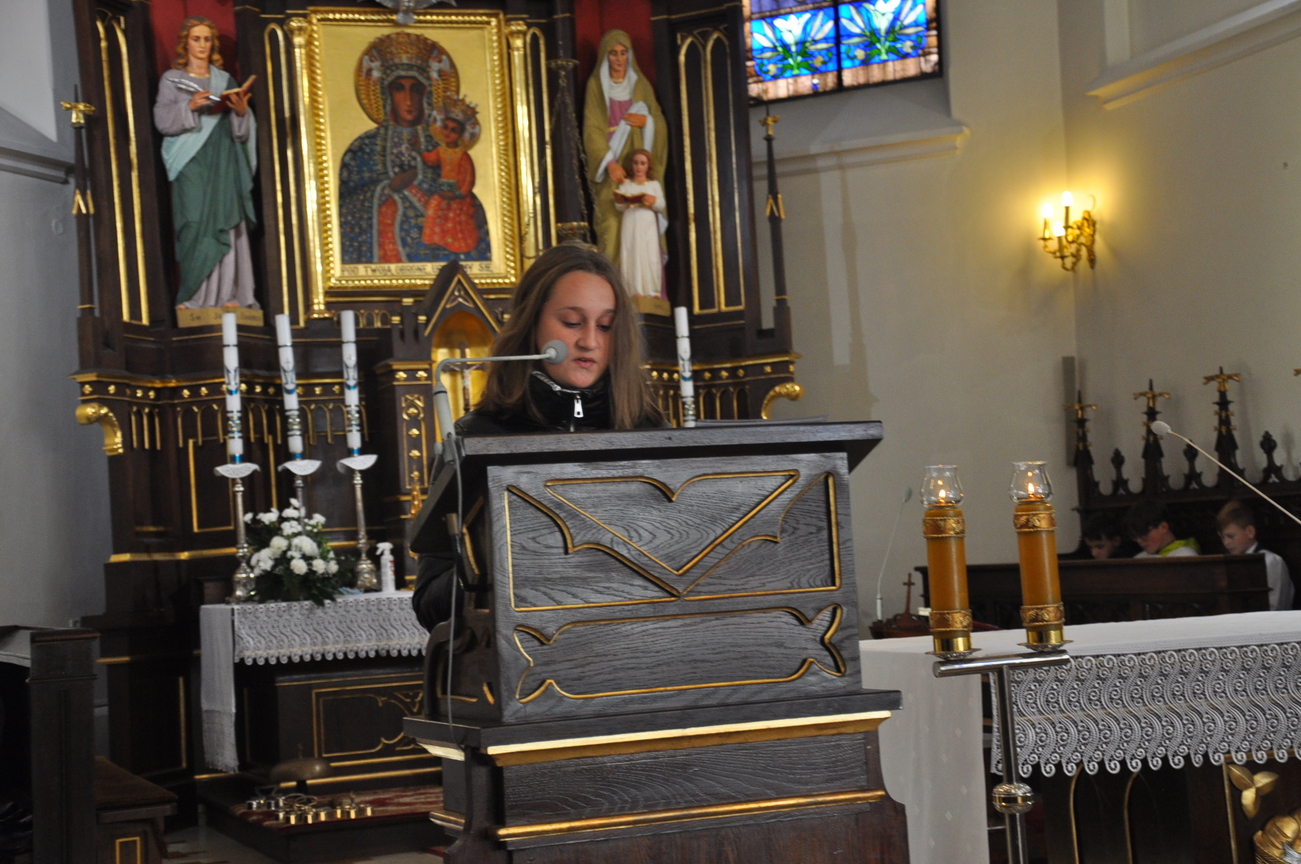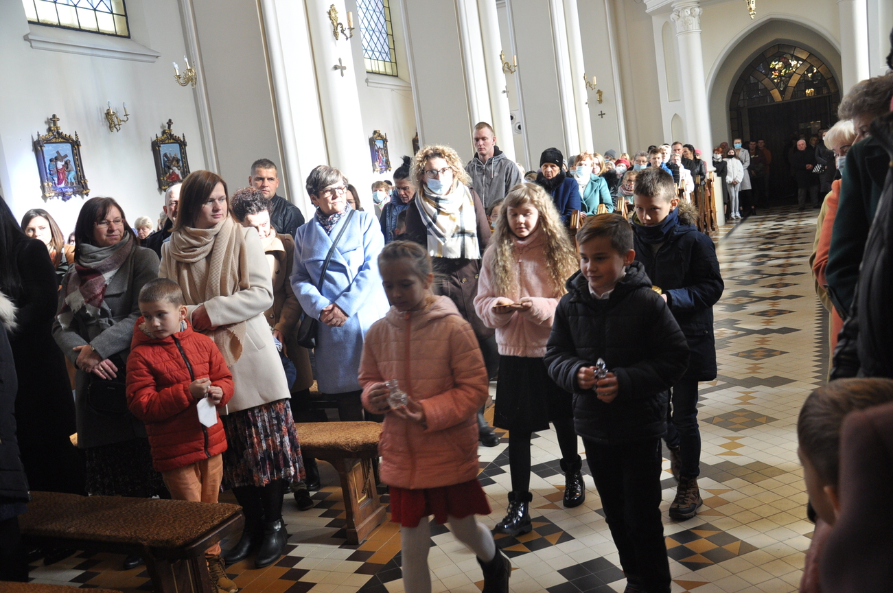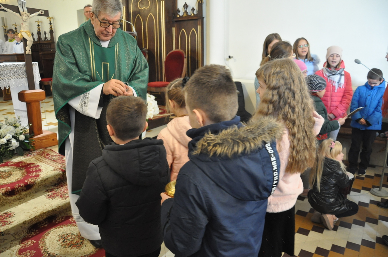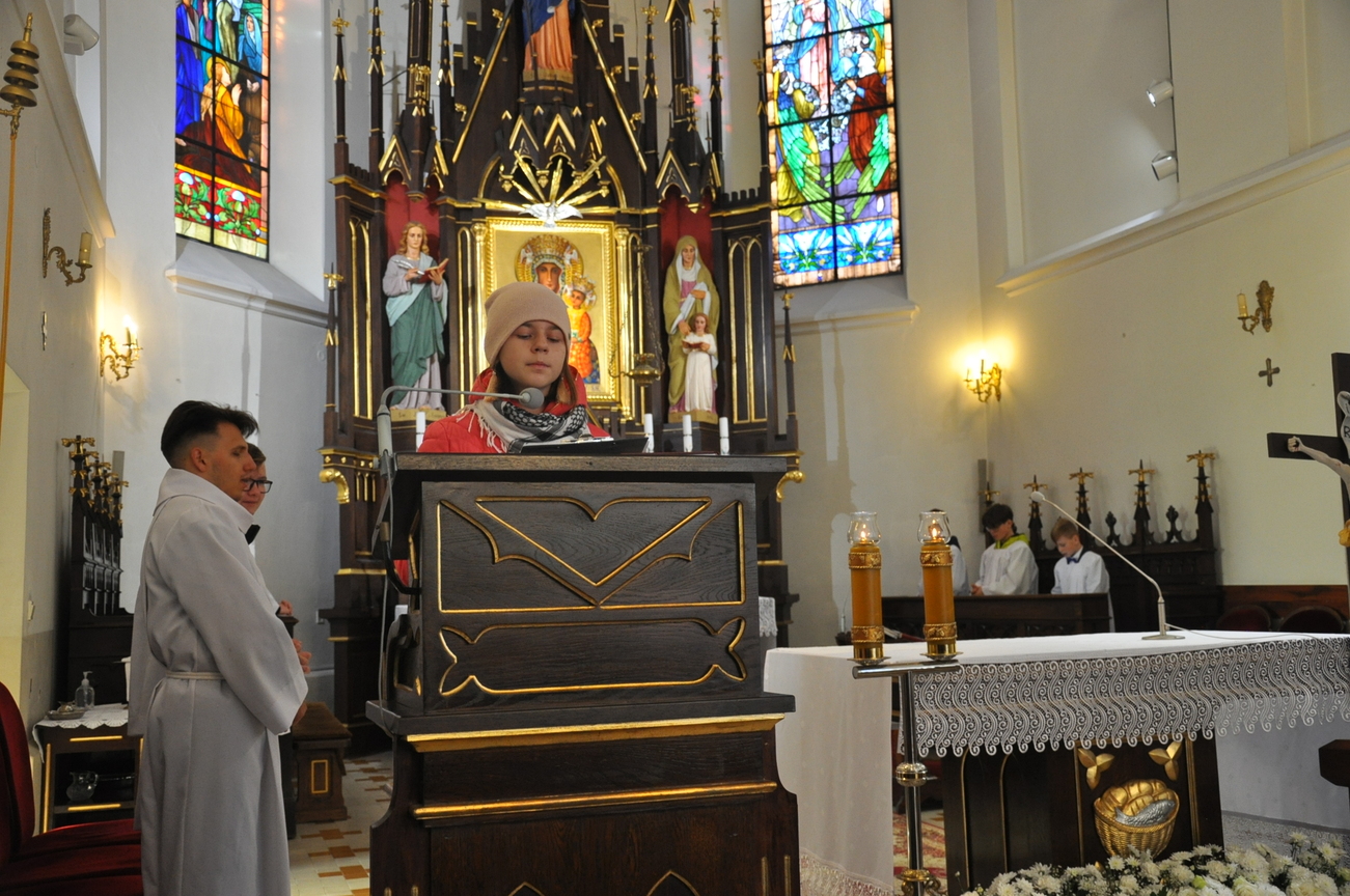 7 listopada na Mszy św. o godz. 10.15 modliliśmy się w intencji księdza wikariusza, który 5 listopada obchodził swoje imieniny. Poprzedzając liturgie przedstawiciele grup parafialnych złożyli najserdeczniejsze życzenia, życząc wiele zdrowia, anielskiej cierpliwości i niegasnącego uśmiechu przeszywającego serce, które zawsze jest gotowe nieść pomoc każdemu. Parafianie zapewnili o swojej modlitwie i prosili Matkę Bożą o opiekę nad księdzem. Po wspólnej Eucharystii było wystawienie Najświętszego Sakramentu i modlitwa różańcowa. Wychodząc z kościoła można było się poczęstować cukierkami imieninowymi u ministrantów. Zawsze to ludzie dają na tacę, a dzisiaj mogli z niej brać … ;-)