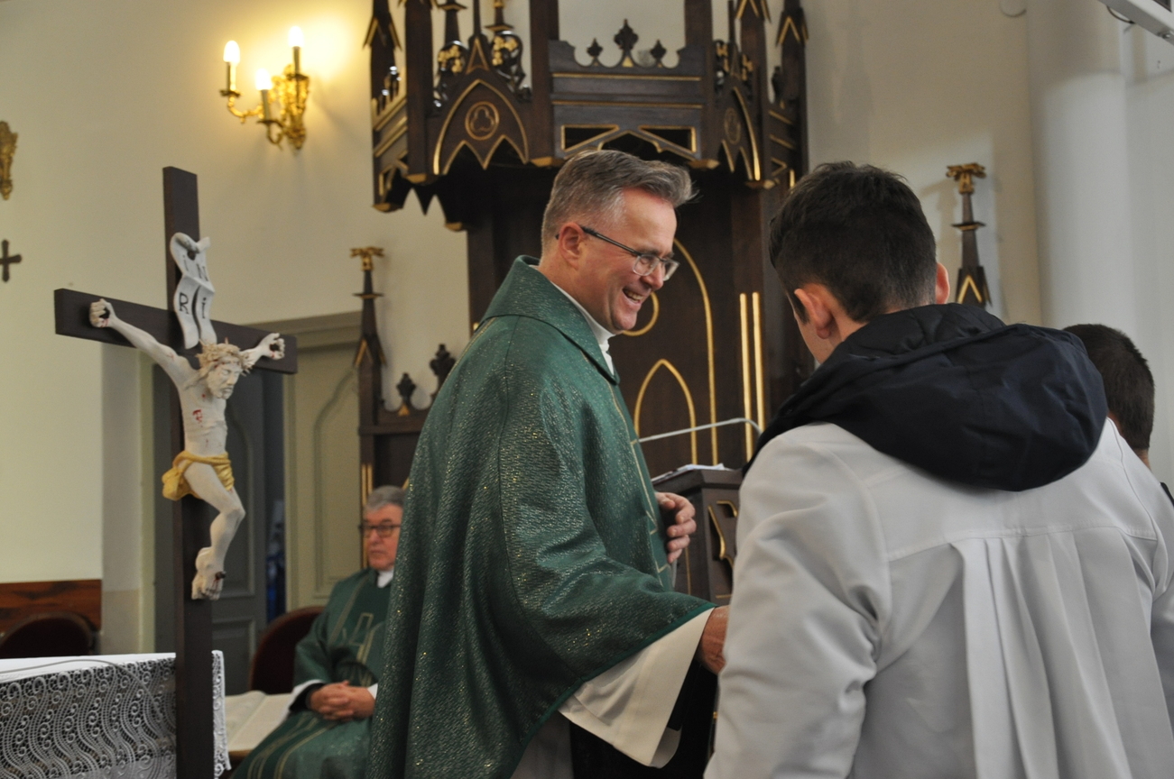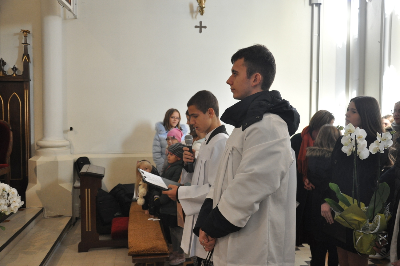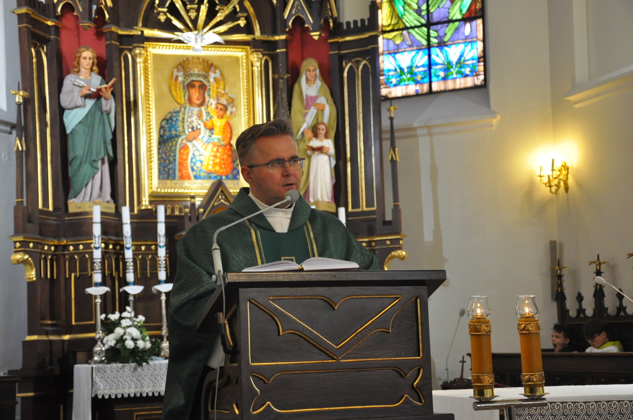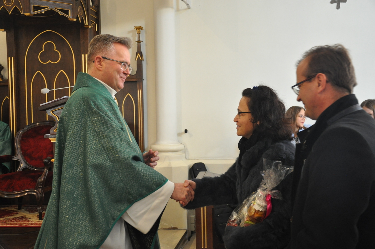 7 listopada na Mszy św. o godz. 10.15 modliliśmy się w intencji księdza wikariusza, który 5 listopada obchodził swoje imieniny. Poprzedzając liturgie przedstawiciele grup parafialnych złożyli najserdeczniejsze życzenia, życząc wiele zdrowia, anielskiej cierpliwości i niegasnącego uśmiechu przeszywającego serce, które zawsze jest gotowe nieść pomoc każdemu. Parafianie zapewnili o swojej modlitwie i prosili Matkę Bożą o opiekę nad księdzem. Po wspólnej Eucharystii było wystawienie Najświętszego Sakramentu i modlitwa różańcowa. Wychodząc z kościoła można było się poczęstować cukierkami imieninowymi u ministrantów. Zawsze to ludzie dają na tacę, a dzisiaj mogli z niej brać … ;-)