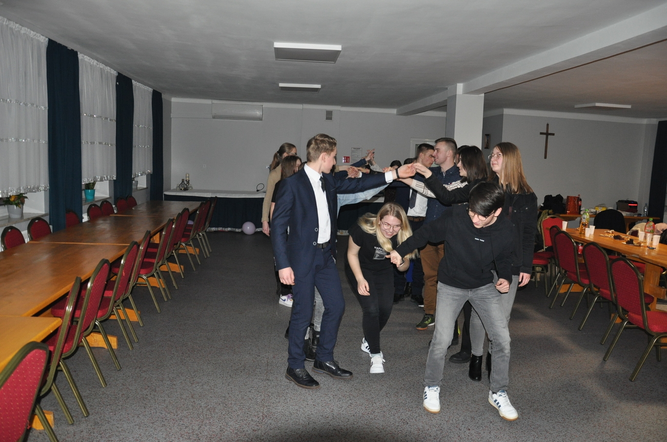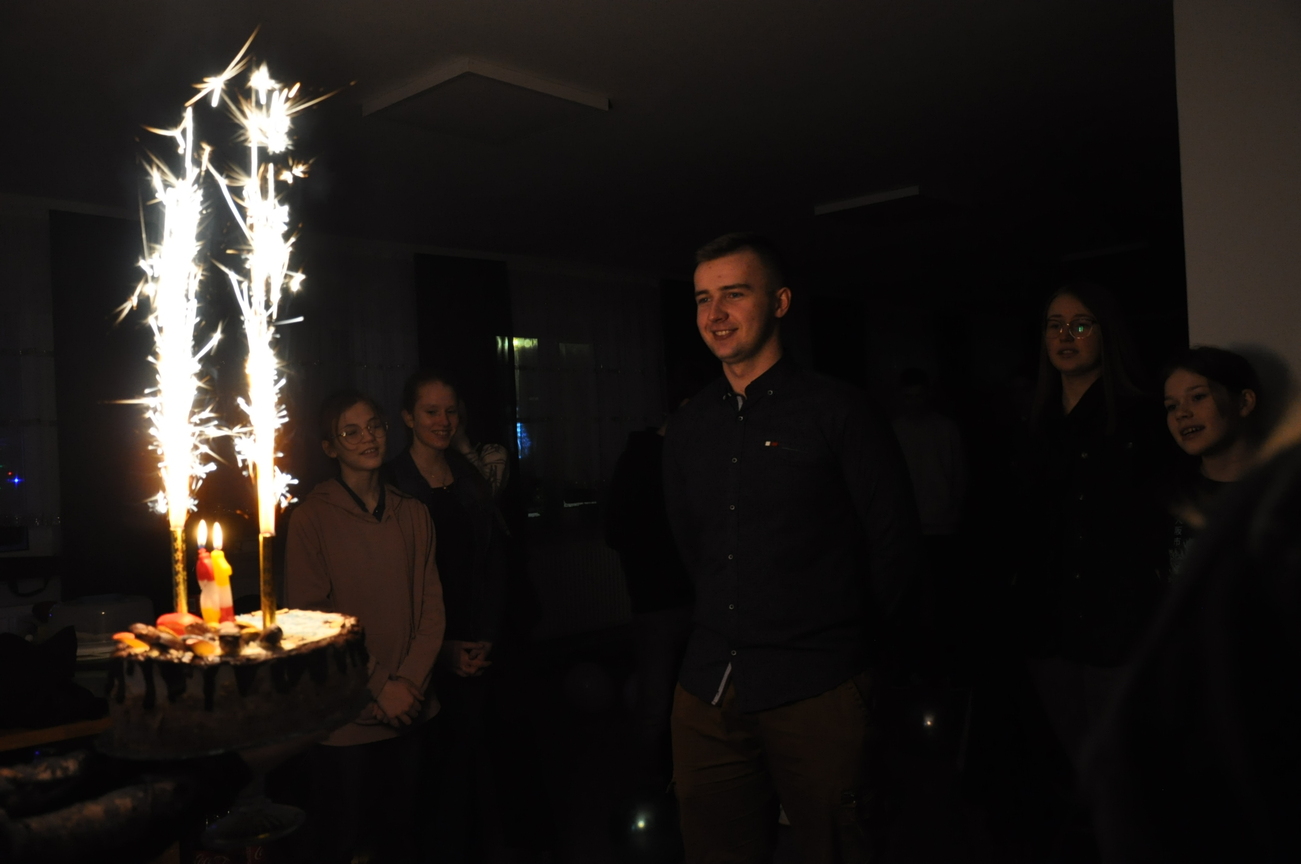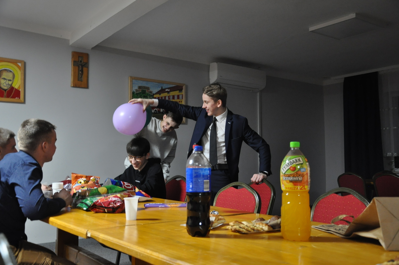 Jak co miesiąc to i teraz 22 stycznia 2022 roku była adoracji Najświętszego Sakramentu prowadzona przez młodzież z Katolickiego Stowarzyszenia, która zakończyła się odśpiewaniem apelu i pieśnią wieczorną. Następnie była chwila relaksu i młodzi świętowali 18 urodziny jednego z członków KSMu. Pani prezes w imieniu wszystkich KSMowiczów złożyła życzenia i podarowała prezent. Nie zabrakło tańców i gier integracyjnych. Z uśmiechem na twarzy świętowaliśmy wkraczanie w dorosłość naszego dobrego kolegi Mateusza. Była to dla niego wspaniała niespodzianka, po której zostały już tylko wspomnienia. Spotkanie tradycyjne rozpoczęliśmy i zakończyliśmy wspólną modlitwą.