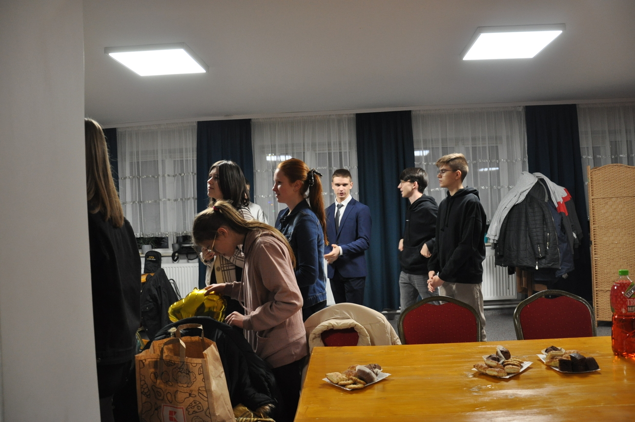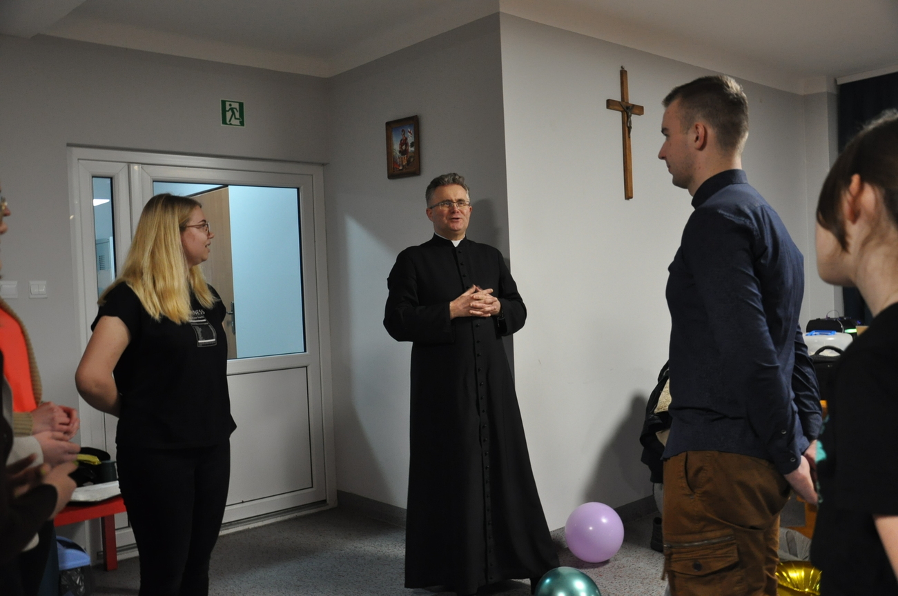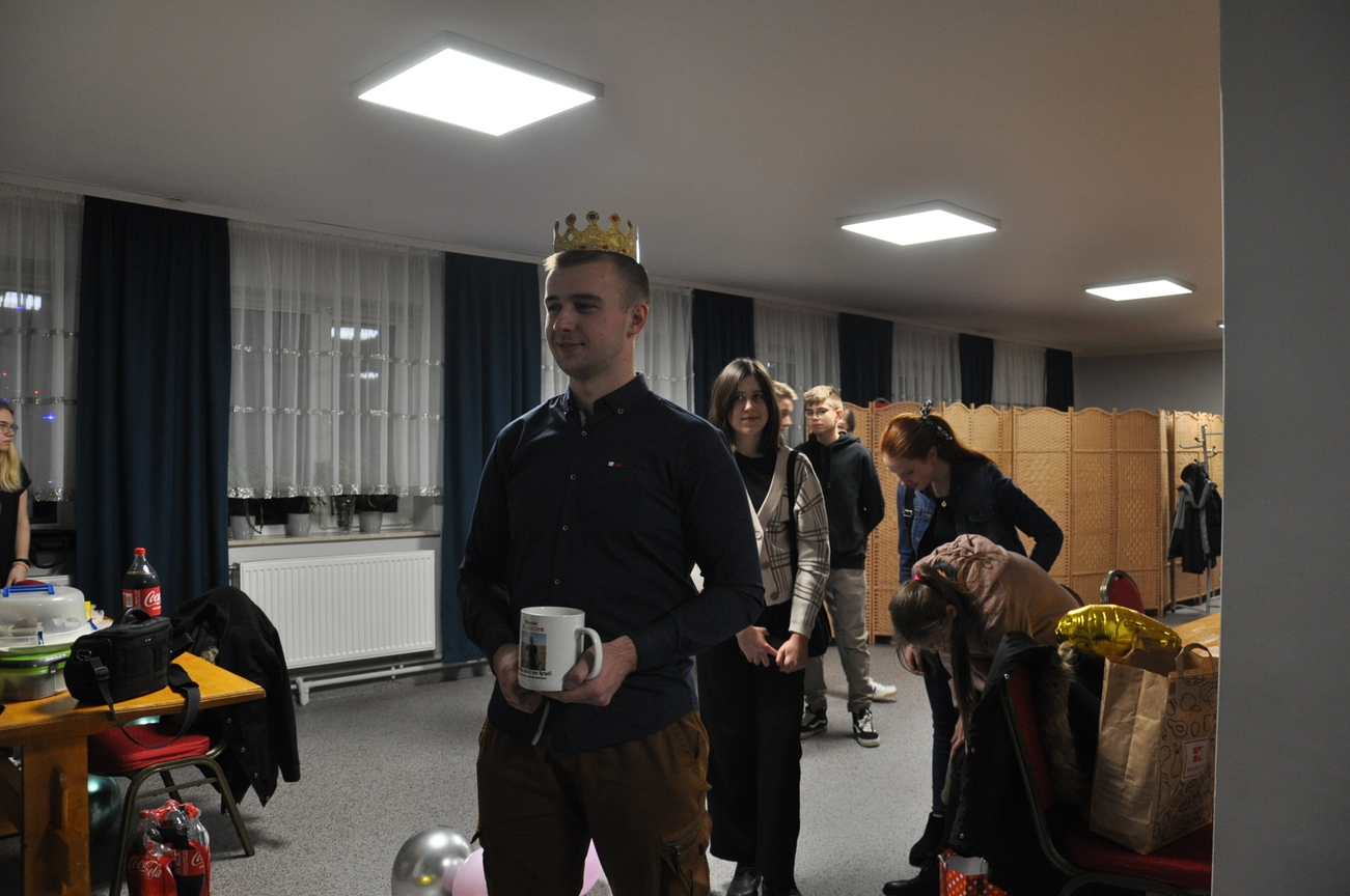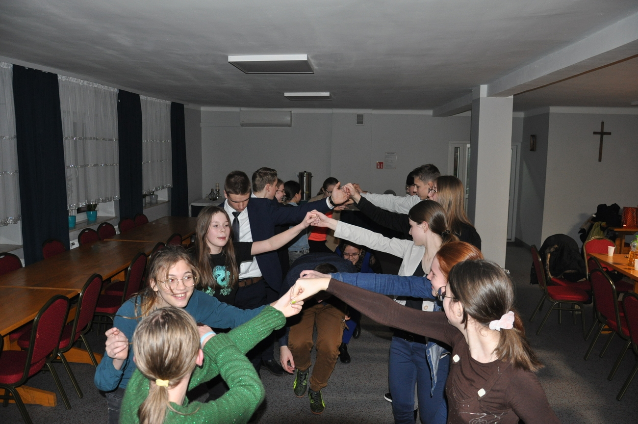 Jak co miesiąc to i teraz 22 stycznia 2022 roku była adoracji Najświętszego Sakramentu prowadzona przez młodzież z Katolickiego Stowarzyszenia, która zakończyła się odśpiewaniem apelu i pieśnią wieczorną. Następnie była chwila relaksu i młodzi świętowali 18 urodziny jednego z członków KSMu. Pani prezes w imieniu wszystkich KSMowiczów złożyła życzenia i podarowała prezent. Nie zabrakło tańców i gier integracyjnych. Z uśmiechem na twarzy świętowaliśmy wkraczanie w dorosłość naszego dobrego kolegi Mateusza. Była to dla niego wspaniała niespodzianka, po której zostały już tylko wspomnienia. Spotkanie tradycyjne rozpoczęliśmy i zakończyliśmy wspólną modlitwą.