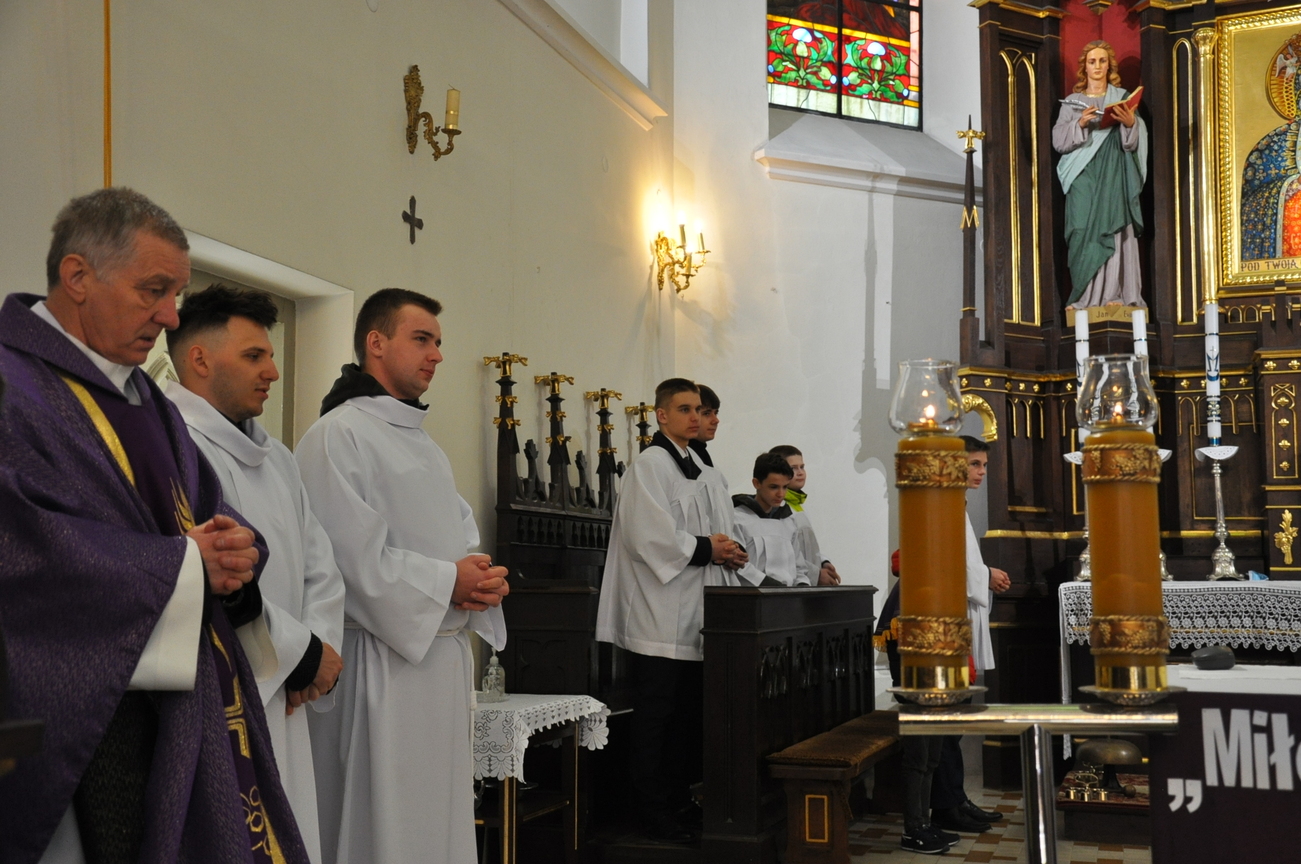 20 marca podczas Mszy św. o godz. 10.15 modliliśmy się o zdrowie, Boże Błogosławieństwo i potrzebne łaski dla ks. Proboszcza Zbigniewa Daniluka z okazji Jego imienin. Młodzież z KSM-u zadbała o oprawę Liturgii. Przedstawiciele parafian złożyli najserdeczniejsze życzenia. Po Mszy odbyła się śpiewana droga krzyżowa. Zachęcamy i serdecznie zapraszamy na nabożeństwa wielkopostne w piątki o godz. 16.30 – droga krzyżowa i w niedzielę śpiewana wersja po Mszy o godz. 10.15, natomiast gorzkie żale w niedzielę po Mszy św. o godz. 12.00.