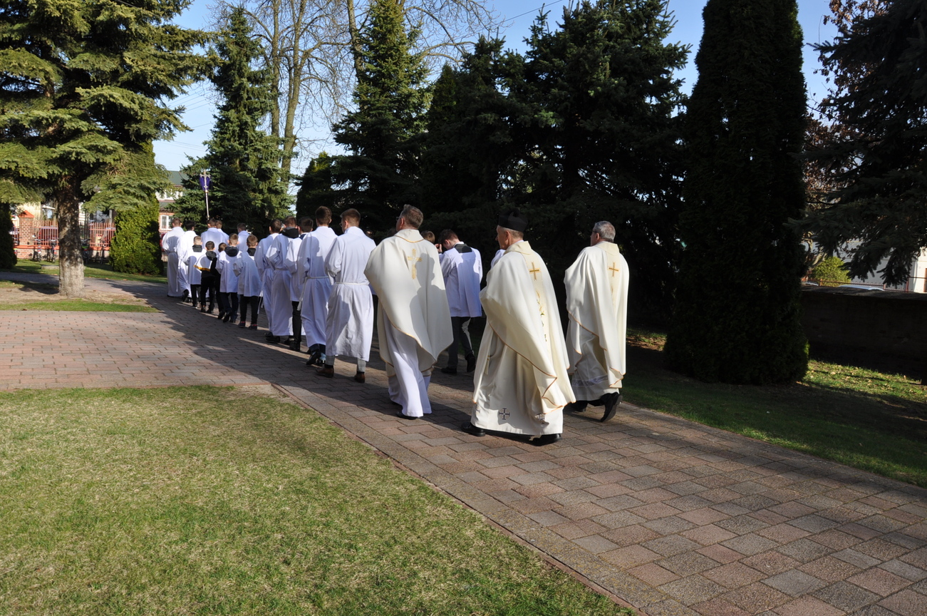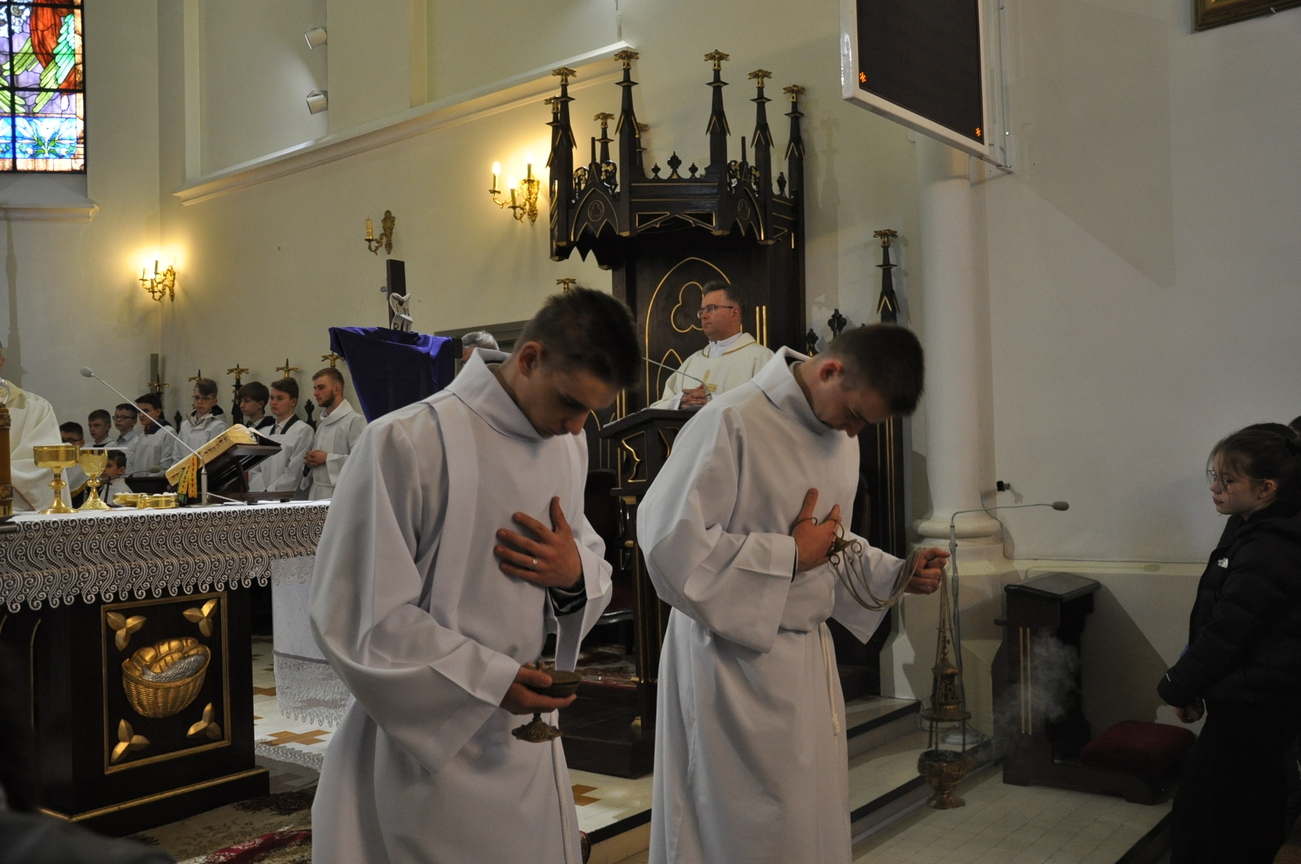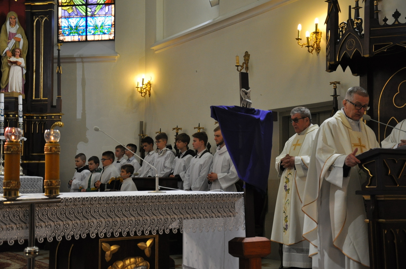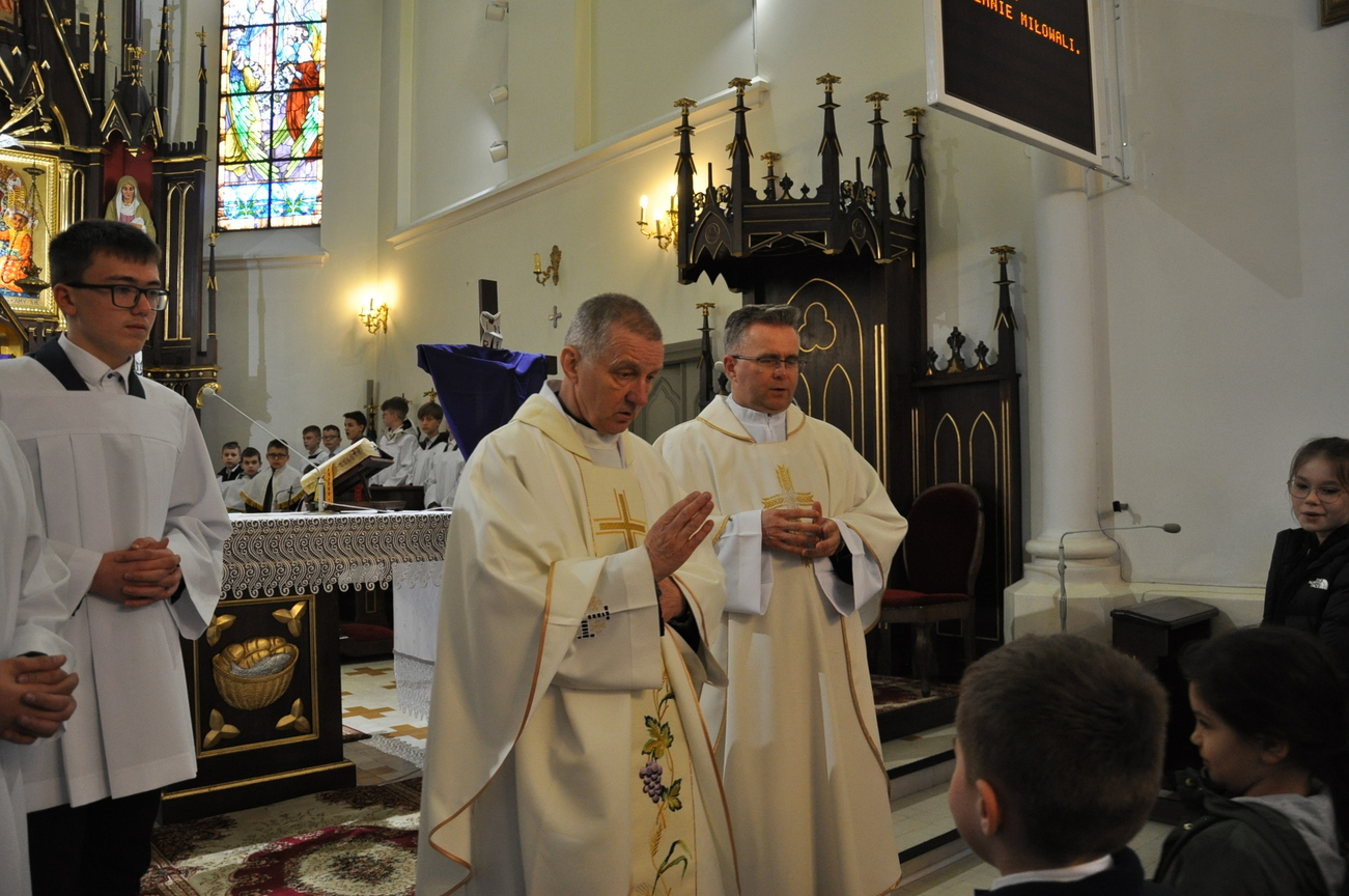 Dnia 14 kwietnia rozpoczęliśmy obchody Triduum Paschalnego. Wielki Czwartek przypomina Nam ustanowienie Eucharystii i  sakramentu kapłaństwa przez Jezusa Chrystusa. W dzisiejszej Ewangelii słyszymy o tym jak Pan Jezus obmywa nogi swoich uczniów, co jest znakiem pokornej miłości do bliźniego. Delegacja z Naszej parafii złożyła życzenia i podziękowania za posługę księżom posługującym w Naszym parafialnym kościele.