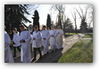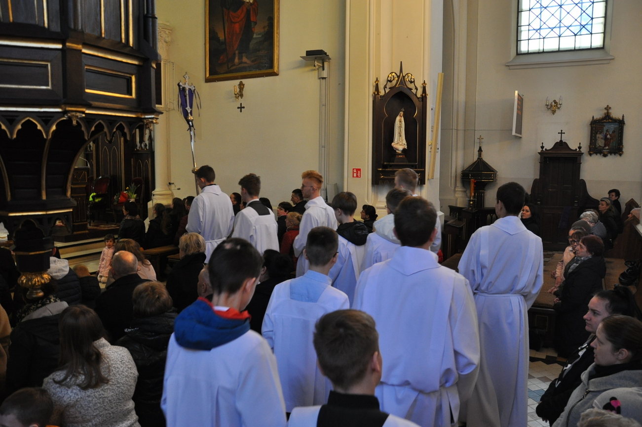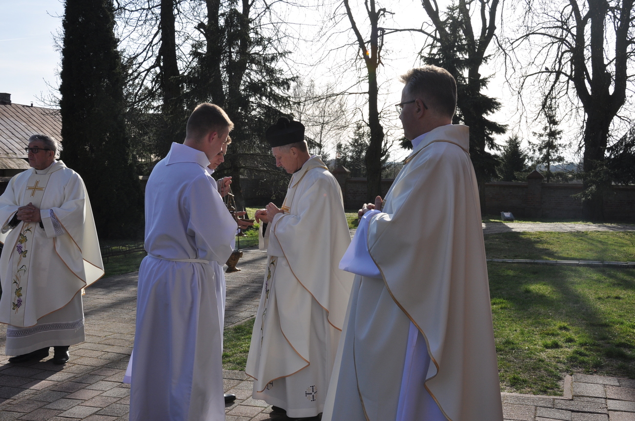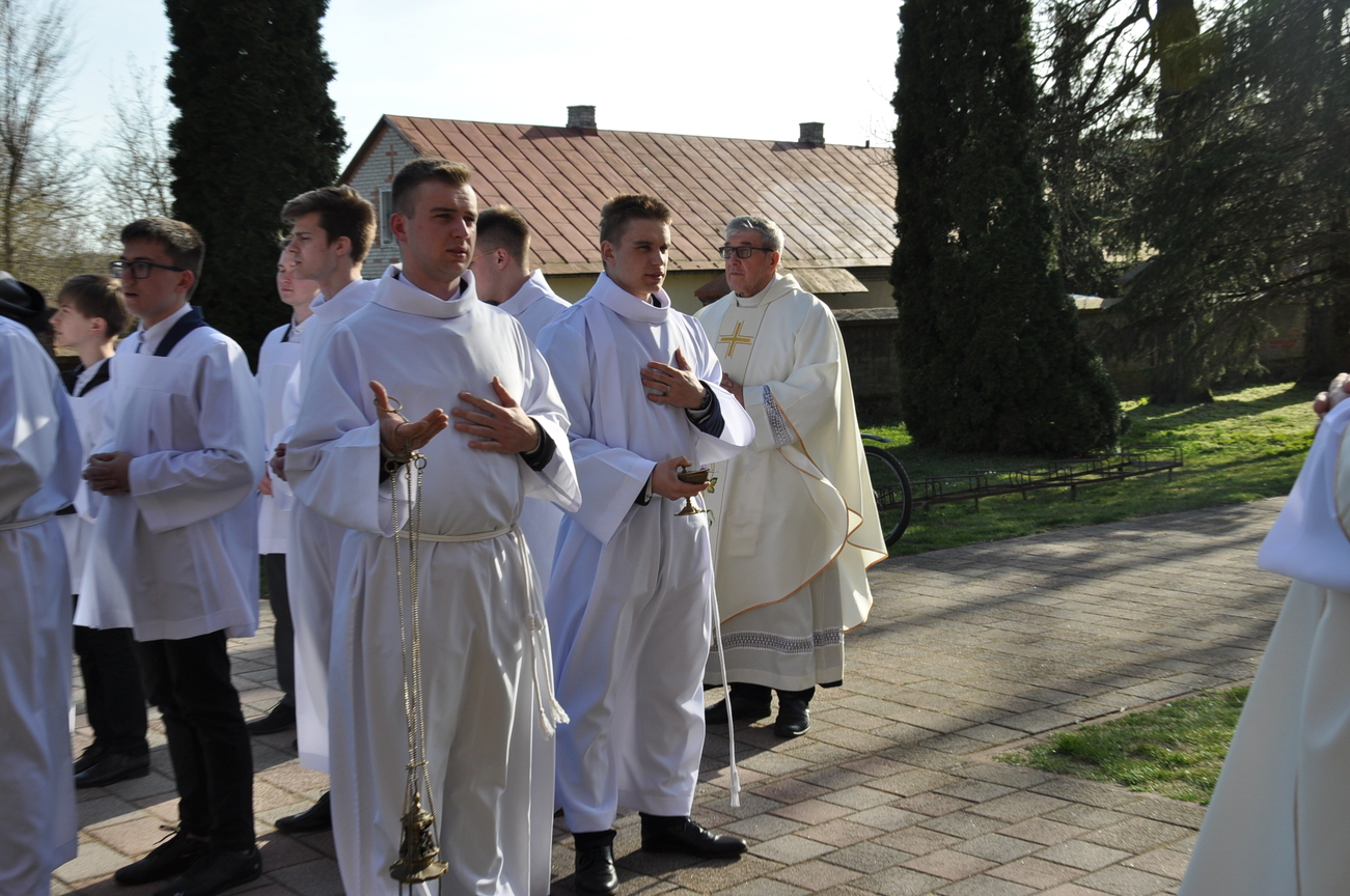Dnia 14 kwietnia rozpoczęliśmy obchody Triduum Paschalnego. Wielki Czwartek przypomina Nam ustanowienie Eucharystii i  sakramentu kapłaństwa przez Jezusa Chrystusa. W dzisiejszej Ewangelii słyszymy o tym jak Pan Jezus obmywa nogi swoich uczniów, co jest znakiem pokornej miłości do bliźniego. Delegacja z Naszej parafii złożyła życzenia i podziękowania za posługę księżom posługującym w Naszym parafialnym kościele.