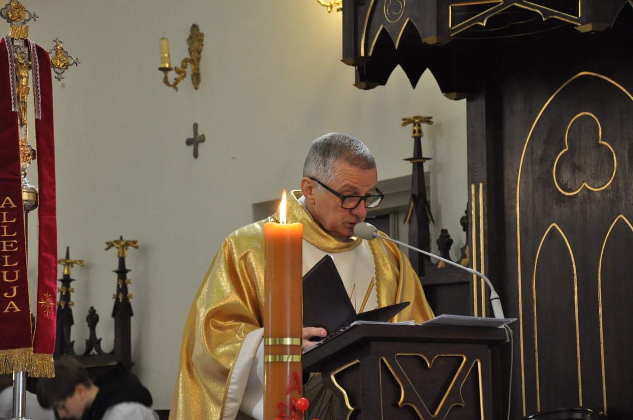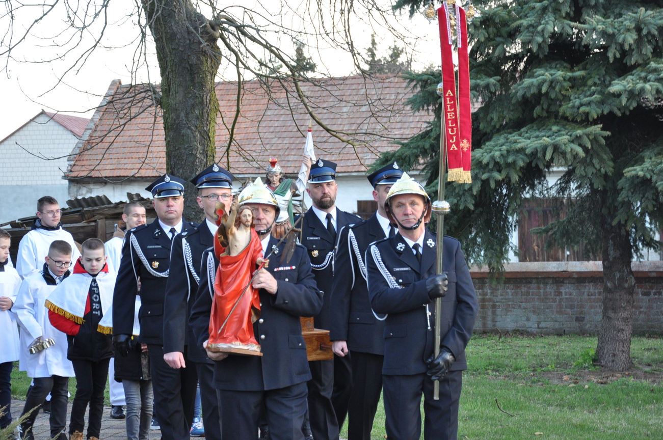 Tymi słowami rozpoczęła się dzisiaj o 6 rano uroczysta procesja rezurekcyjna w naszej parafii. Pan Bóg pobłogosławił nas dobrą pogodą tak, że liczne feretrony, chorągwie i figury uświetniały procesję. Nie zabrakło również dzieci.  Udział wzięli też druhowie i druhny z jednostek OSP. Mszy Świętej przewodniczył ks. proboszcz Zbigniew Daniluk, który wygłosił dającą do myślenia homilię i podziękował parafianom za świadectwo wiary wynikające z licznego udziału w uroczystościach Triduum Paschalnego. Niech radość Zmartwychwstania trwa w nas i nie przemija.
