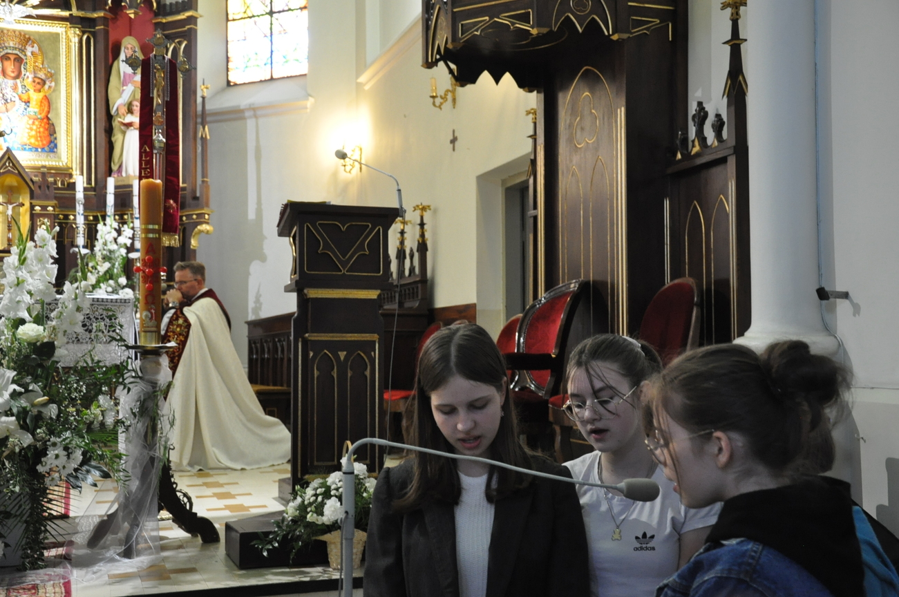 20 maja (w piątek) odbyła się Adoracja Najświętszego Sakramentu. Poprzedzona była Mszą Świętą oraz nabożeństwem majowym z udziałem dzieci komunijnych, obchodzących swój Biały Tydzień. W trakcie adoracji prowadzonej przez KSM modliliśmy się w intencji ósmoklasistów o światło Ducha Świętego na czas zbliżających się egzaminów, pomyślne wyniki oraz właściwy wybór dalszej ścieżki życiowej.