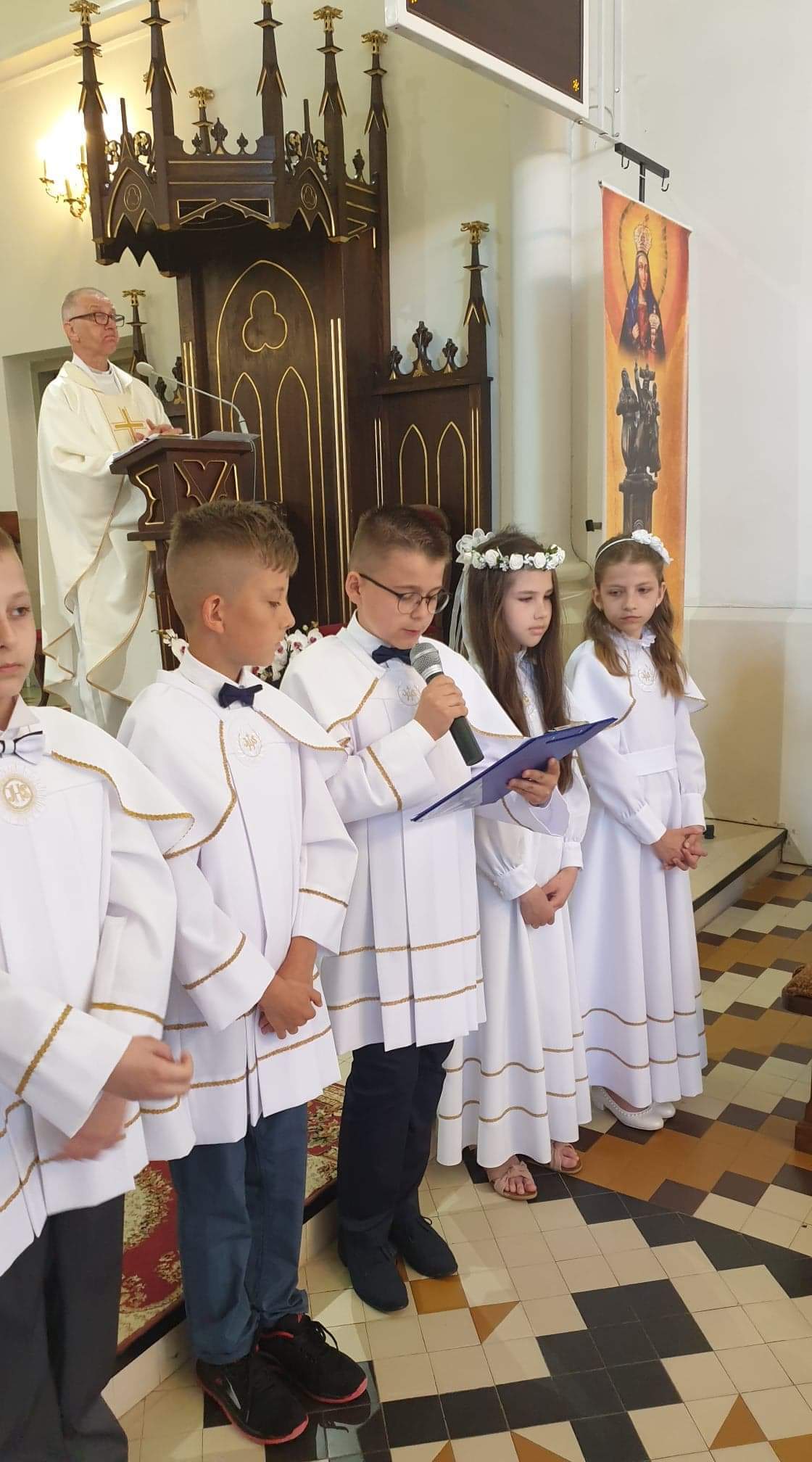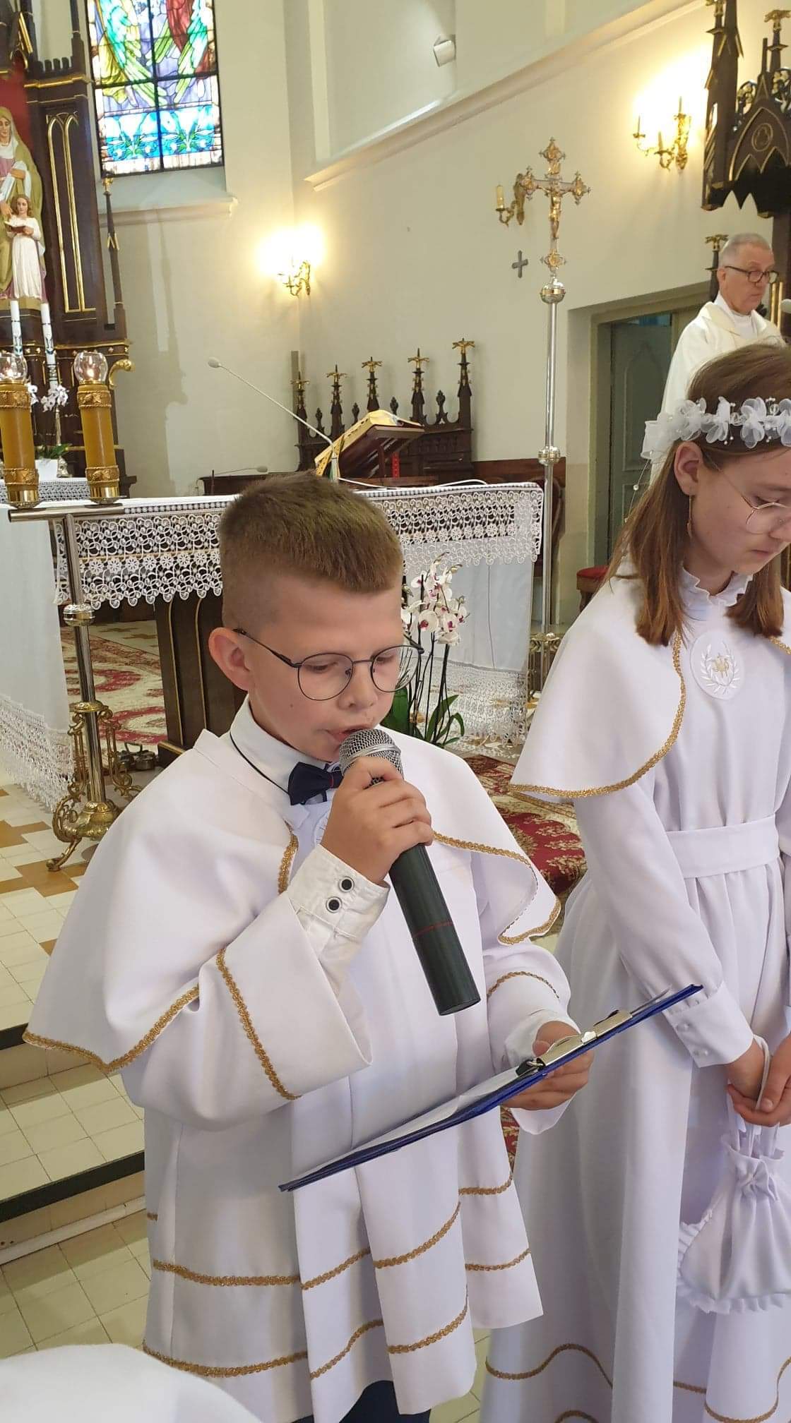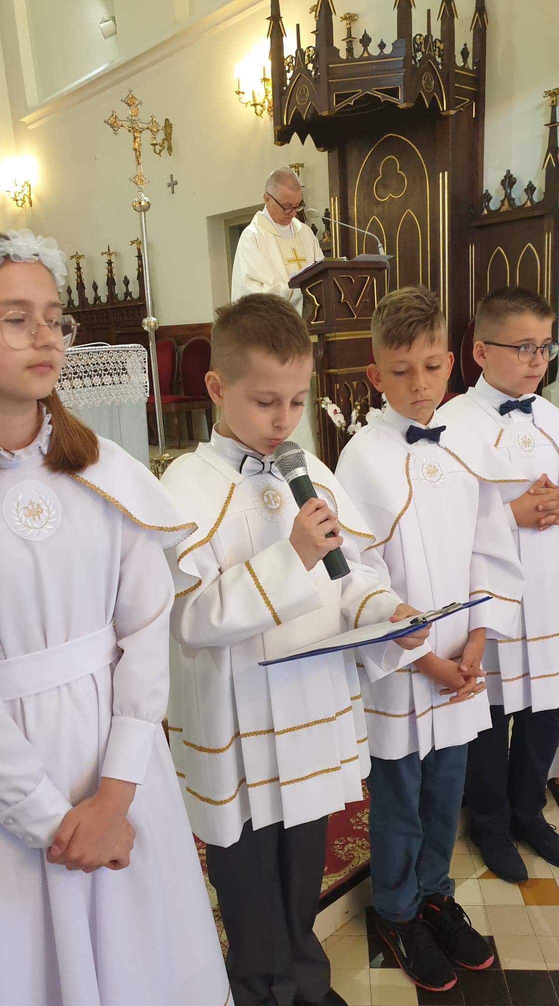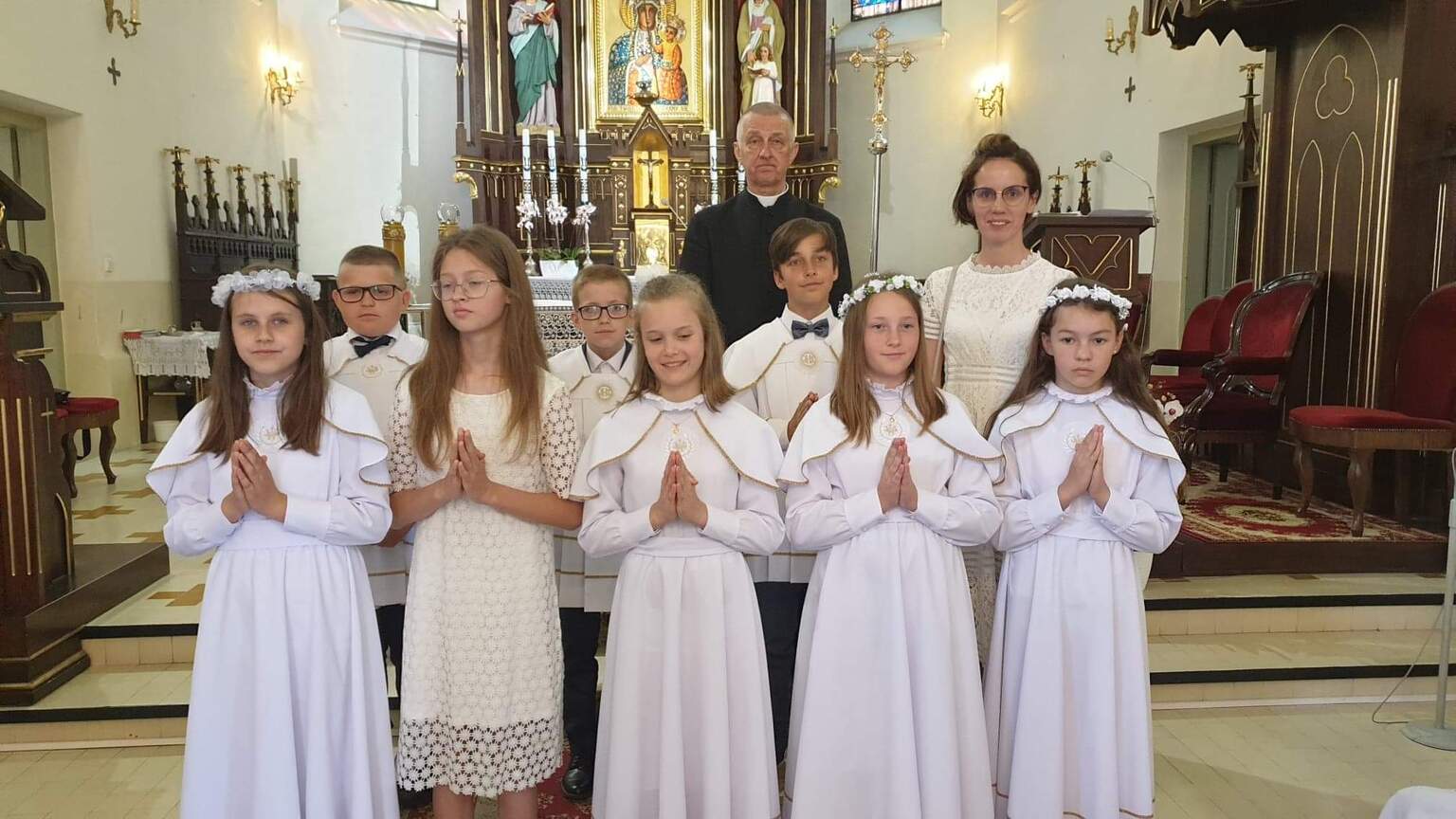 12 czerwca w naszej parafii, dzieci klasy czwartej przeżywały swoją rocznicę Pierwszej Komunii Świętej. Mszy Św. przewodniczył ks. Proboszcz Zbigniew. Na nowo odżyły wspomnienia i radość ze spotkania z Jezusem Żywym i Prawdziwym. Swoją pielgrzymkę dziękczynną odbyły również do Niepokalanowa.