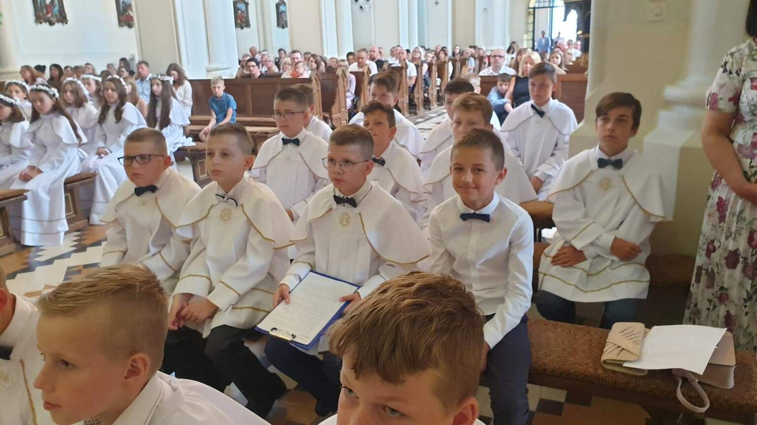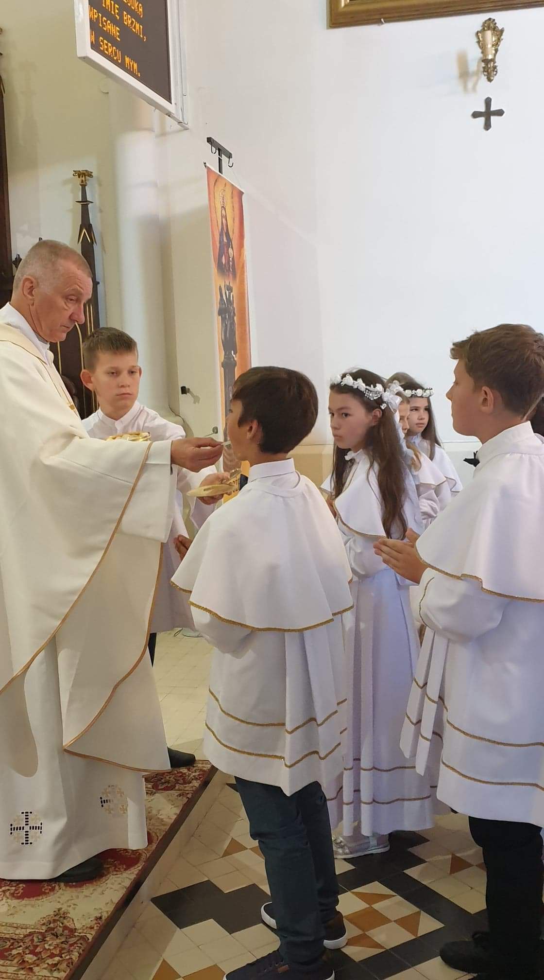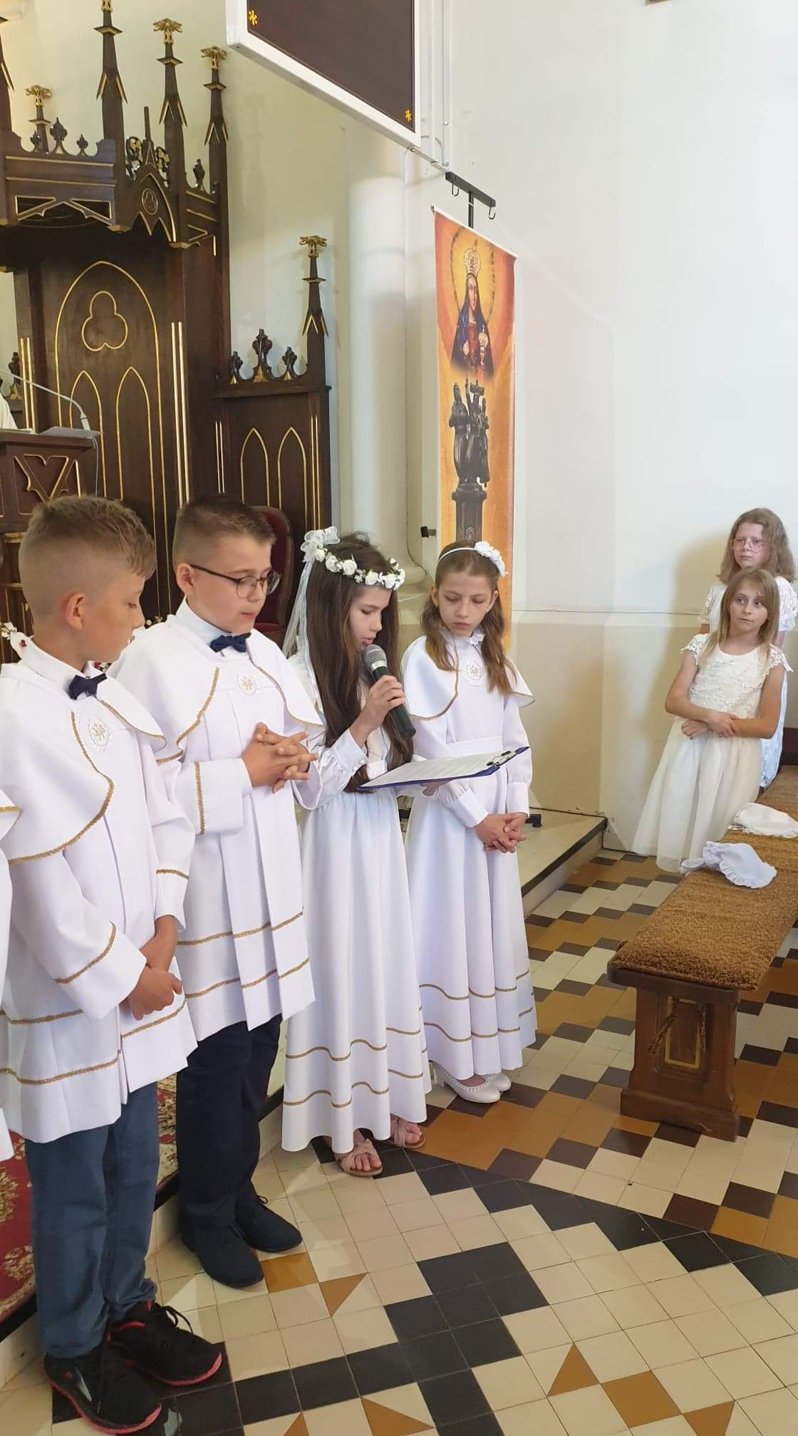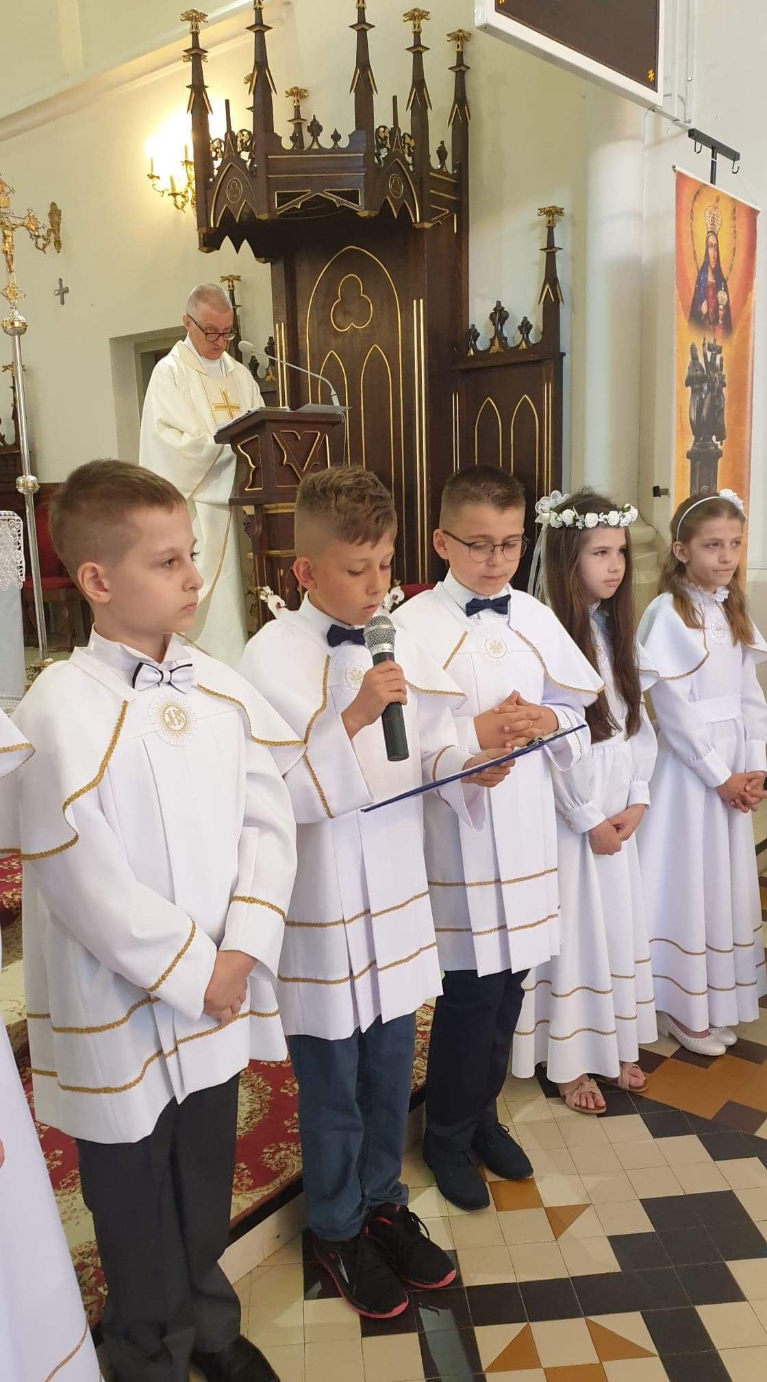 12 czerwca w naszej parafii, dzieci klasy czwartej przeżywały swoją rocznicę Pierwszej Komunii Świętej. Mszy Św. przewodniczył ks. Proboszcz Zbigniew. Na nowo odżyły wspomnienia i radość ze spotkania z Jezusem Żywym i Prawdziwym. Swoją pielgrzymkę dziękczynną odbyły również do Niepokalanowa.
