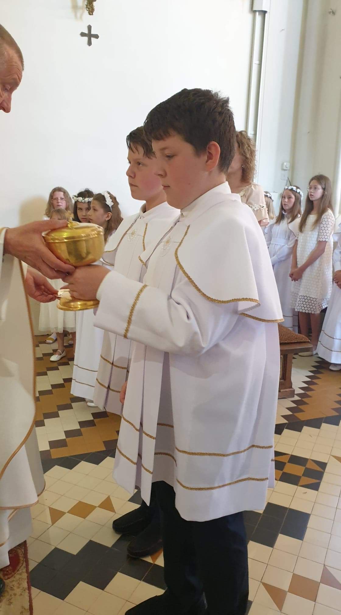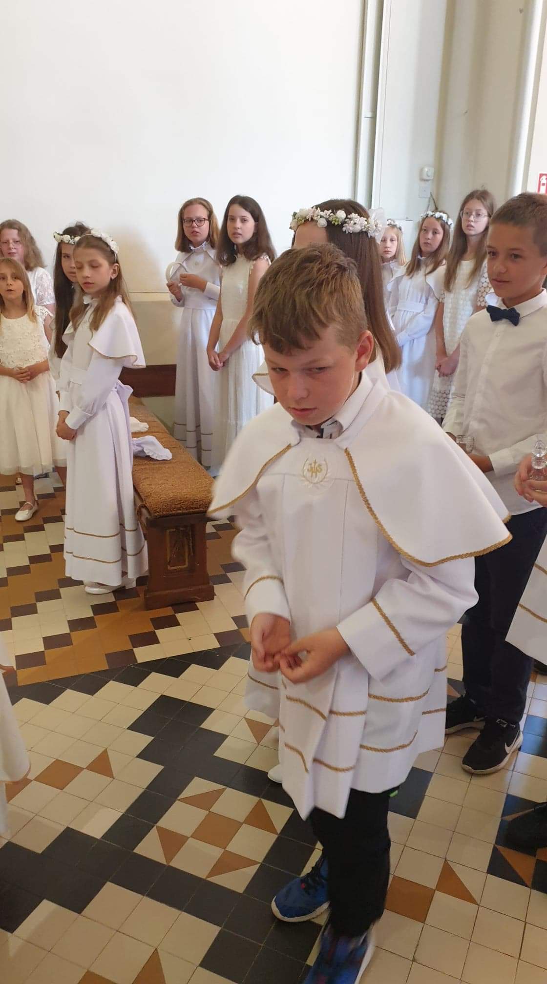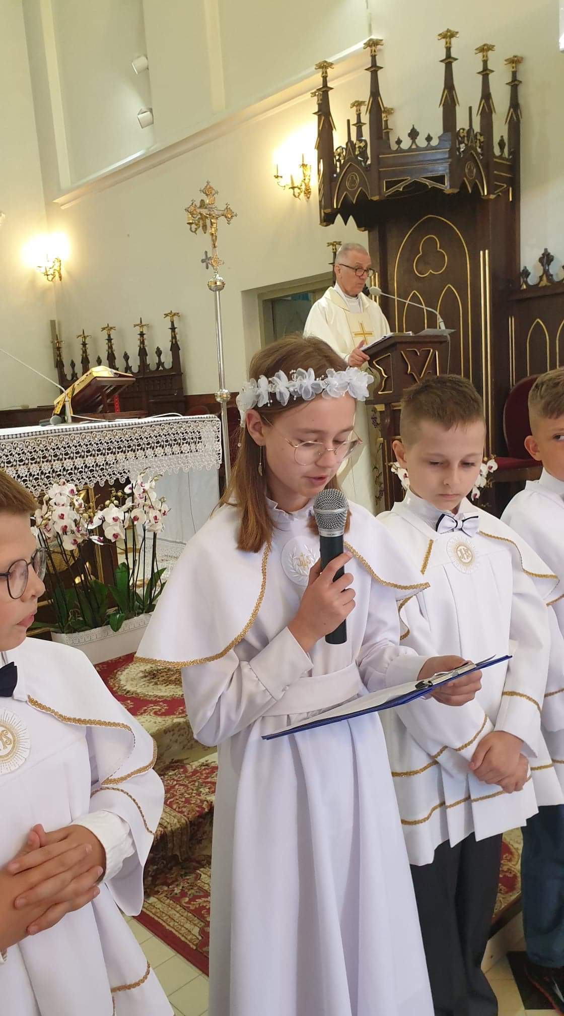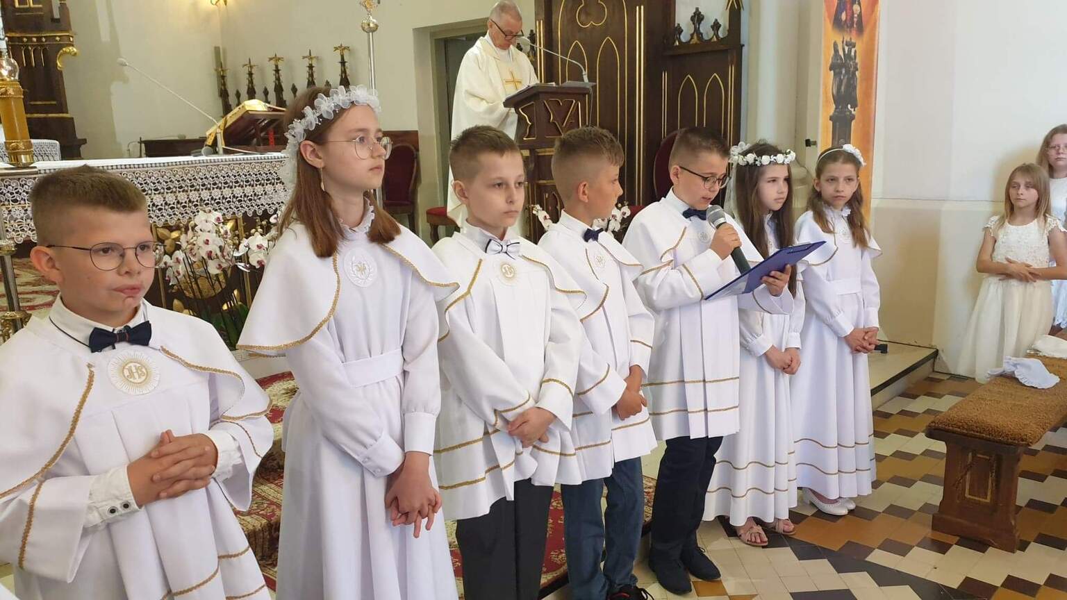 12 czerwca w naszej parafii, dzieci klasy czwartej przeżywały swoją rocznicę Pierwszej Komunii Świętej. Mszy Św. przewodniczył ks. Proboszcz Zbigniew. Na nowo odżyły wspomnienia i radość ze spotkania z Jezusem Żywym i Prawdziwym. Swoją pielgrzymkę dziękczynną odbyły również do Niepokalanowa.