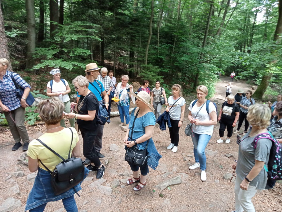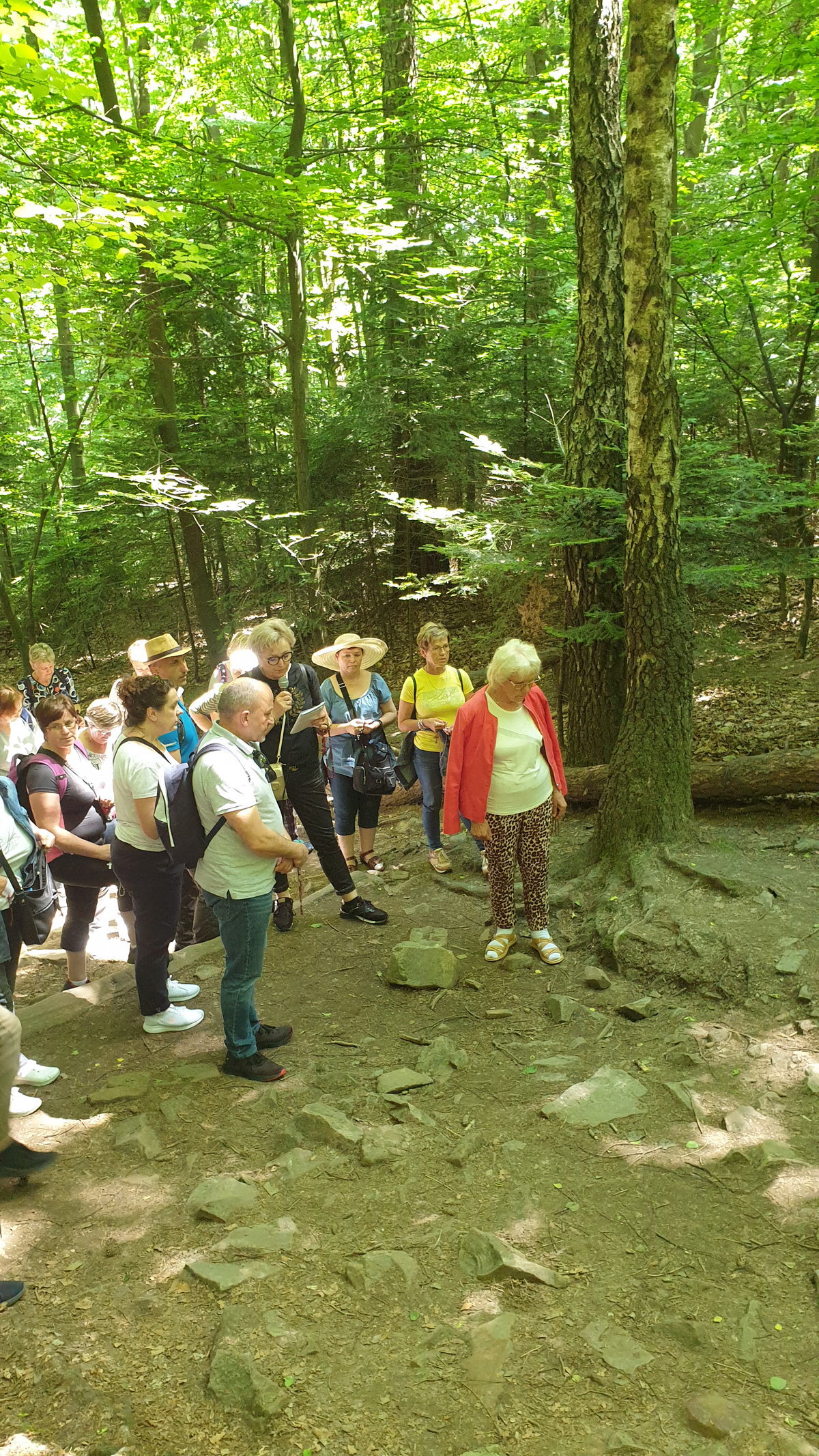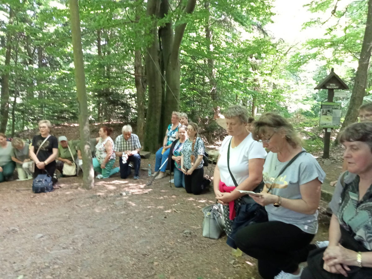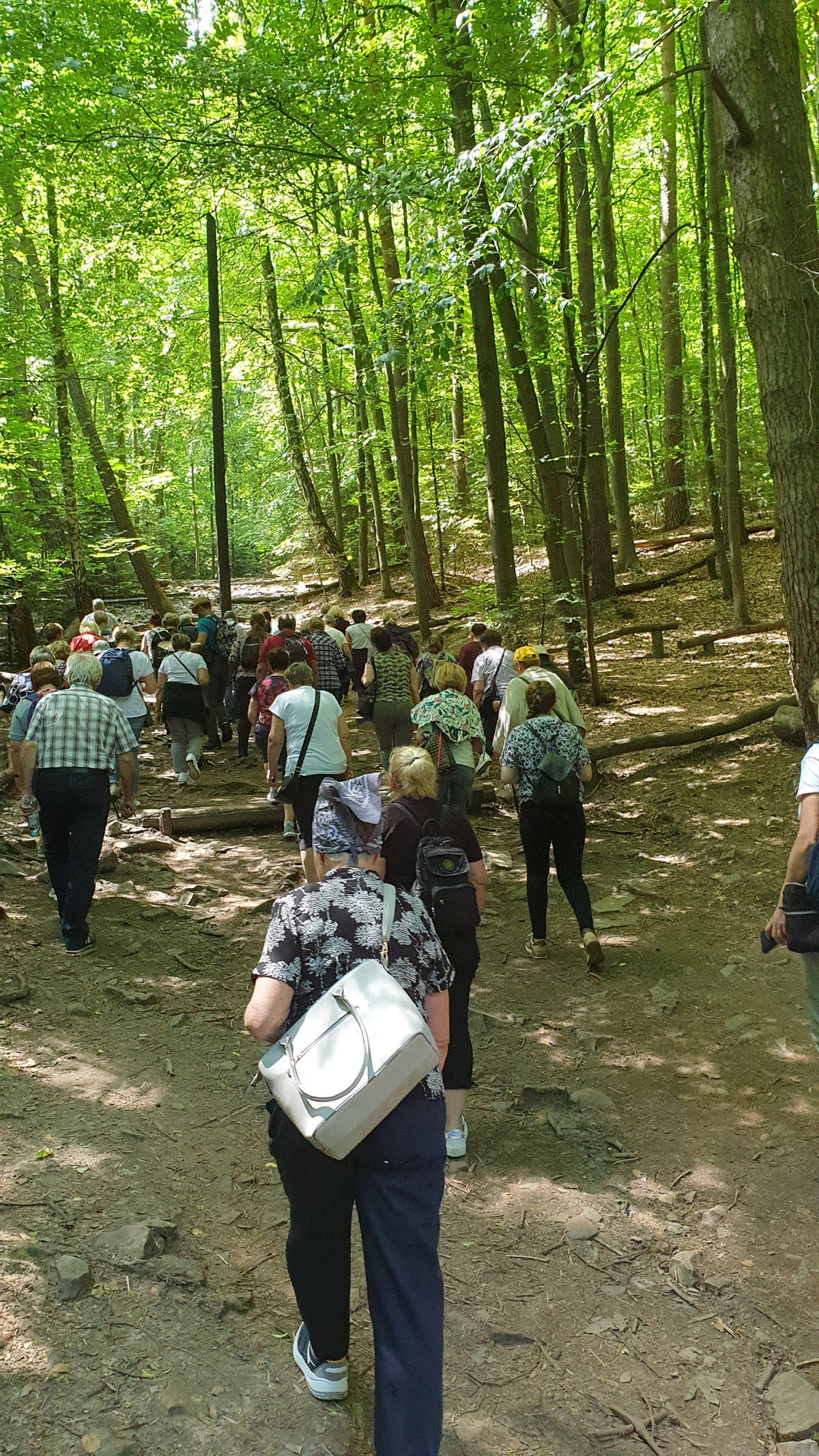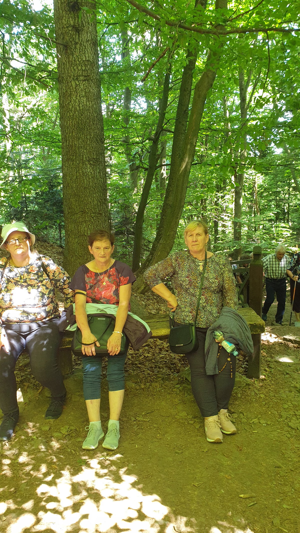 W dniu 11 czerwca odbyła się pielgrzymka do Kałkowa i na Święty Krzyż. Była to pielgrzymka dziękczynna za dar beatyfikacji krzewicielki Żywego Różańca Pauliny Jaricot. W programie było nie tylko zwiedzanie, ale i piesza wędrówka na Święty Krzyż, trudnym, kamienistym szlakiem. Trasa pokonana została przy odmówieniu różańca z Pauliną Jaricot i odprawieniu Drogi Krzyżowej. Siostry i bracia świetnie sobie poradzili, prawdopodobnie też dlatego, że wyprawę poprzedził jak zwykle bardzo dobry obiad w Kałkowie. Wyrażamy wielką wdzięczność ks. Kanonikowie Mieczysławowi za Jego obecność i duchowe wsparcie, za rekolekcje w drodze, ale i dobry żart. Dziękujemy naszej Zelatorce parafialnej, p. Beacie Gajownik za pomysł dziękczynnej pielgrzymki. Dziękujemy naszym kapłanom, naszemu proboszczowi ks. Zbigniewowi, który zawsze nas wspiera. Tak więc, do następnej pielgrzymki. :-)