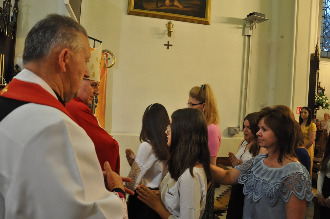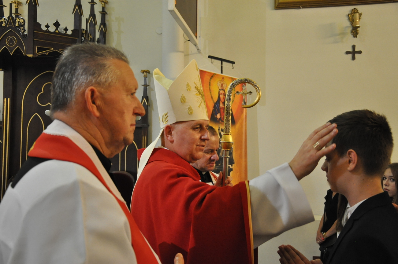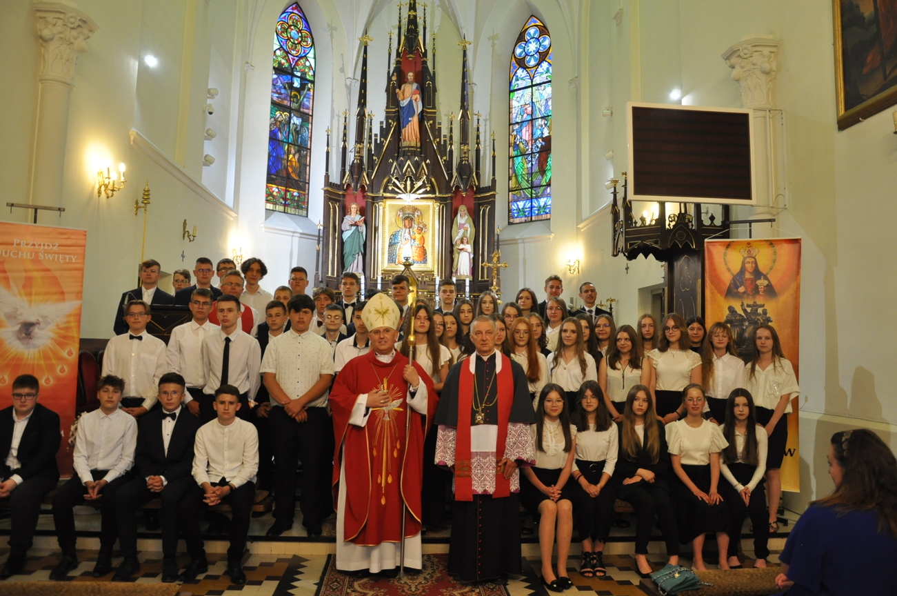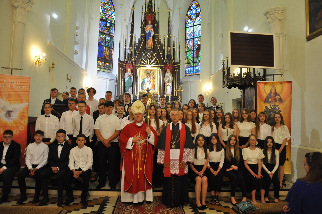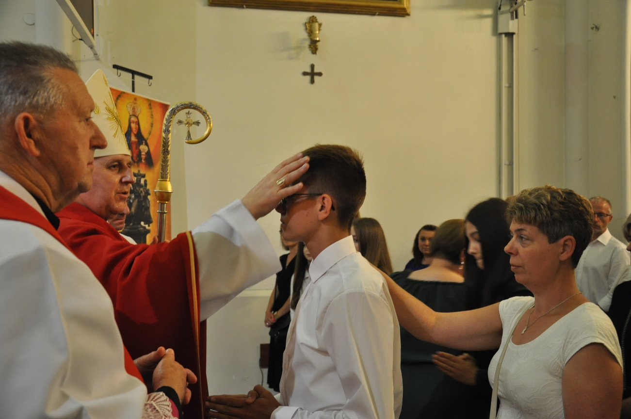 „Duch Święty porusza Kościół, działa w Kościele, a także w naszych sercach, jest tym, który czyni każdą osobę wyznającą wiarę w Chrystusa kimś wyjątkowym, z wielu różnych ludzi czyni jedność. Jest tym, który zachęca, aby podążać naprzód, otwiera drzwi na oścież i wzywa, aby dawać świadectwo o zmartwychwstałym Chrystusie” Sakrament bierzmowania to wydarzenie w życiu młodej osoby, którego jest całkowicie świadome. Przystąpienie do sakramentu zesłania ducha świętego jest wyrazem dojrzałości chrześcijańskiej i życia w wierze. 20 czerwca na Mszy Św. O godz. 15:30 Ksiądz Biskup Grzegorz Suchodolski udzielił Naszej młodzieży sakramentu bierzmowania.