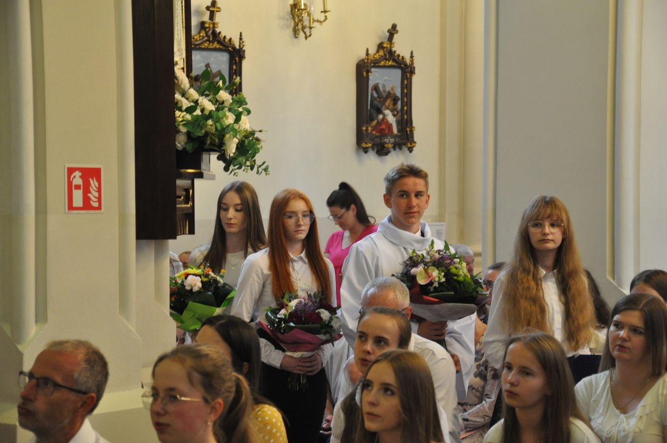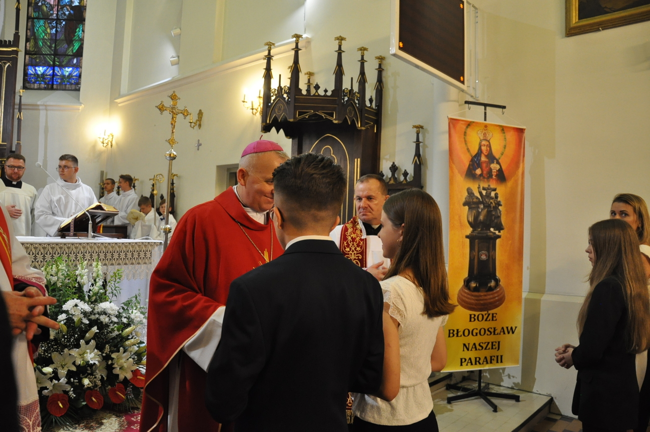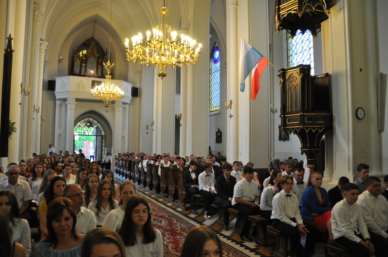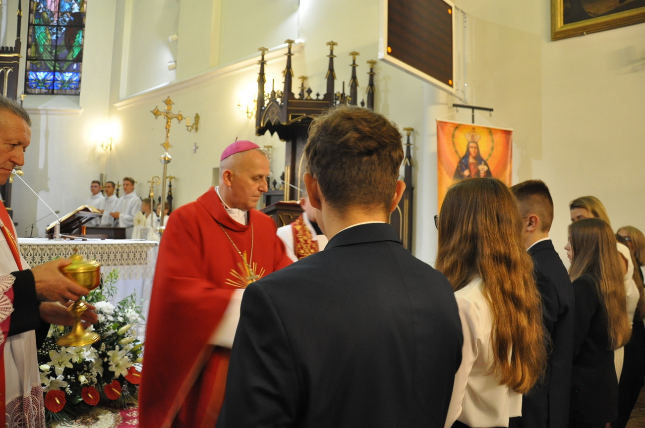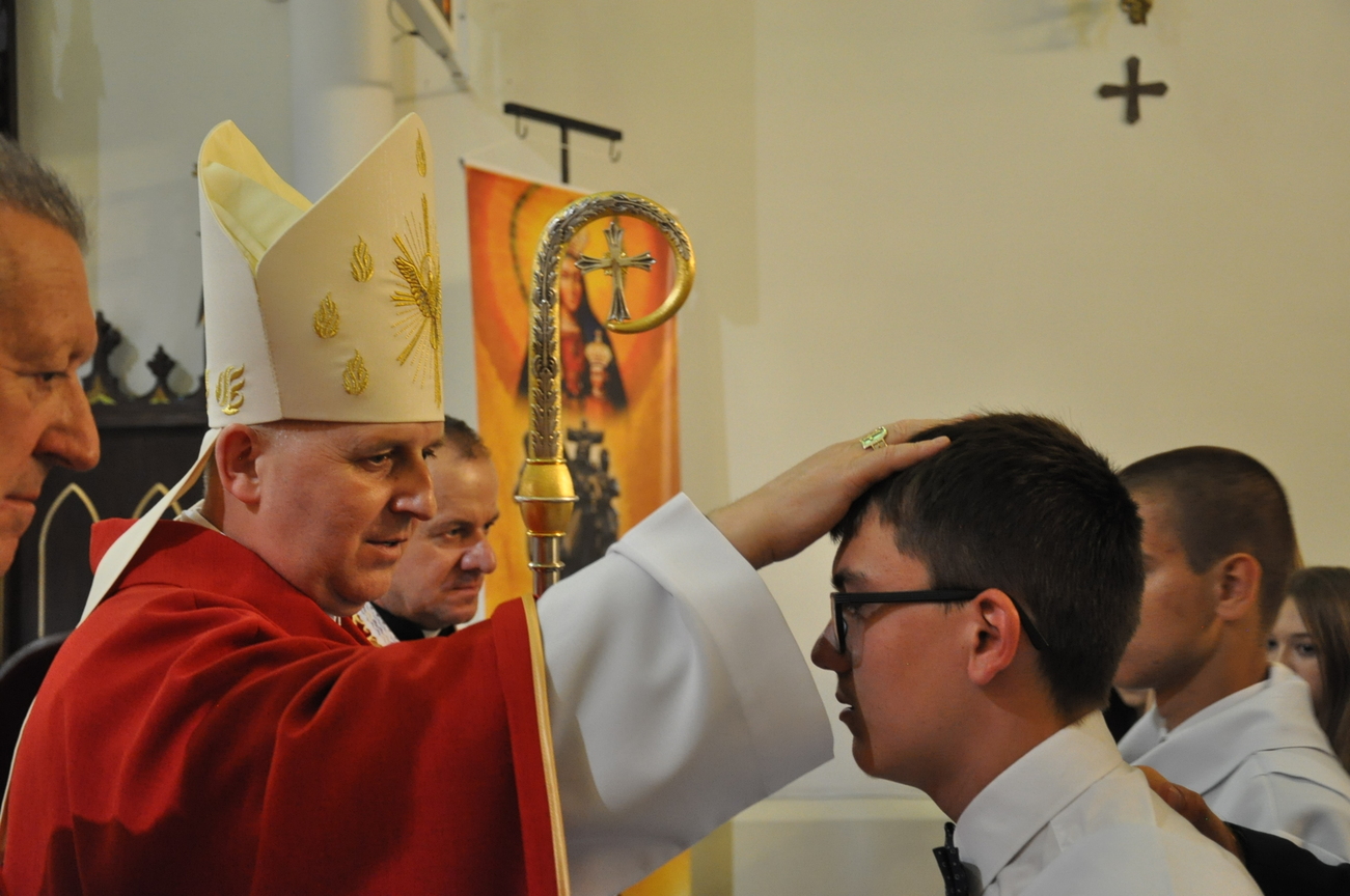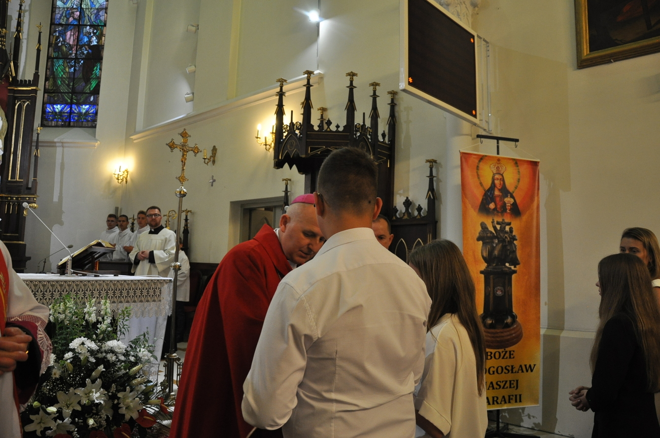 „Duch Święty porusza Kościół, działa w Kościele, a także w naszych sercach, jest tym, który czyni każdą osobę wyznającą wiarę w Chrystusa kimś wyjątkowym, z wielu różnych ludzi czyni jedność. Jest tym, który zachęca, aby podążać naprzód, otwiera drzwi na oścież i wzywa, aby dawać świadectwo o zmartwychwstałym Chrystusie” Sakrament bierzmowania to wydarzenie w życiu młodej osoby, którego jest całkowicie świadome. Przystąpienie do sakramentu zesłania ducha świętego jest wyrazem dojrzałości chrześcijańskiej i życia w wierze. 20 czerwca na Mszy Św. O godz. 15:30 Ksiądz Biskup Grzegorz Suchodolski udzielił Naszej młodzieży sakramentu bierzmowania.