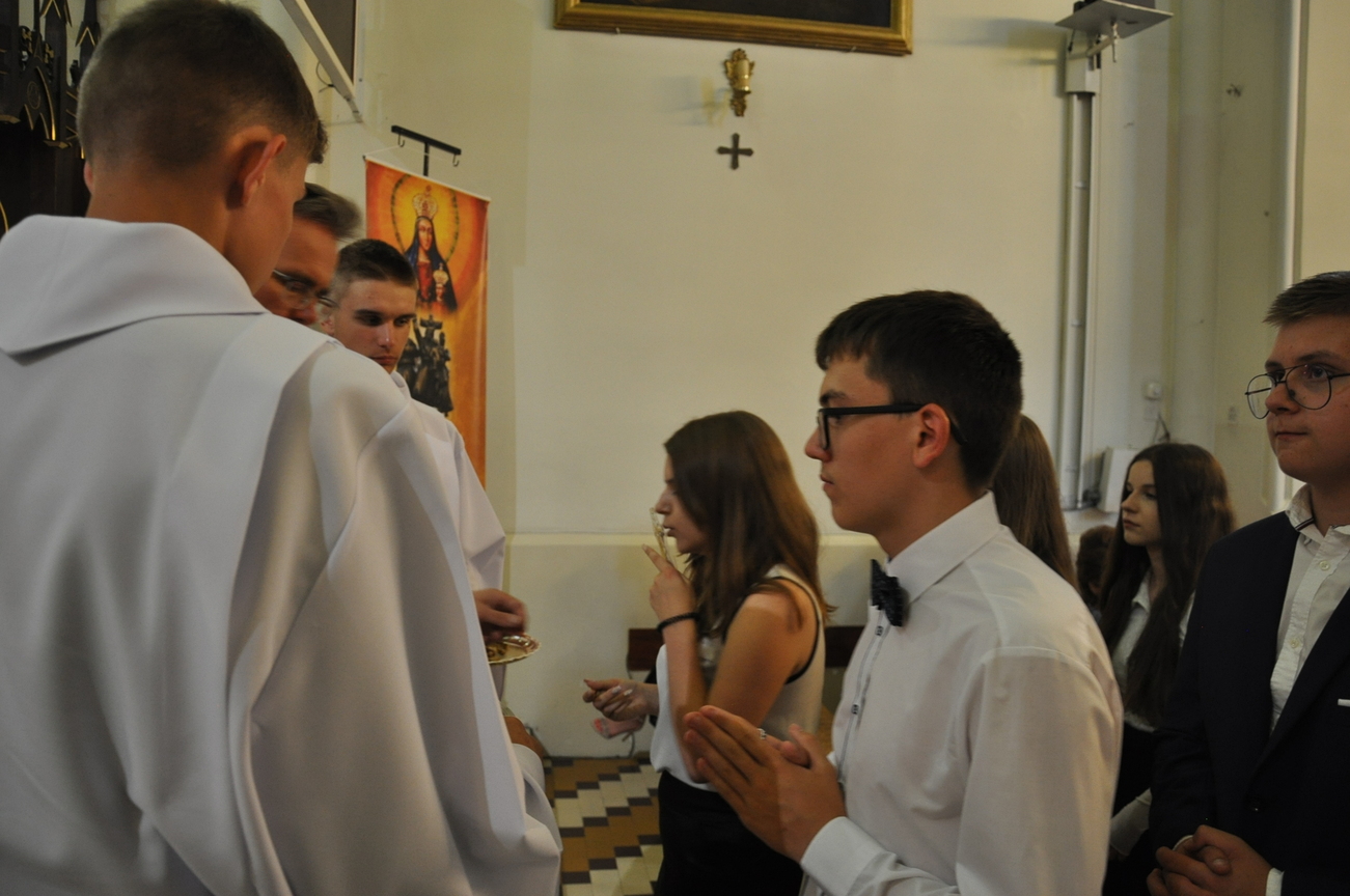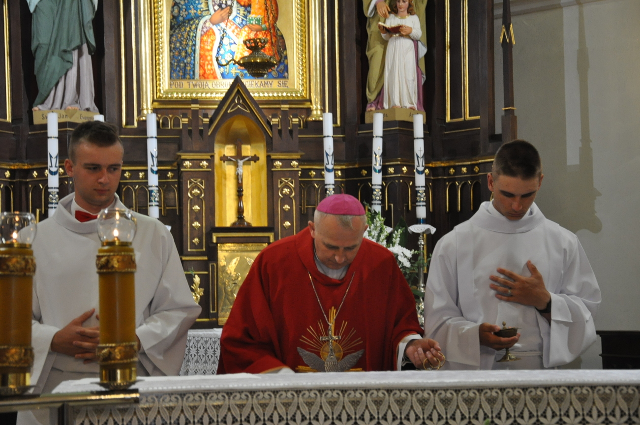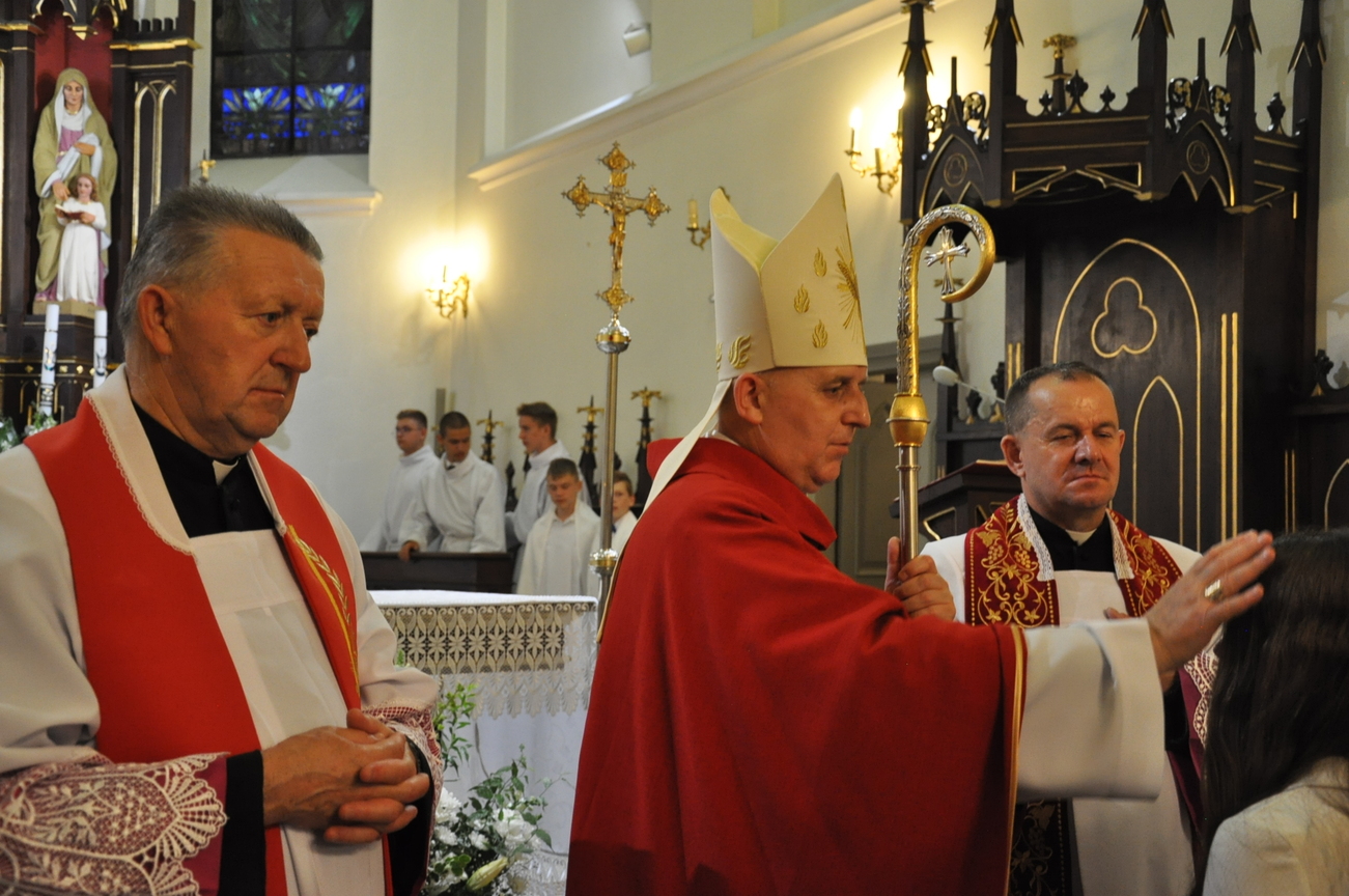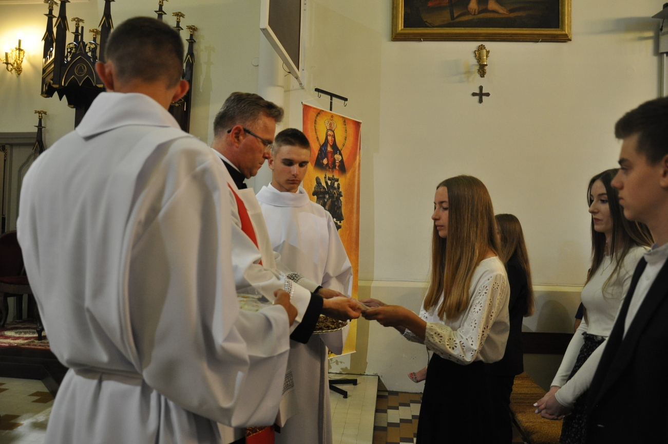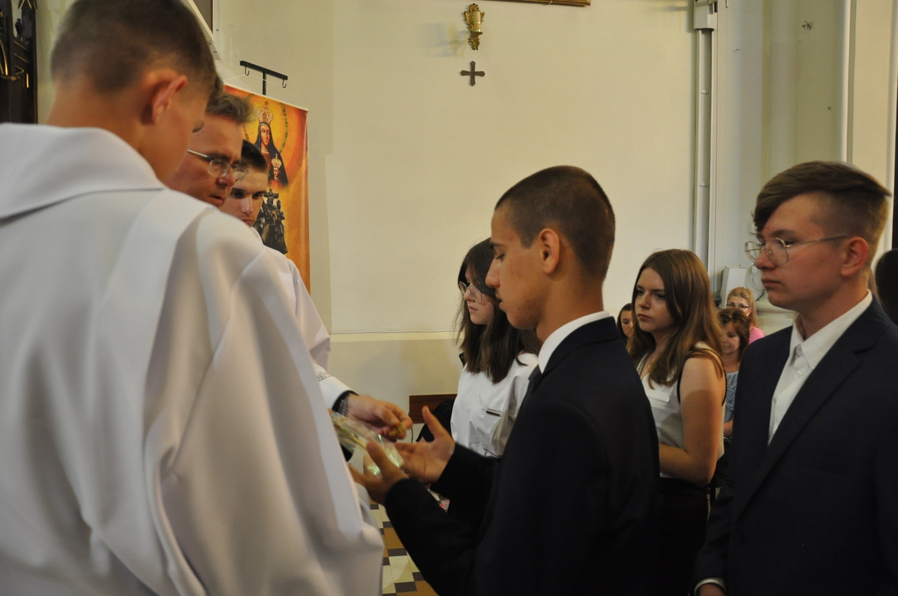 „Duch Święty porusza Kościół, działa w Kościele, a także w naszych sercach, jest tym, który czyni każdą osobę wyznającą wiarę w Chrystusa kimś wyjątkowym, z wielu różnych ludzi czyni jedność. Jest tym, który zachęca, aby podążać naprzód, otwiera drzwi na oścież i wzywa, aby dawać świadectwo o zmartwychwstałym Chrystusie” Sakrament bierzmowania to wydarzenie w życiu młodej osoby, którego jest całkowicie świadome. Przystąpienie do sakramentu zesłania ducha świętego jest wyrazem dojrzałości chrześcijańskiej i życia w wierze. 20 czerwca na Mszy Św. O godz. 15:30 Ksiądz Biskup Grzegorz Suchodolski udzielił Naszej młodzieży sakramentu bierzmowania.