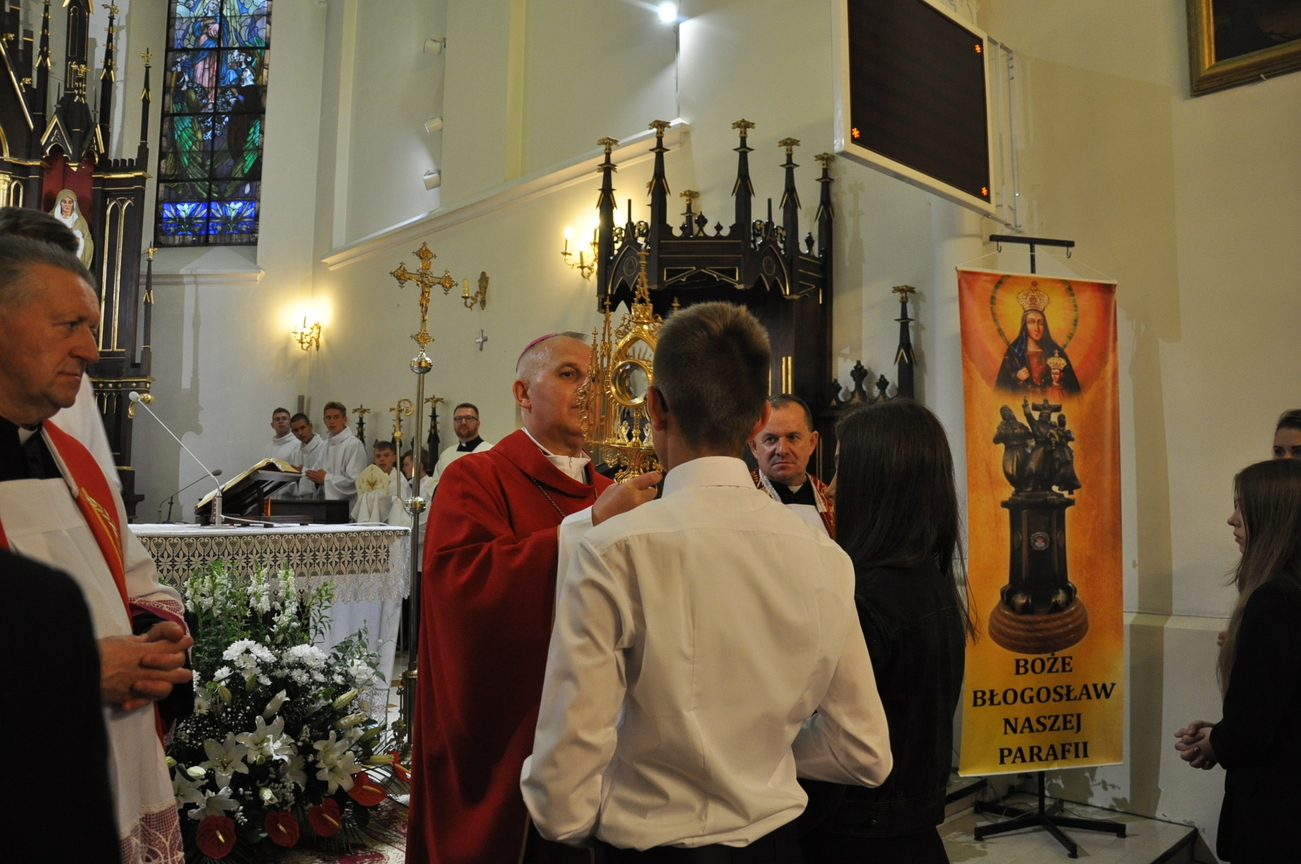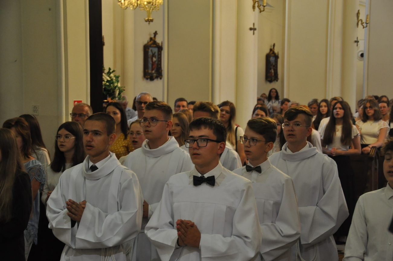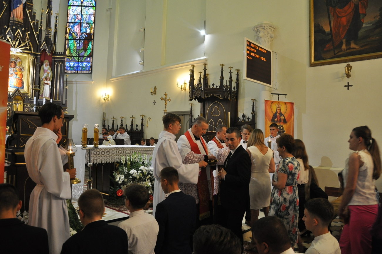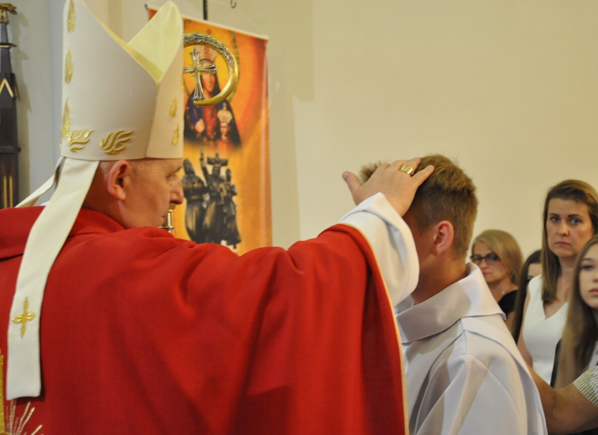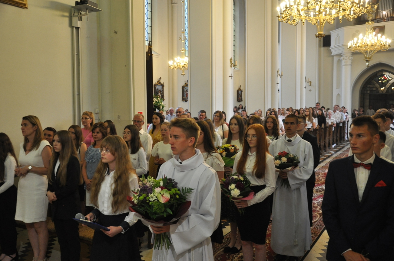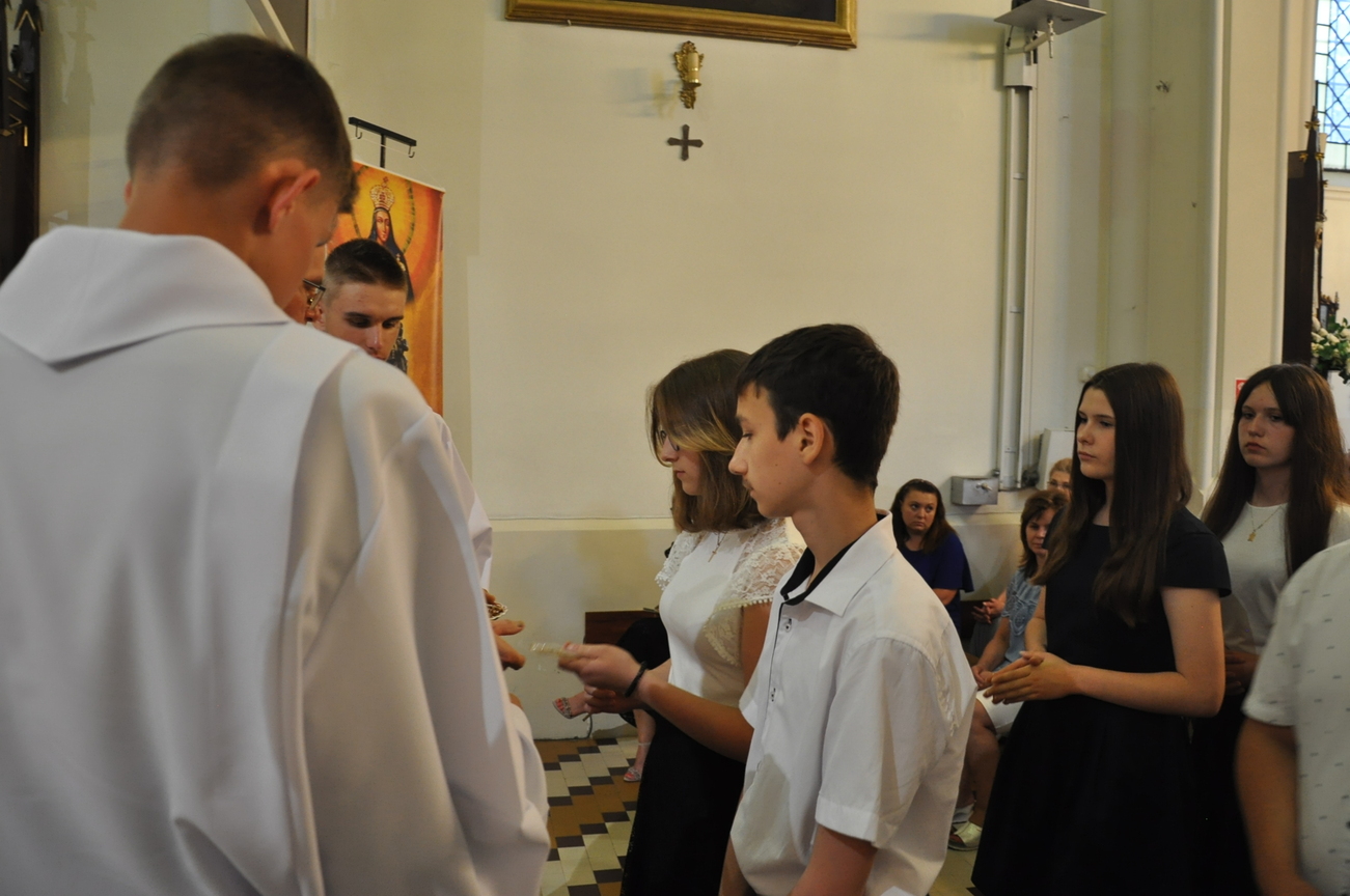 „Duch Święty porusza Kościół, działa w Kościele, a także w naszych sercach, jest tym, który czyni każdą osobę wyznającą wiarę w Chrystusa kimś wyjątkowym, z wielu różnych ludzi czyni jedność. Jest tym, który zachęca, aby podążać naprzód, otwiera drzwi na oścież i wzywa, aby dawać świadectwo o zmartwychwstałym Chrystusie” Sakrament bierzmowania to wydarzenie w życiu młodej osoby, którego jest całkowicie świadome. Przystąpienie do sakramentu zesłania ducha świętego jest wyrazem dojrzałości chrześcijańskiej i życia w wierze. 20 czerwca na Mszy Św. O godz. 15:30 Ksiądz Biskup Grzegorz Suchodolski udzielił Naszej młodzieży sakramentu bierzmowania.