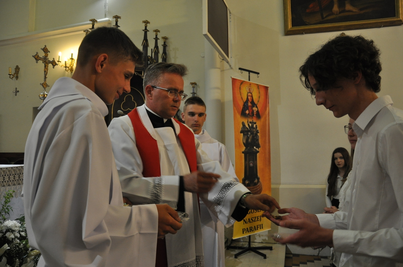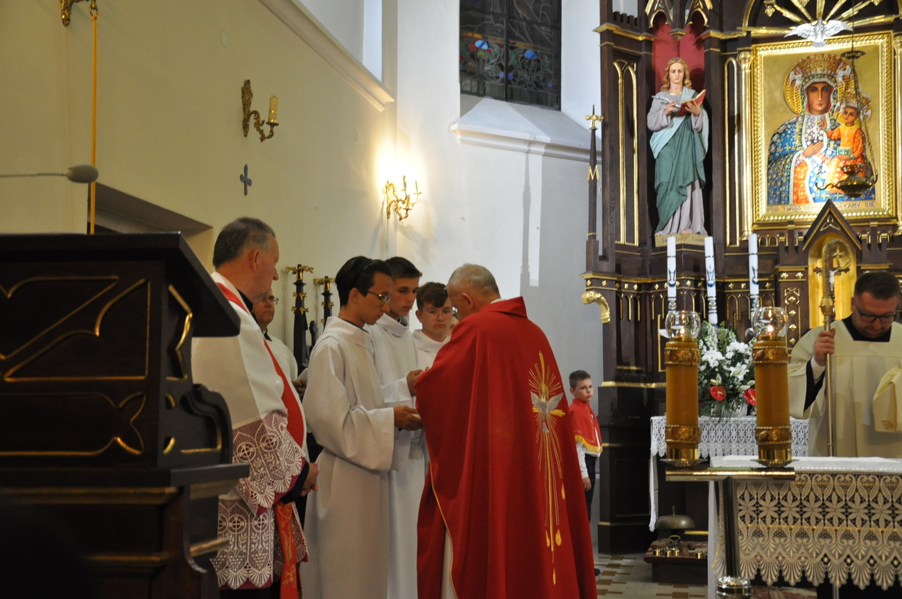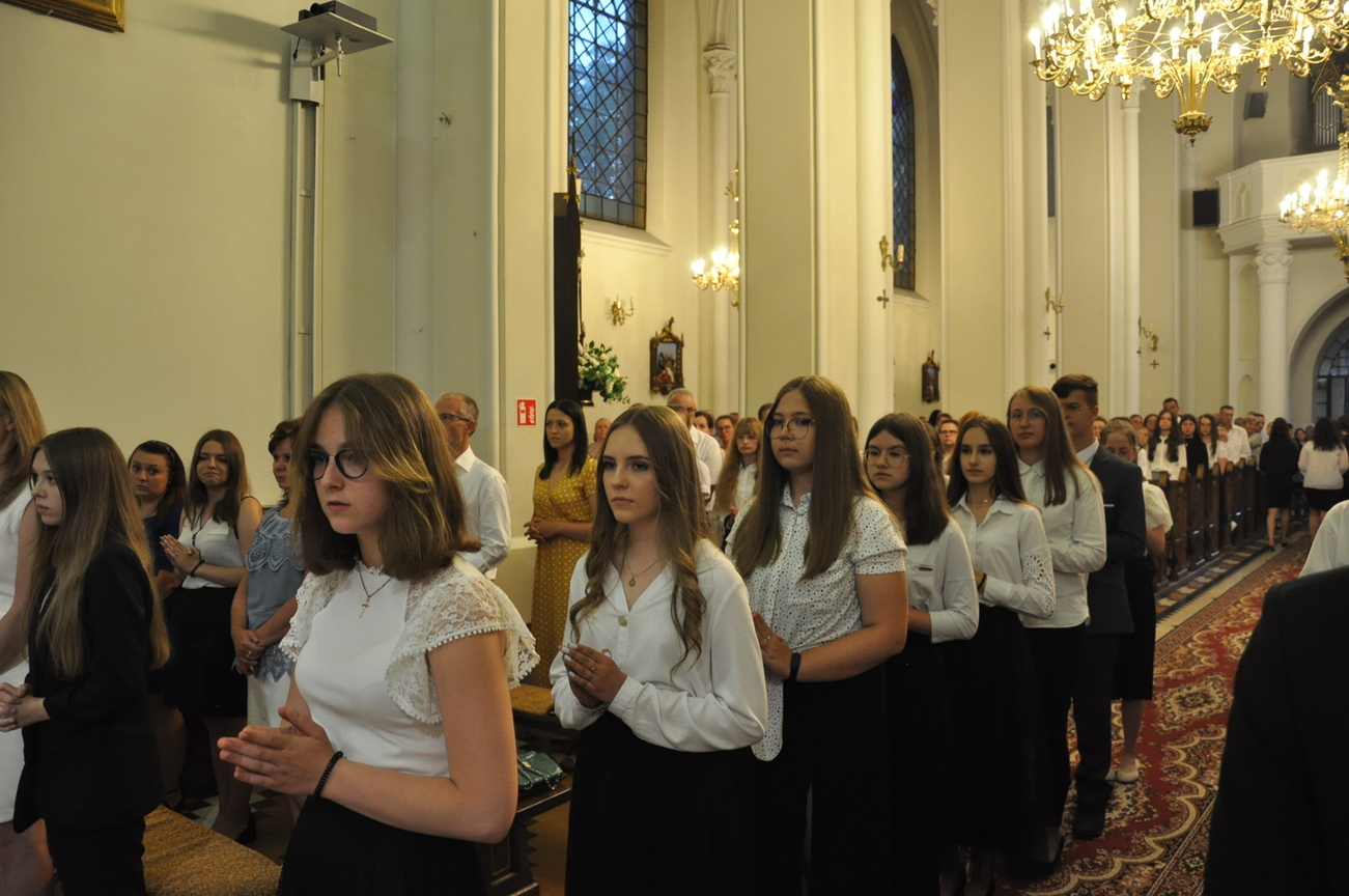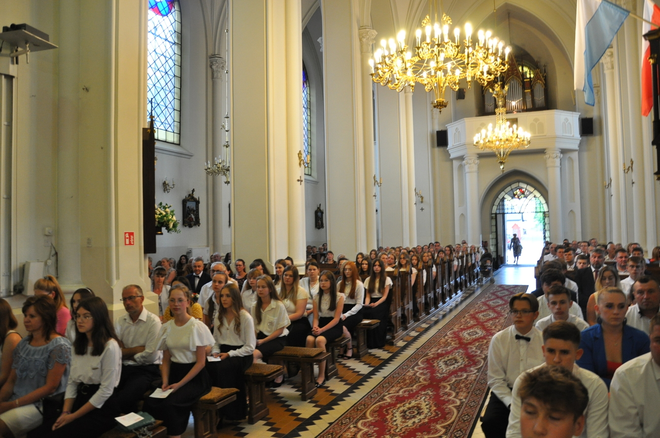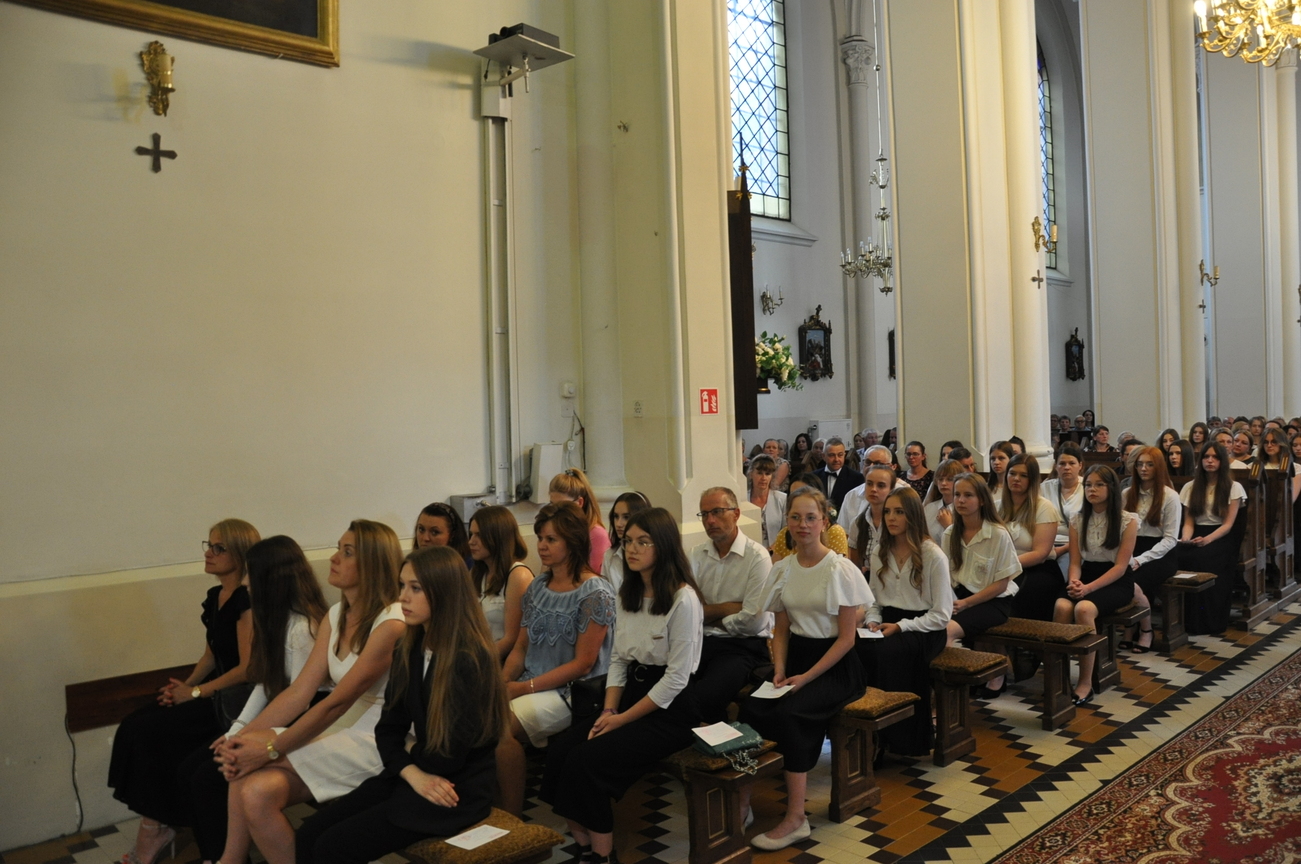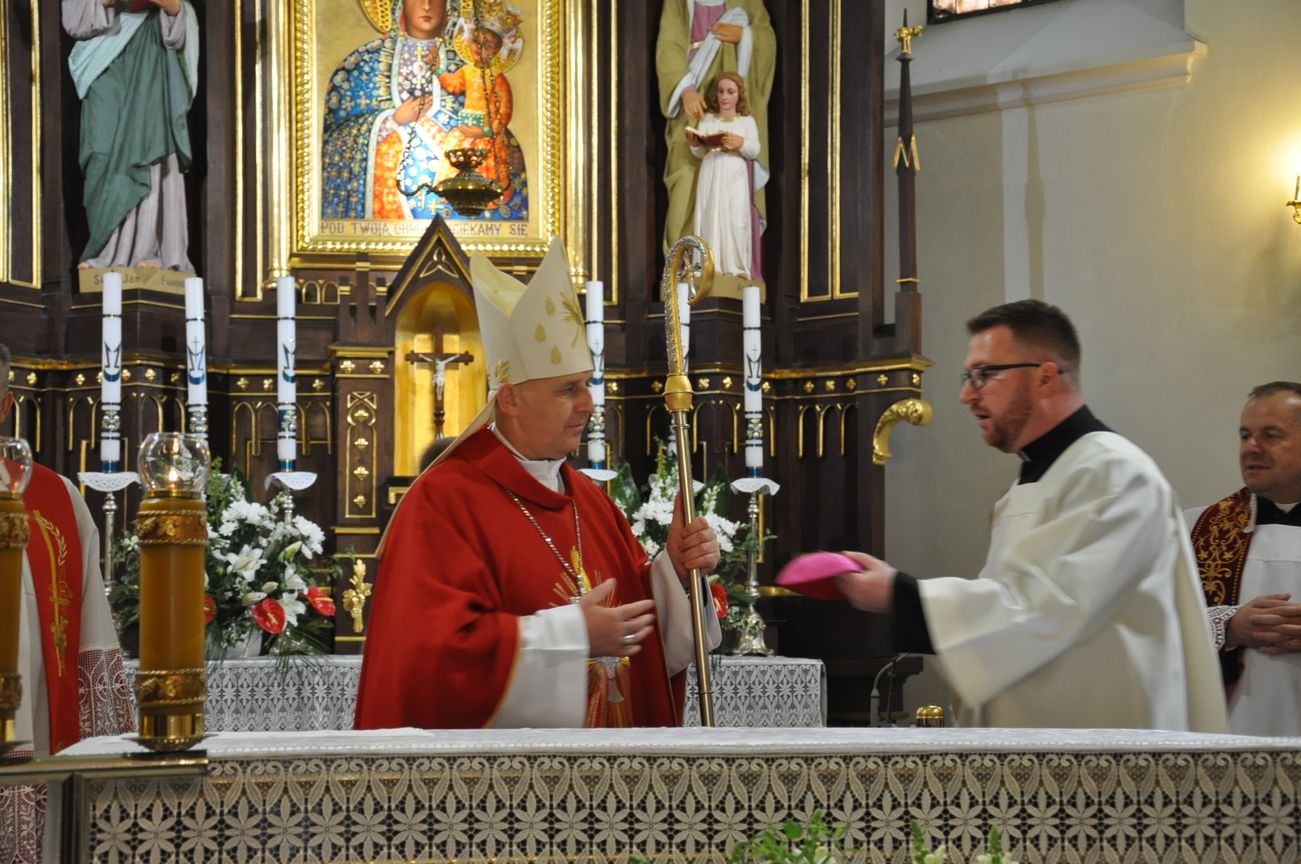 „Duch Święty porusza Kościół, działa w Kościele, a także w naszych sercach, jest tym, który czyni każdą osobę wyznającą wiarę w Chrystusa kimś wyjątkowym, z wielu różnych ludzi czyni jedność. Jest tym, który zachęca, aby podążać naprzód, otwiera drzwi na oścież i wzywa, aby dawać świadectwo o zmartwychwstałym Chrystusie” Sakrament bierzmowania to wydarzenie w życiu młodej osoby, którego jest całkowicie świadome. Przystąpienie do sakramentu zesłania ducha świętego jest wyrazem dojrzałości chrześcijańskiej i życia w wierze. 20 czerwca na Mszy Św. O godz. 15:30 Ksiądz Biskup Grzegorz Suchodolski udzielił Naszej młodzieży sakramentu bierzmowania.