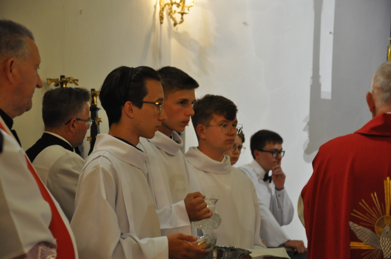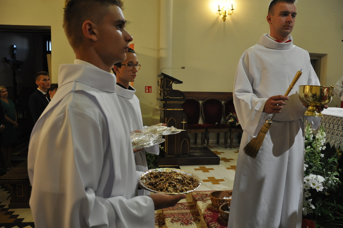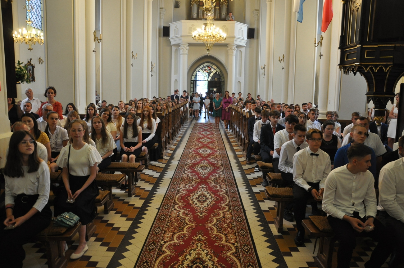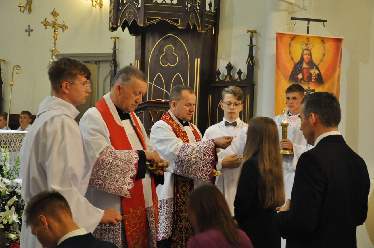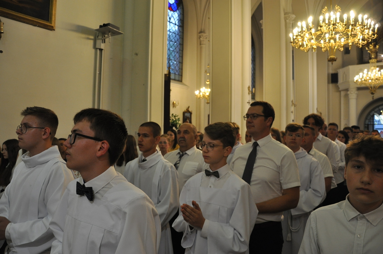 „Duch Święty porusza Kościół, działa w Kościele, a także w naszych sercach, jest tym, który czyni każdą osobę wyznającą wiarę w Chrystusa kimś wyjątkowym, z wielu różnych ludzi czyni jedność. Jest tym, który zachęca, aby podążać naprzód, otwiera drzwi na oścież i wzywa, aby dawać świadectwo o zmartwychwstałym Chrystusie” Sakrament bierzmowania to wydarzenie w życiu młodej osoby, którego jest całkowicie świadome. Przystąpienie do sakramentu zesłania ducha świętego jest wyrazem dojrzałości chrześcijańskiej i życia w wierze. 20 czerwca na Mszy Św. O godz. 15:30 Ksiądz Biskup Grzegorz Suchodolski udzielił Naszej młodzieży sakramentu bierzmowania.