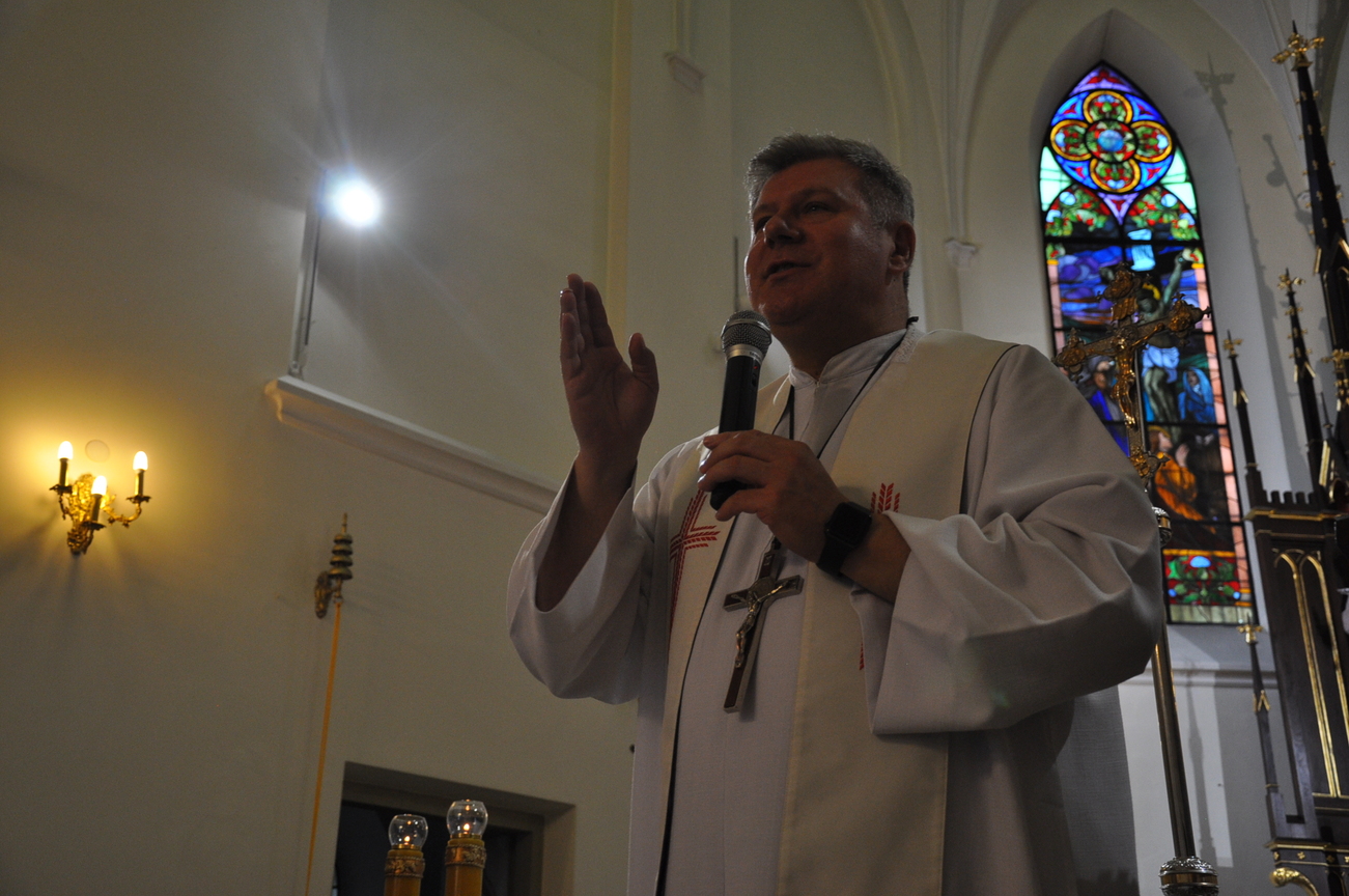 Za nami czwarty dzień Jubileuszowych Misji Ewangelizacyjnych w naszym kościele. Wierni po raz kolejny wybierali Jezusa Chrystusa na swego Pana i Zbawiciela. Misjonarz ks. Andrzej Sochal próbował odpowiedzieć na pytanie: Czy warto aby Chrystus był moi Panem i Zbawicielem? Swoje argumenty oparł na tekście Aktu Zawierzenia który Pan Jezus przekazał księdzu Dolindo w roku 1940. Dodatkowo każdy otrzymał tekst Aktu Zawierzenia: Jezu, ty się tym zajmij. Tradycyjnie Eucharystię poprzedził Różaniec św. prowadzony przez Domowy Kościół.