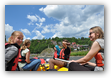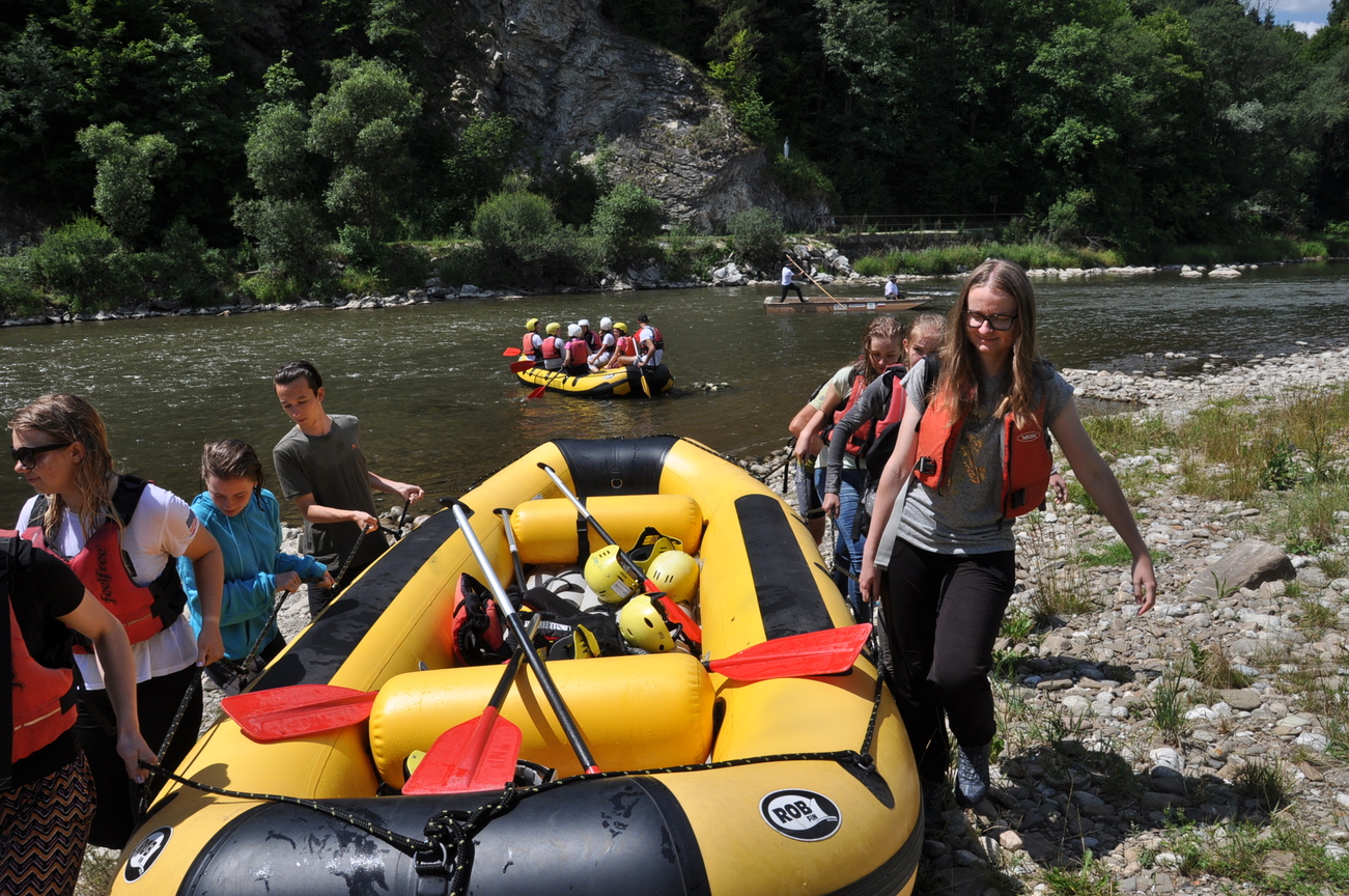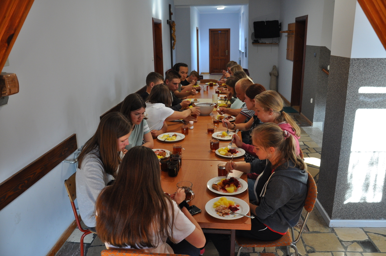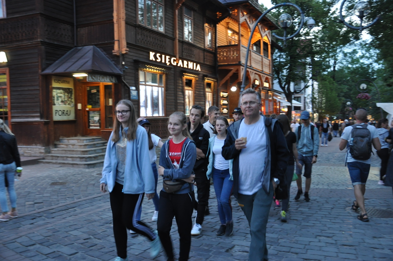 14 lipca to czwarty dzień naszego pobytu w Zakopanem. Dzień rozpoczęliśmy od spotkania z Jezusem na Eucharystii, po której udaliśmy się na spływ pontonami po rzece Dunajec, która stanowi naturalną granicę Polski i Słowacji. Podczas spływu usłyszeliśmy wiele ciekawostek od naszych sterników. Wycieczka przebiegła zgodnie z planem, a także w dobrej atmosferze. Chociaż spływ trwał około dwie godziny, to czas spędzony na wodzie minął miło i szybko. Po krótkim odpoczynku wybraliśmy się na spacer po Zakopanem. Odwiedziliśmy Wielką Krokiew i Krupówki. Podczas deseru natknęliśmy się na przyjaciół parafii. Dzień zakończyliśmy wspólną modlitwą, apelem Jasnogórskim oraz kolacją.