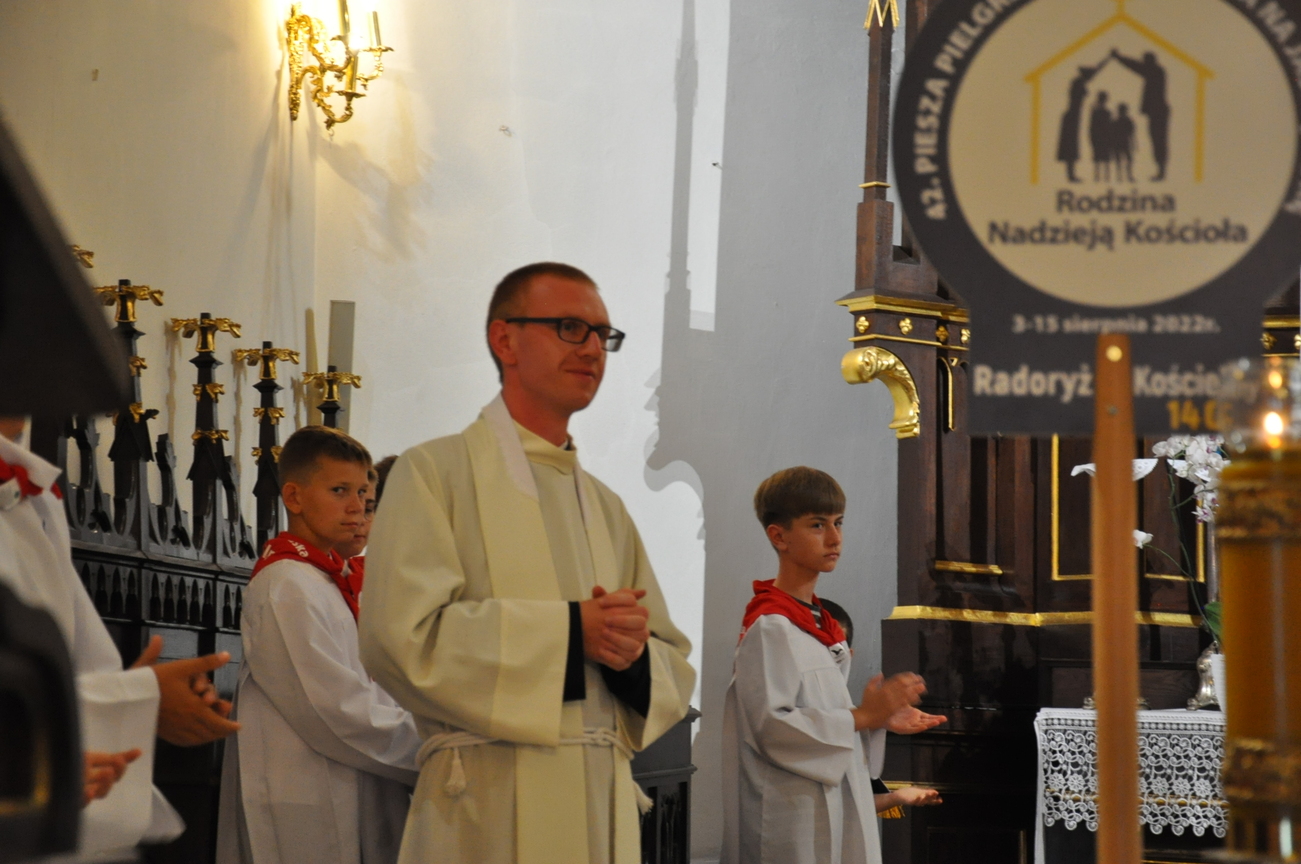 Dzień drugi Naszego Duchowego Pielgrzymowania na Jasną Górę. Pielgrzymi w sposób wyjątkowy wspominali w modlitwach kapłanów, ponieważ kalendarz liturgiczny wspomina dziś postać Św. Jana Marii Vianeya – patrona proboszczów. Na Mszy Św. Gościliśmy ks. Mateusza, który przyjechał do Nas prosto z Żyrzyna. Duchowo przeszliśmy dzisiaj etap z Woli Gułowskiej do Żyrzyna.