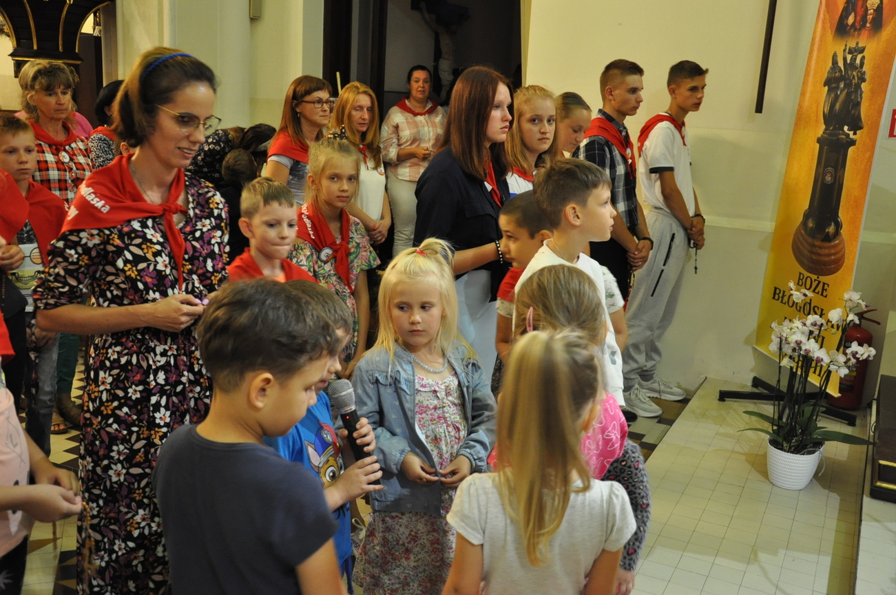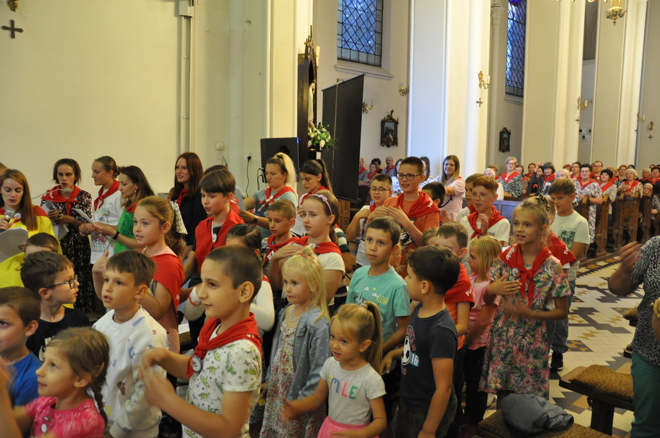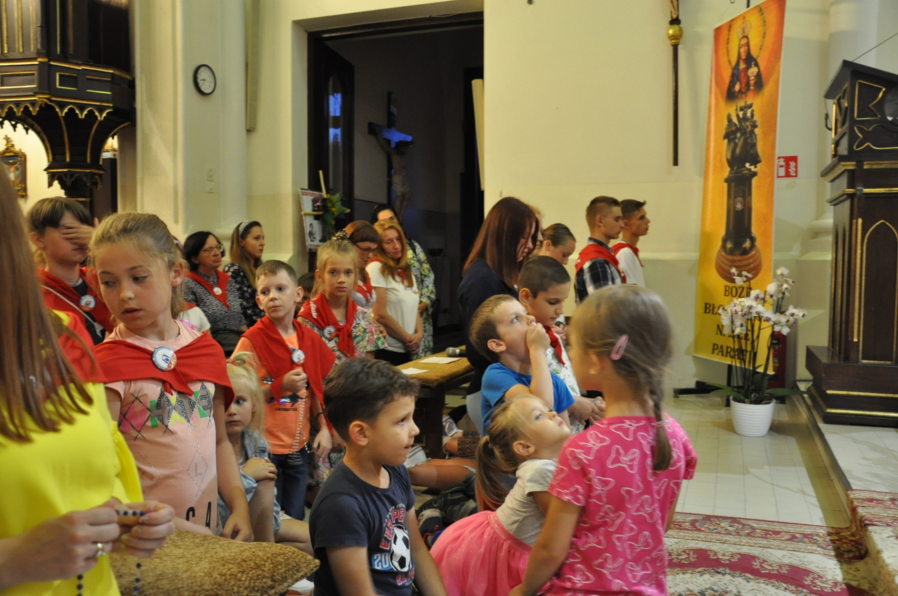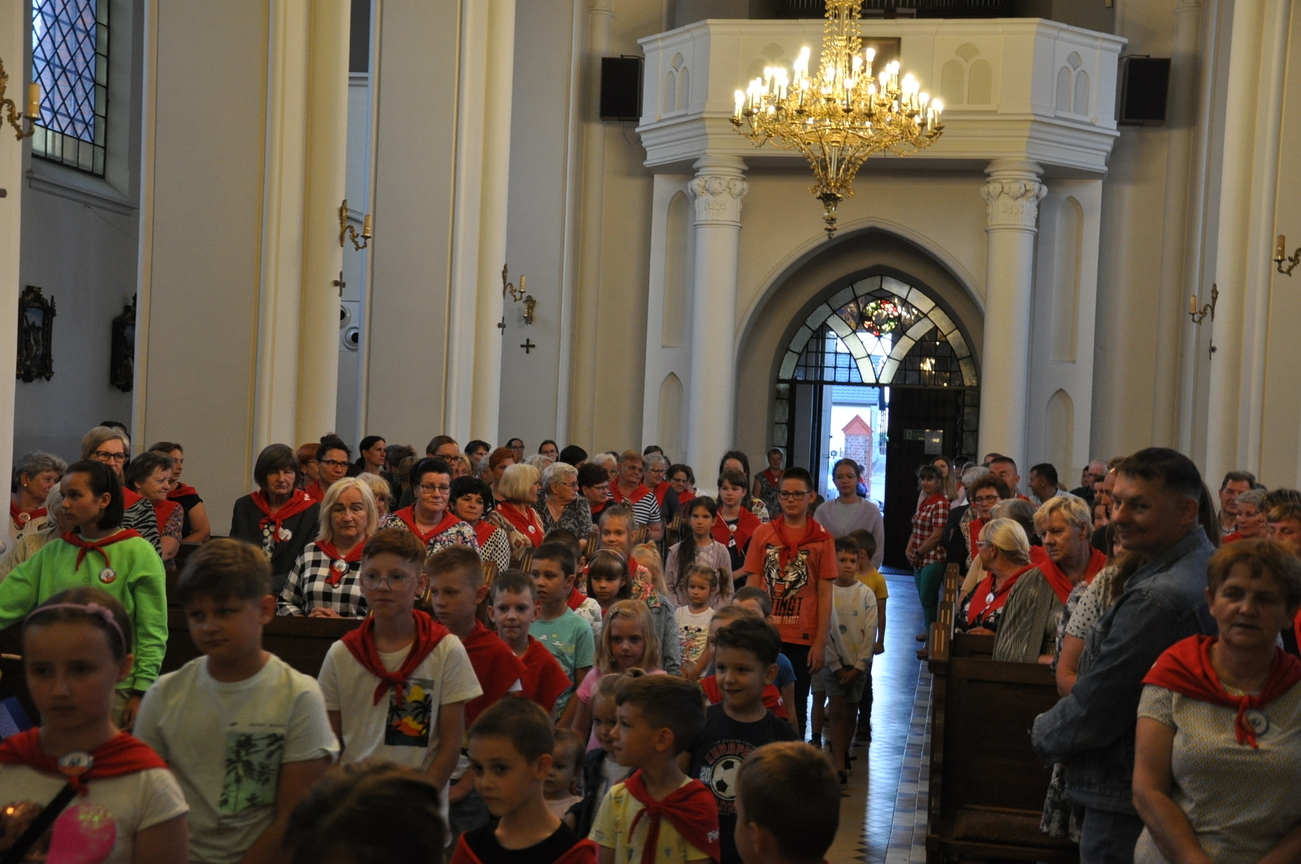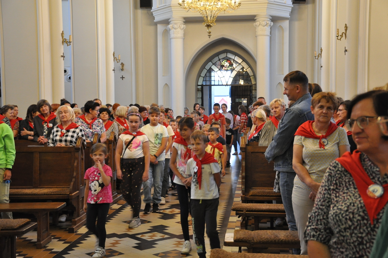 Świętowaliśmy dzisiaj DZIEŃ DZIECKA. Z tej okazji dzieci przygotowały oprawę liturgiczną i procesję z darami zakończoną błogosławieństwem z rąk ks. kanonika Mieczysława i ks. Sławka. Po Mszy Św. Głosy Naszych najmłodszych pątników rozbrzmiewały w świątyni podczas rozważania radosnych tajemnic Różańca Świętego. Na koniec wszystkie dzieci otrzymały coś słodkiego od ks. Sławka.