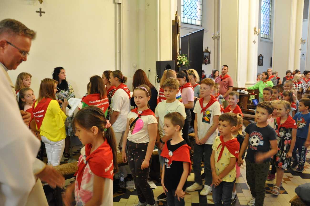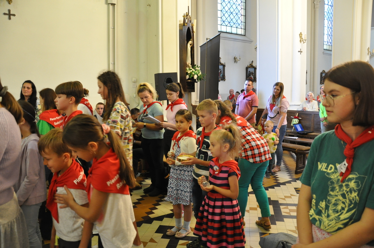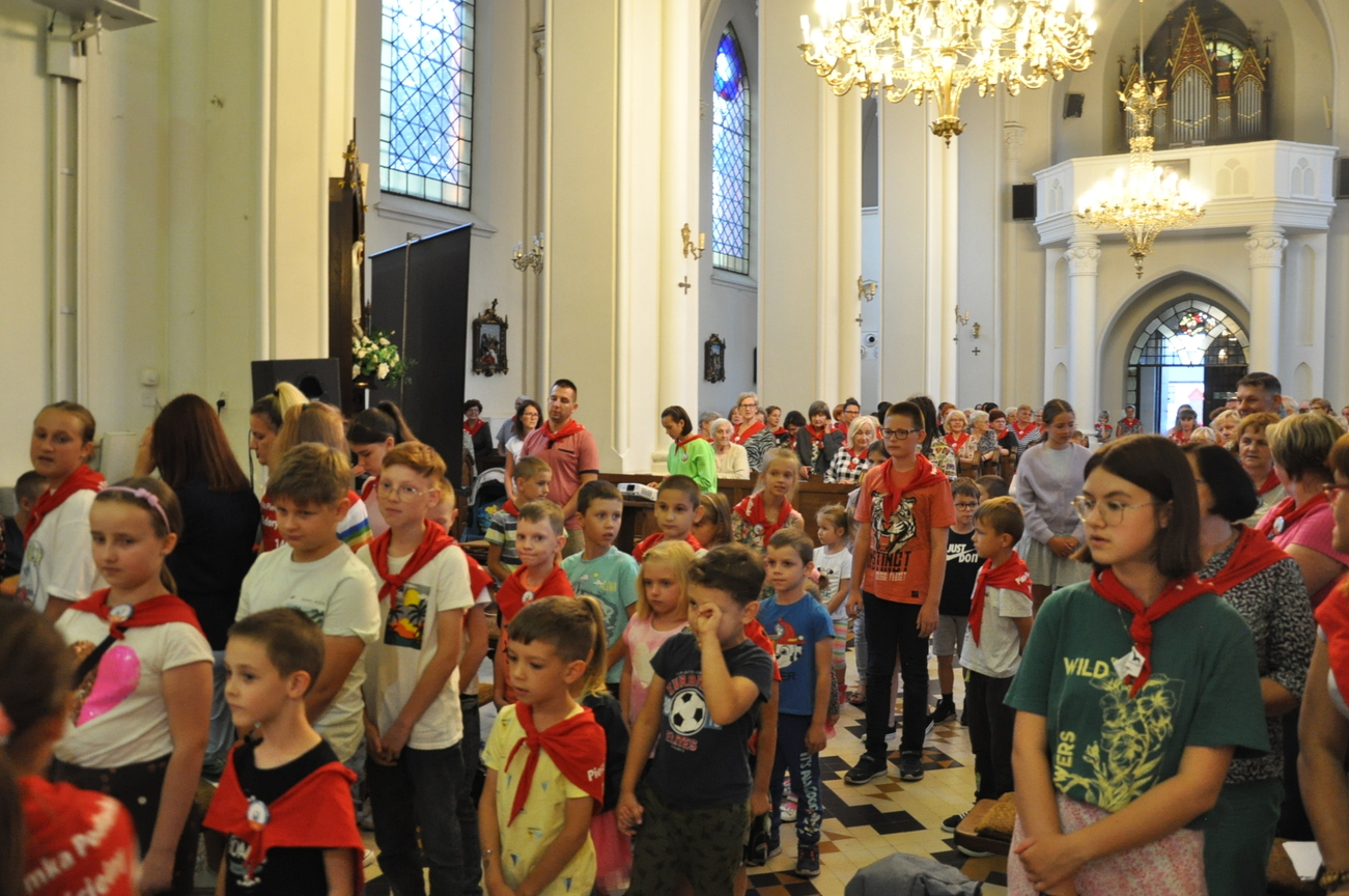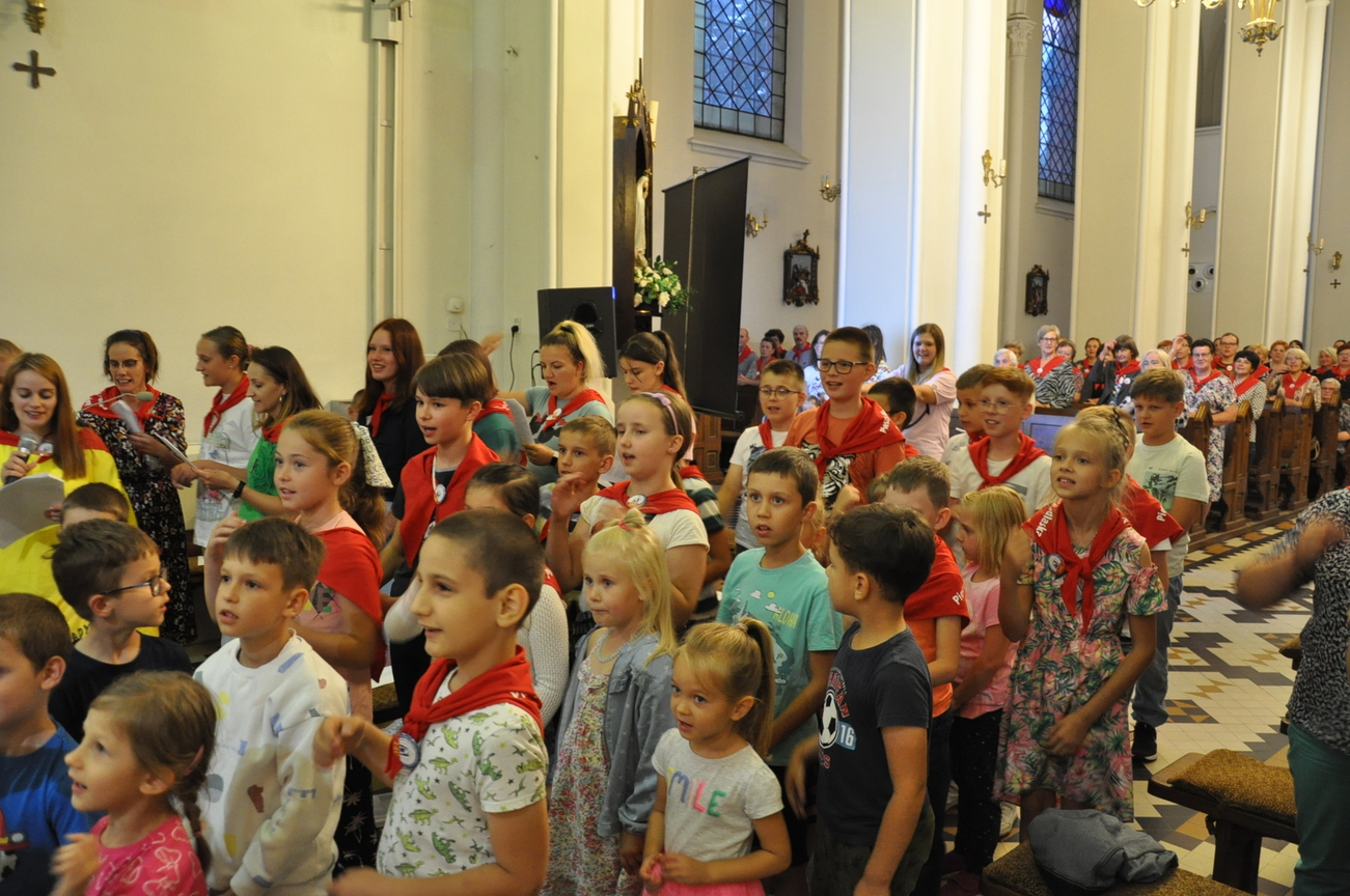 Świętowaliśmy dzisiaj DZIEŃ DZIECKA. Z tej okazji dzieci przygotowały oprawę liturgiczną i procesję z darami zakończoną błogosławieństwem z rąk ks. kanonika Mieczysława i ks. Sławka. Po Mszy Św. Głosy Naszych najmłodszych pątników rozbrzmiewały w świątyni podczas rozważania radosnych tajemnic Różańca Świętego. Na koniec wszystkie dzieci otrzymały coś słodkiego od ks. Sławka.