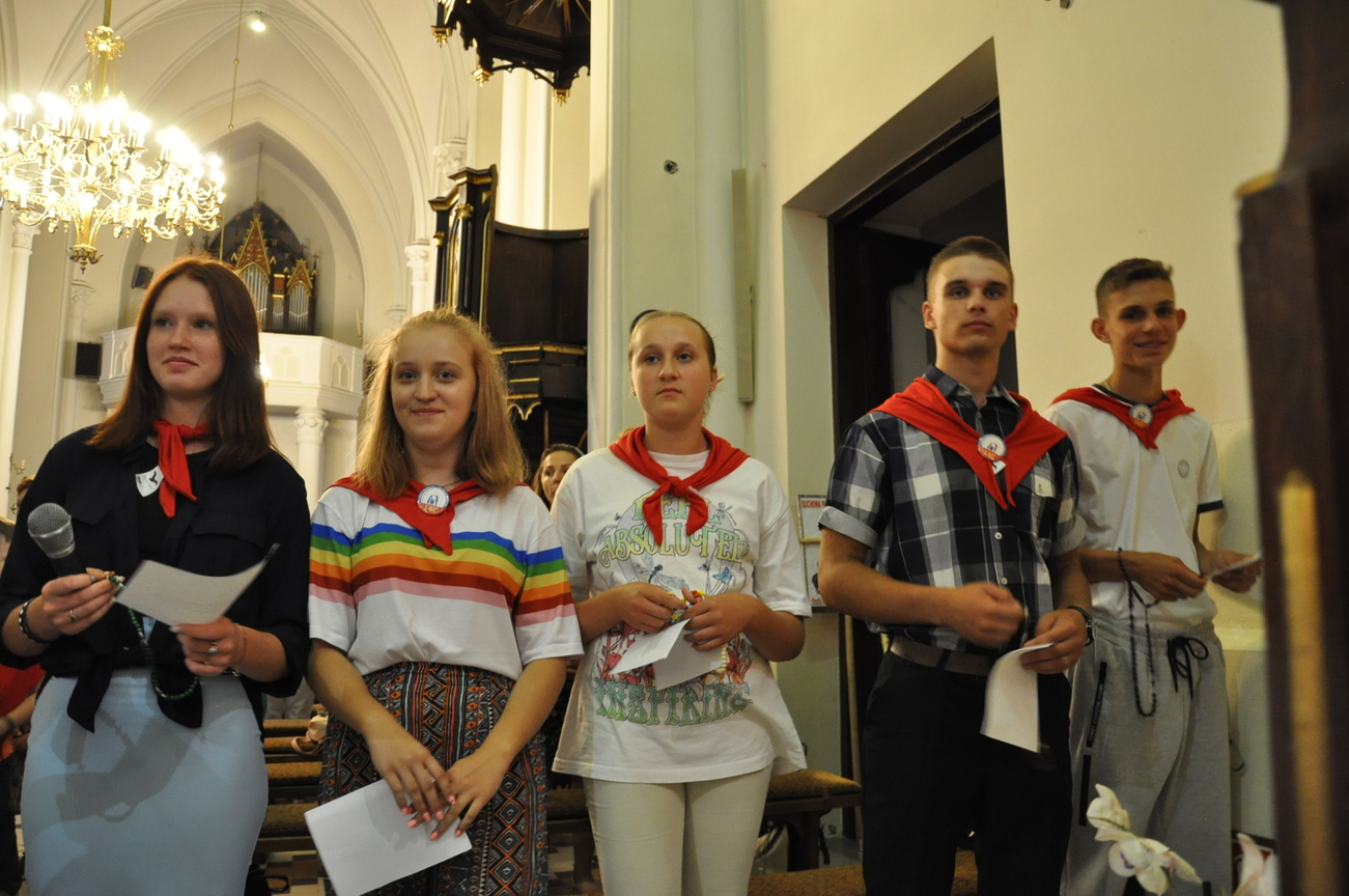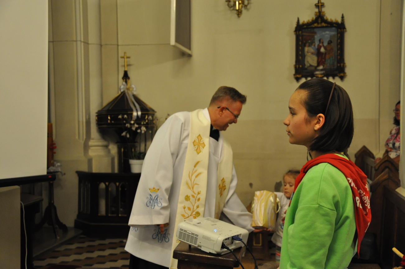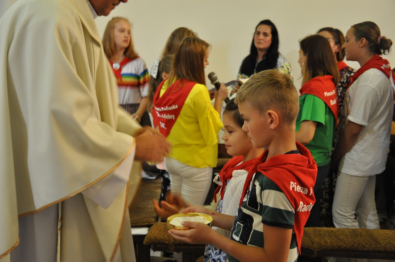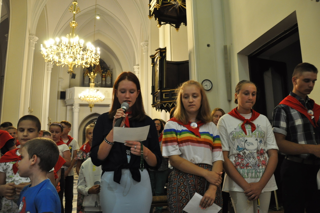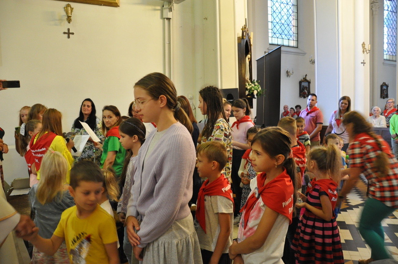 Świętowaliśmy dzisiaj DZIEŃ DZIECKA. Z tej okazji dzieci przygotowały oprawę liturgiczną i procesję z darami zakończoną błogosławieństwem z rąk ks. kanonika Mieczysława i ks. Sławka. Po Mszy Św. Głosy Naszych najmłodszych pątników rozbrzmiewały w świątyni podczas rozważania radosnych tajemnic Różańca Świętego. Na koniec wszystkie dzieci otrzymały coś słodkiego od ks. Sławka.