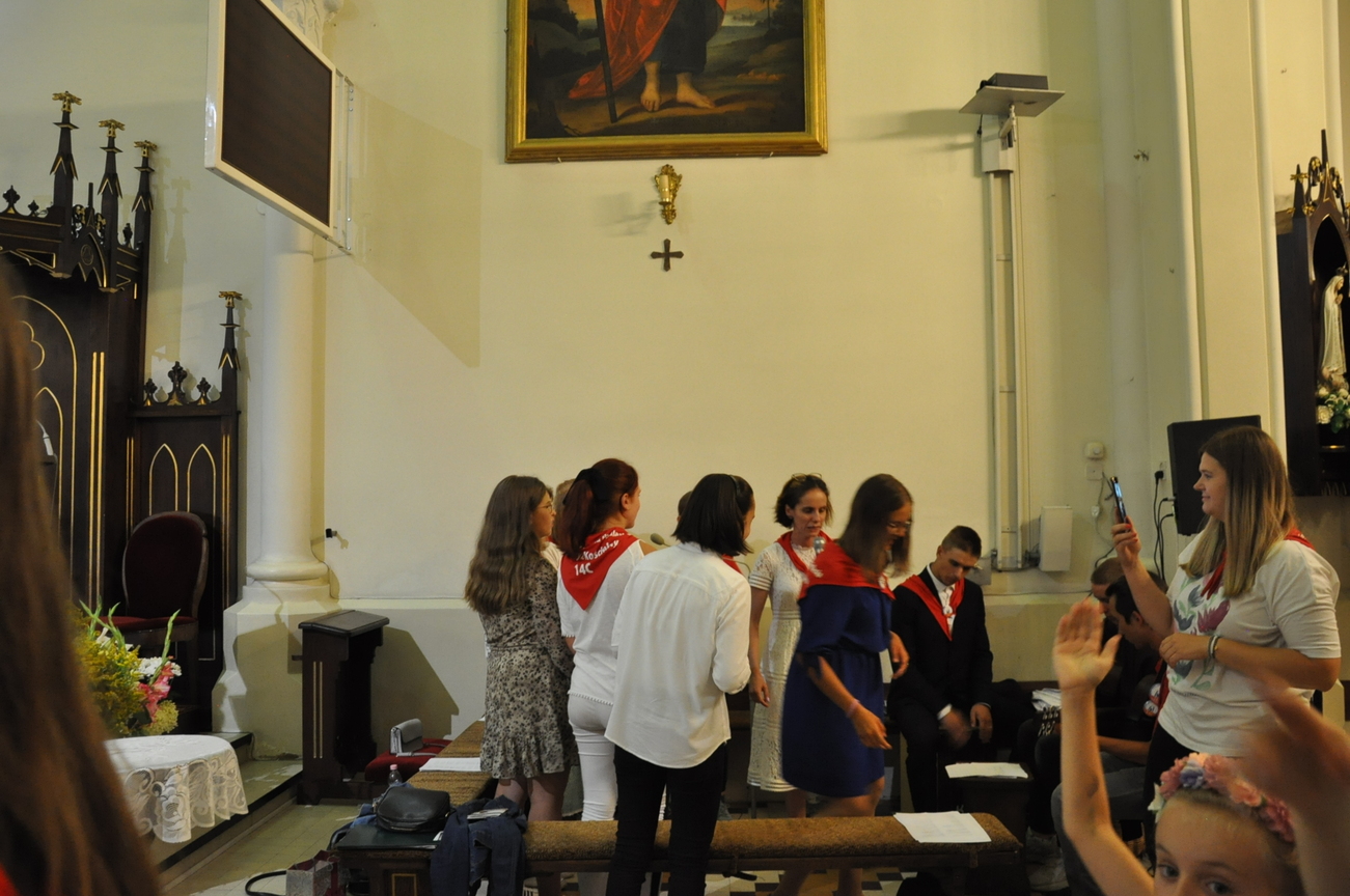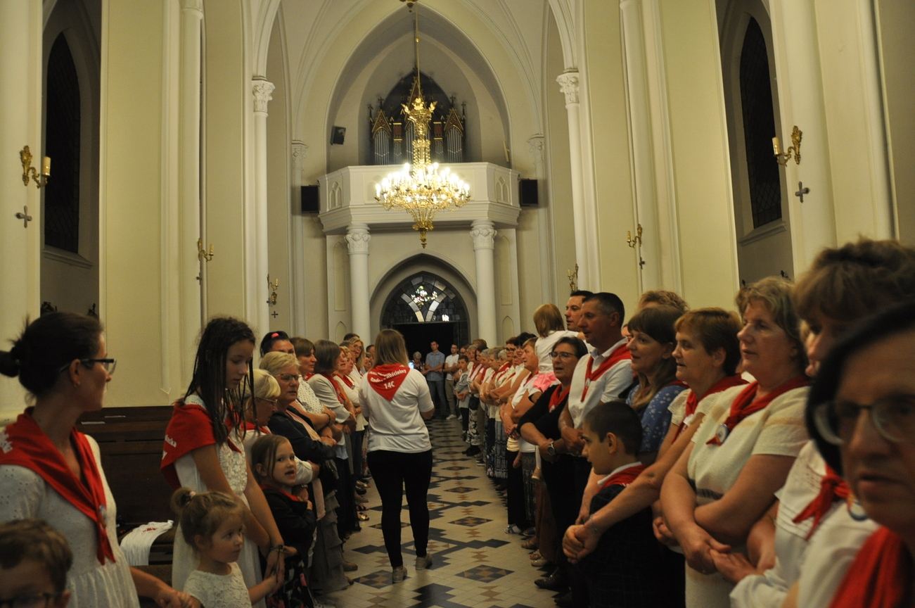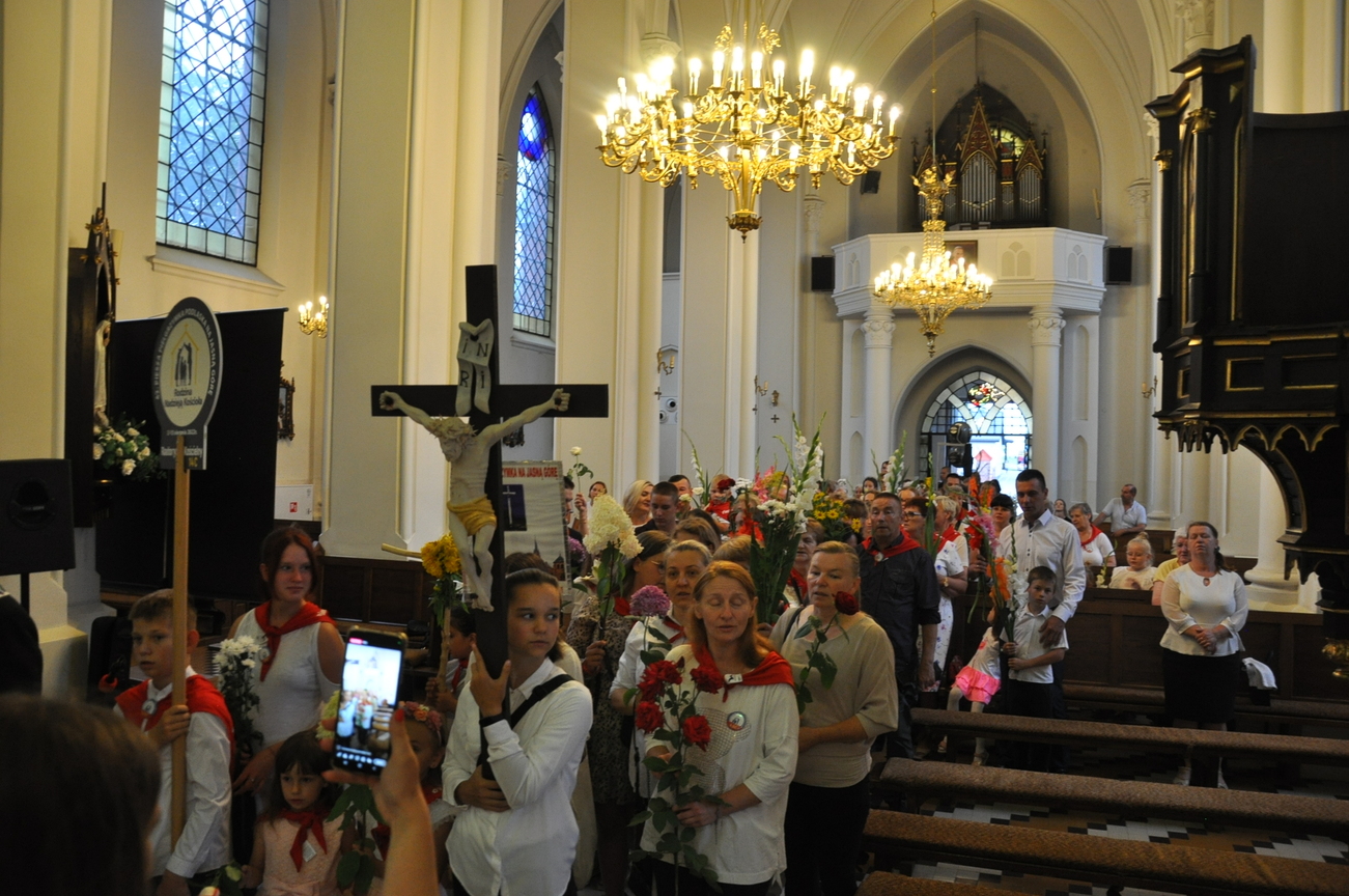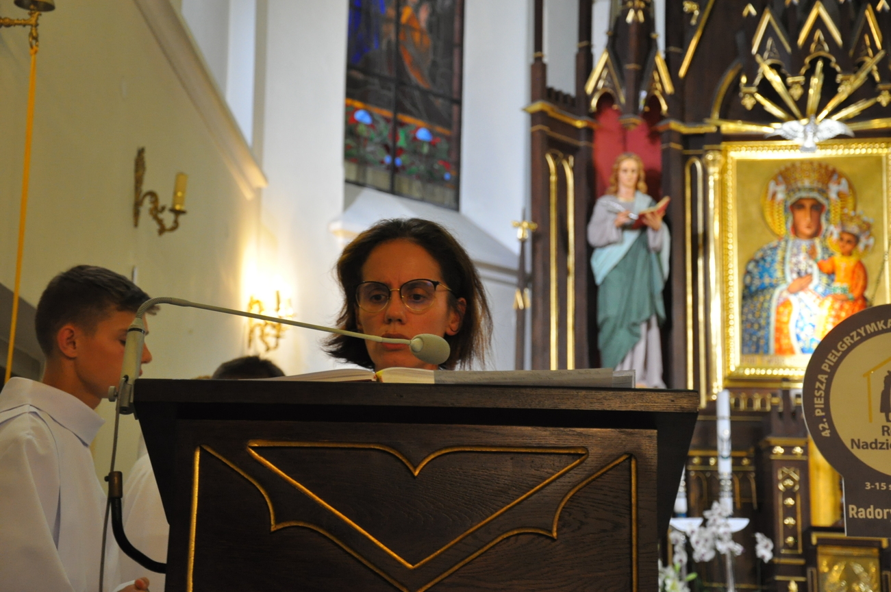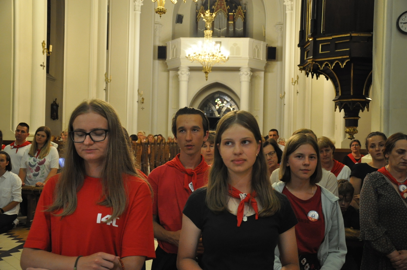 Ostatni wieczór pielgrzymkowy... Uroczystym dłuuuuugim wejściem rozpoczęliśmy Mszę świętą, po której wspólnie z pielgrzymami pieszymi odmówiliśmy różaniec.