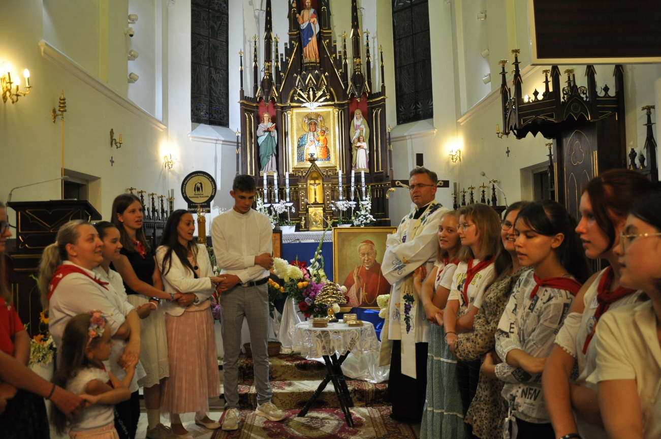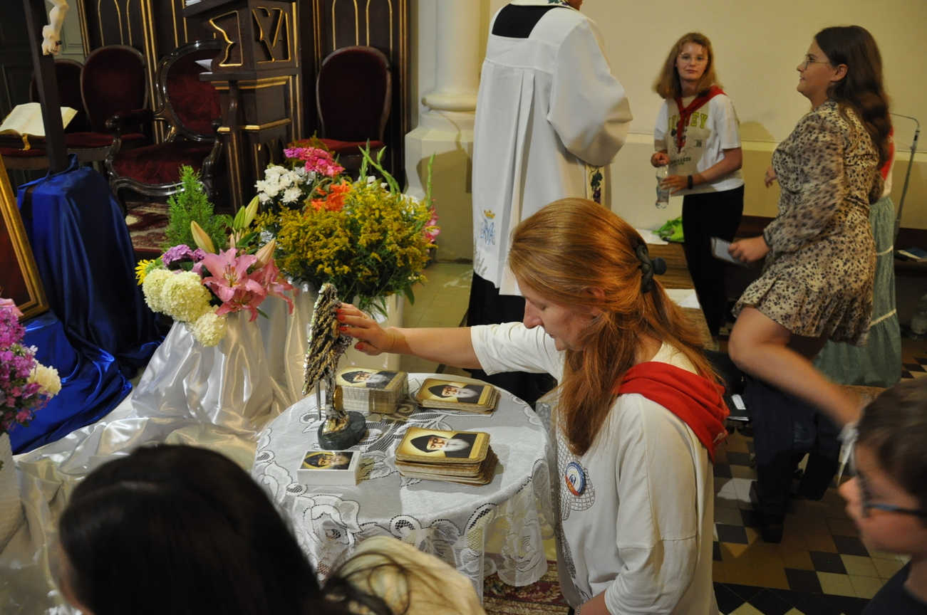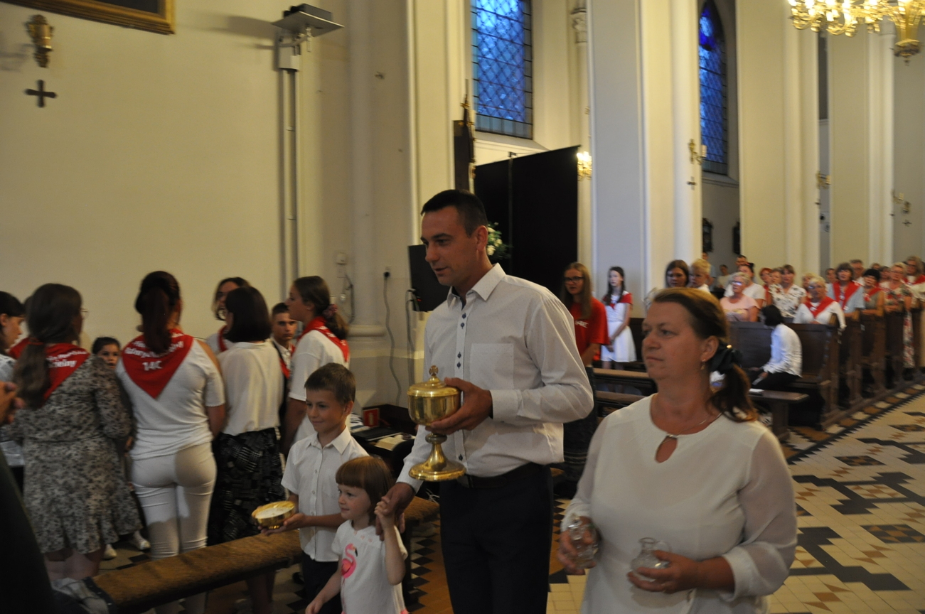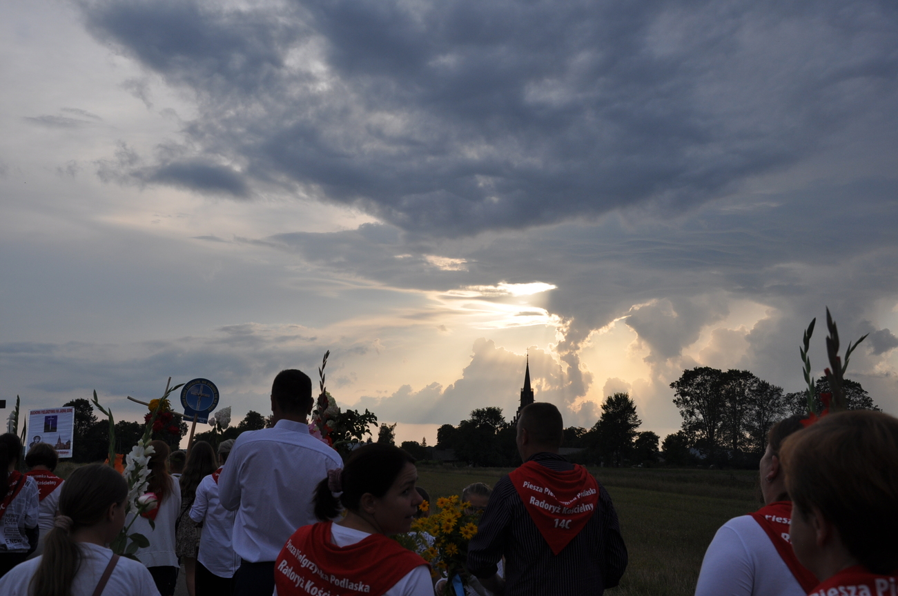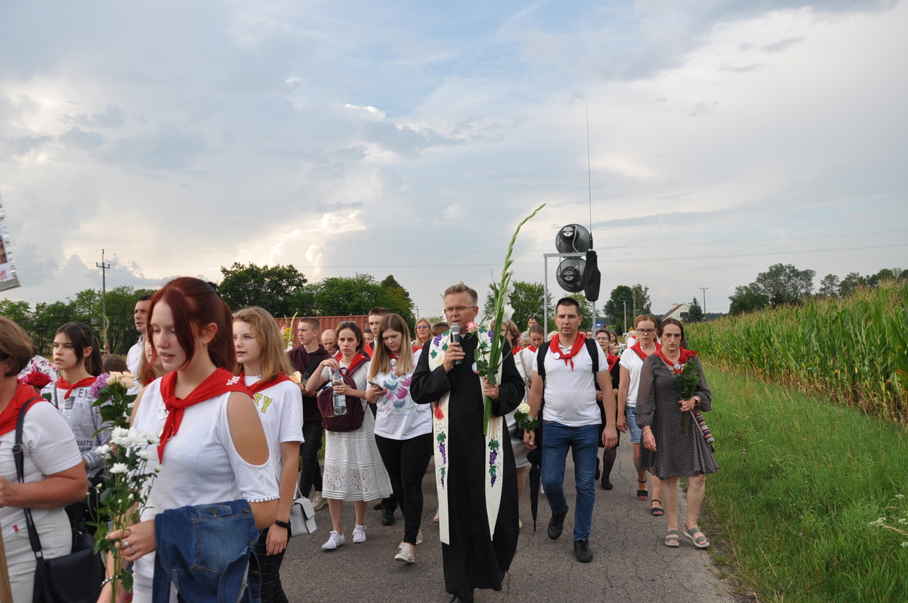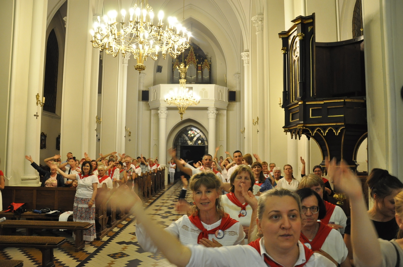 Ostatni wieczór pielgrzymkowy... Uroczystym dłuuuuugim wejściem rozpoczęliśmy Mszę świętą, po której wspólnie z pielgrzymami pieszymi odmówiliśmy różaniec.