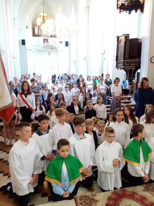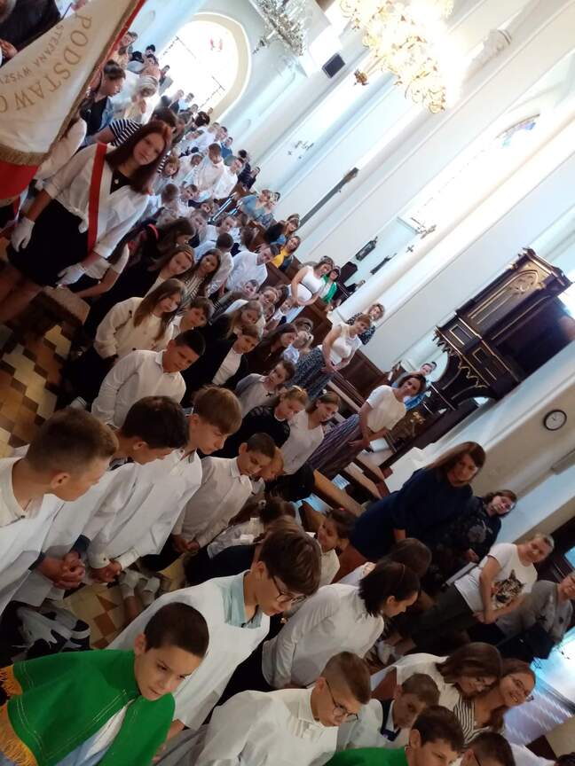 1 września dzieci, młodzież i rodzice oraz nauczyciele wspólnie razem zebrali się na Mszy św. o godz. 8.00, aby prosić dobrego Boga o światło i dary Ducha Świętego na nadchodzący rok edukacji.